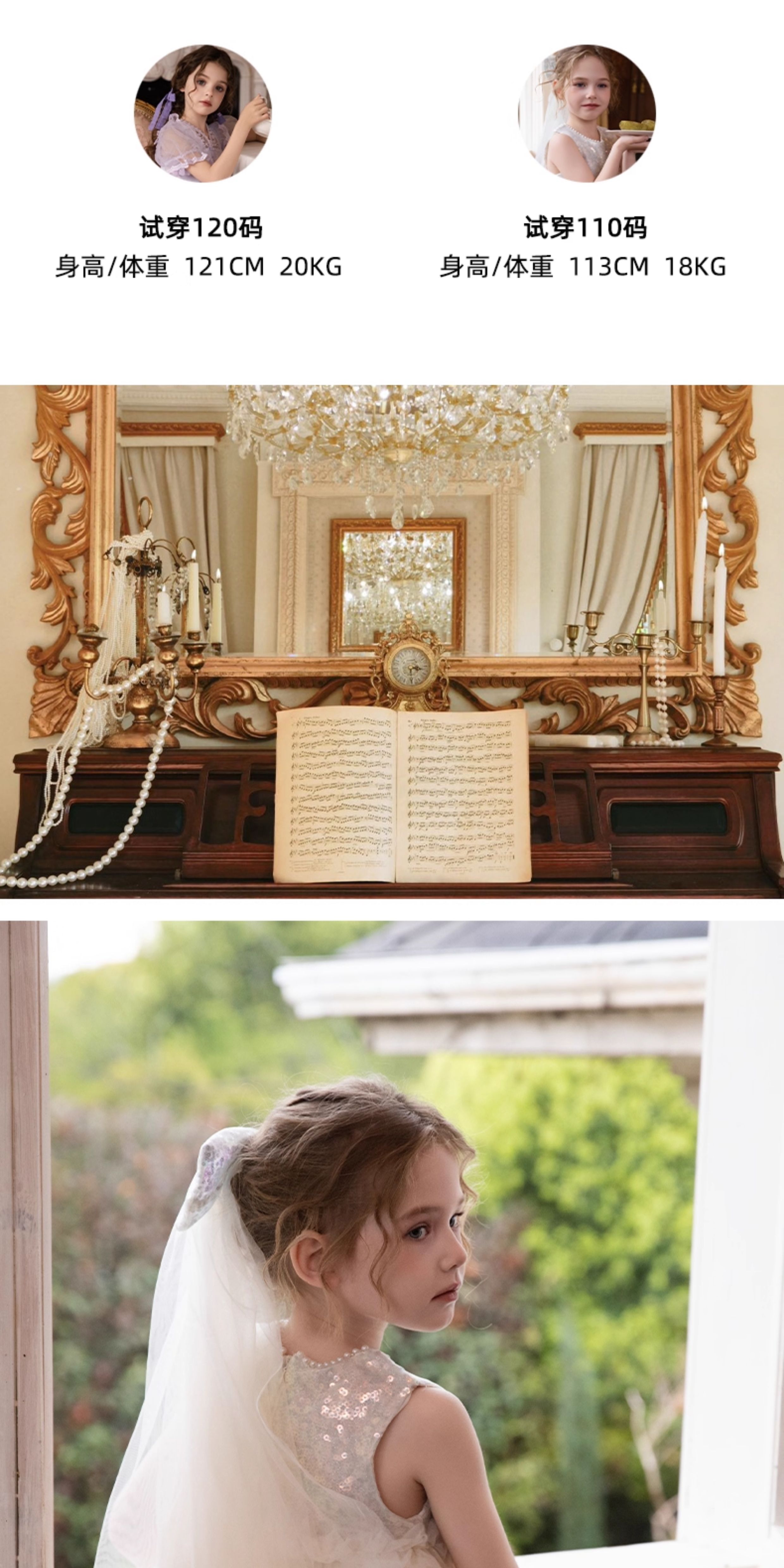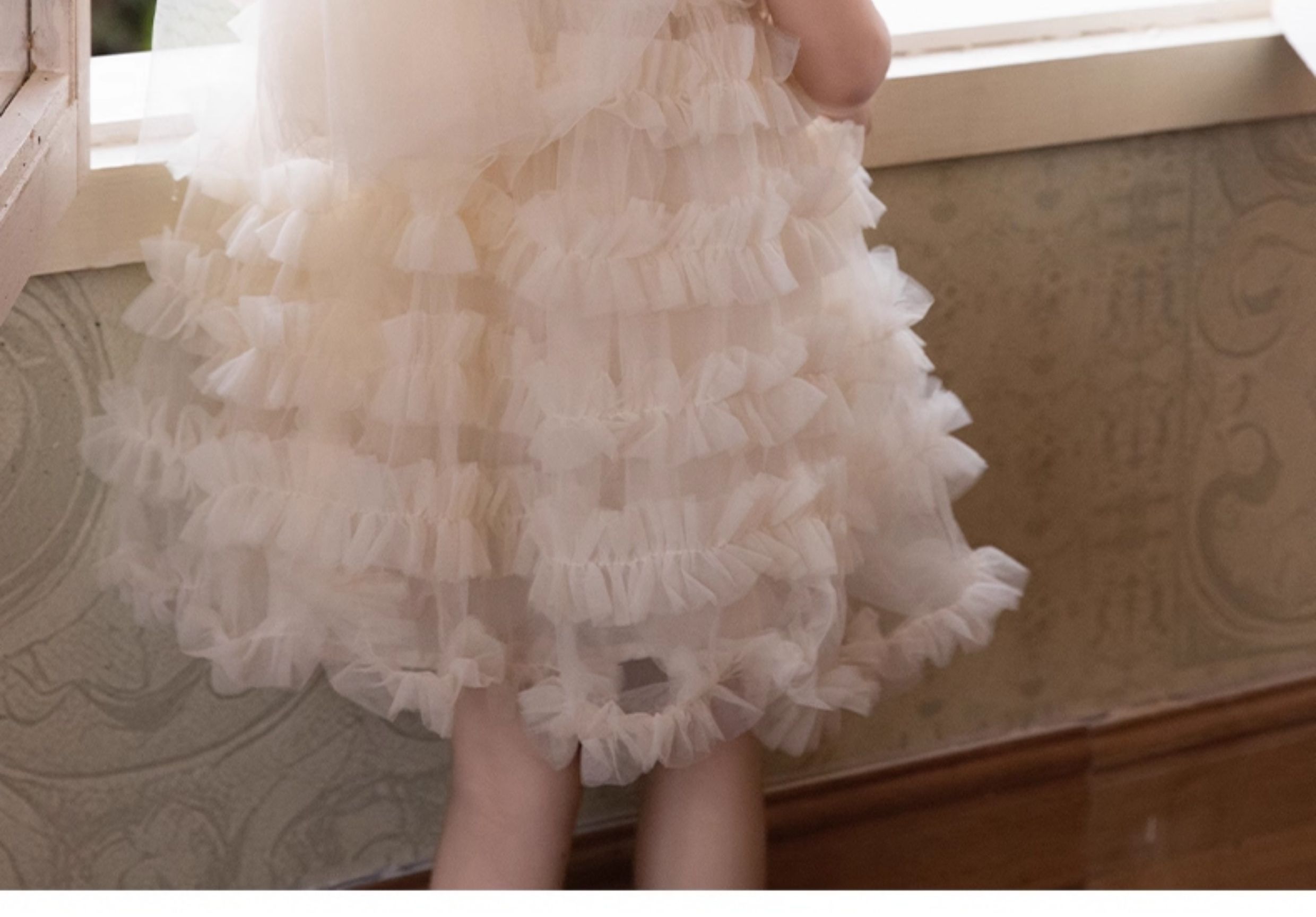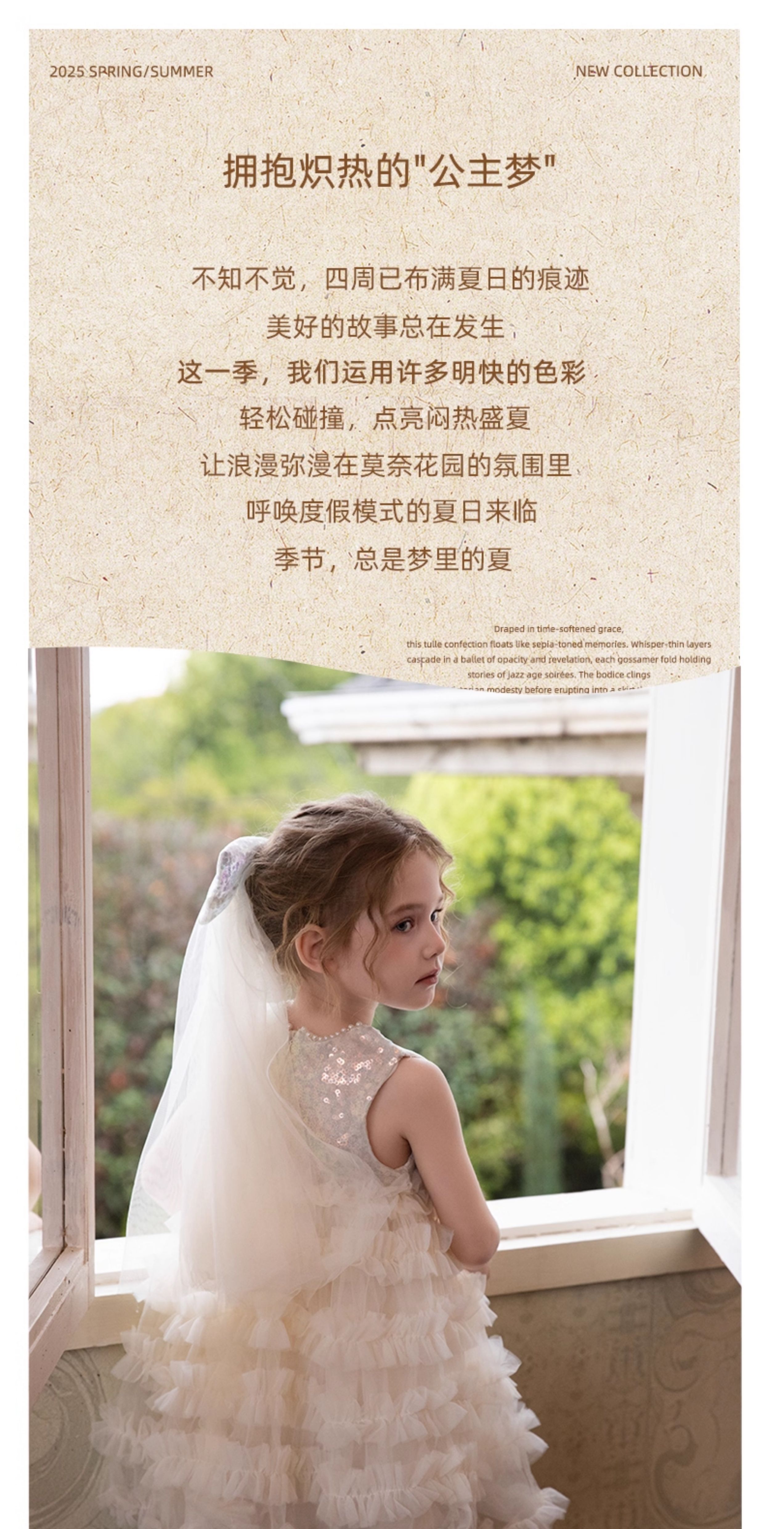 聖寶度倫女童連衣裙夏裝2025新款串珠領亮片蛋糕裙頭紗公主禮服裙