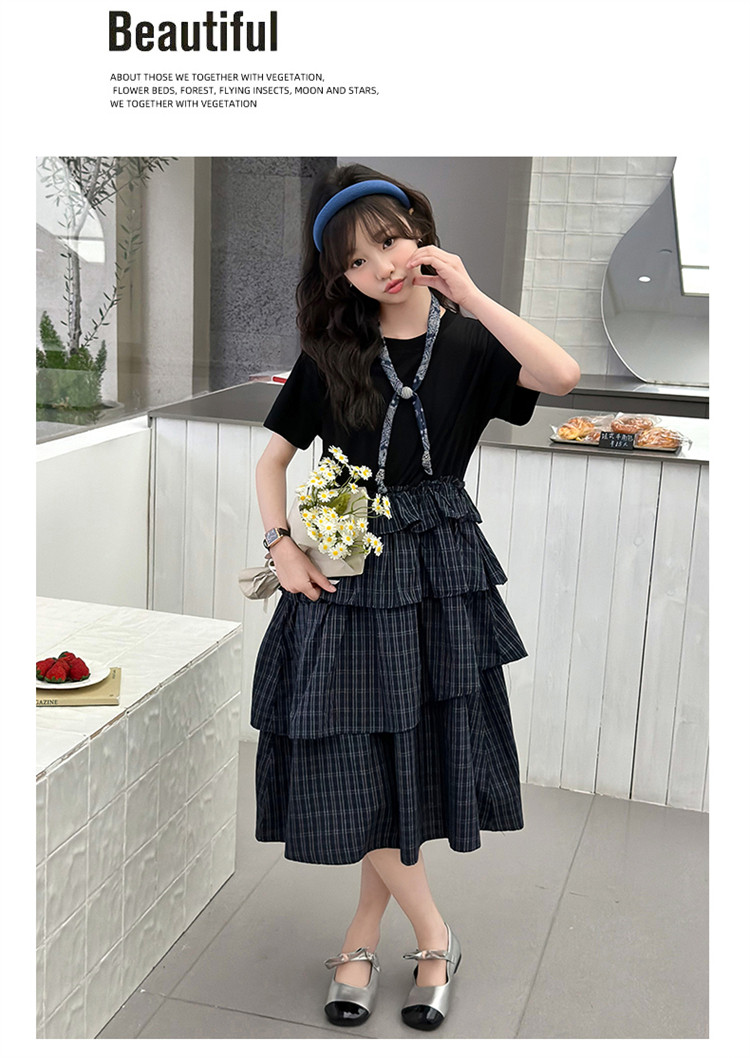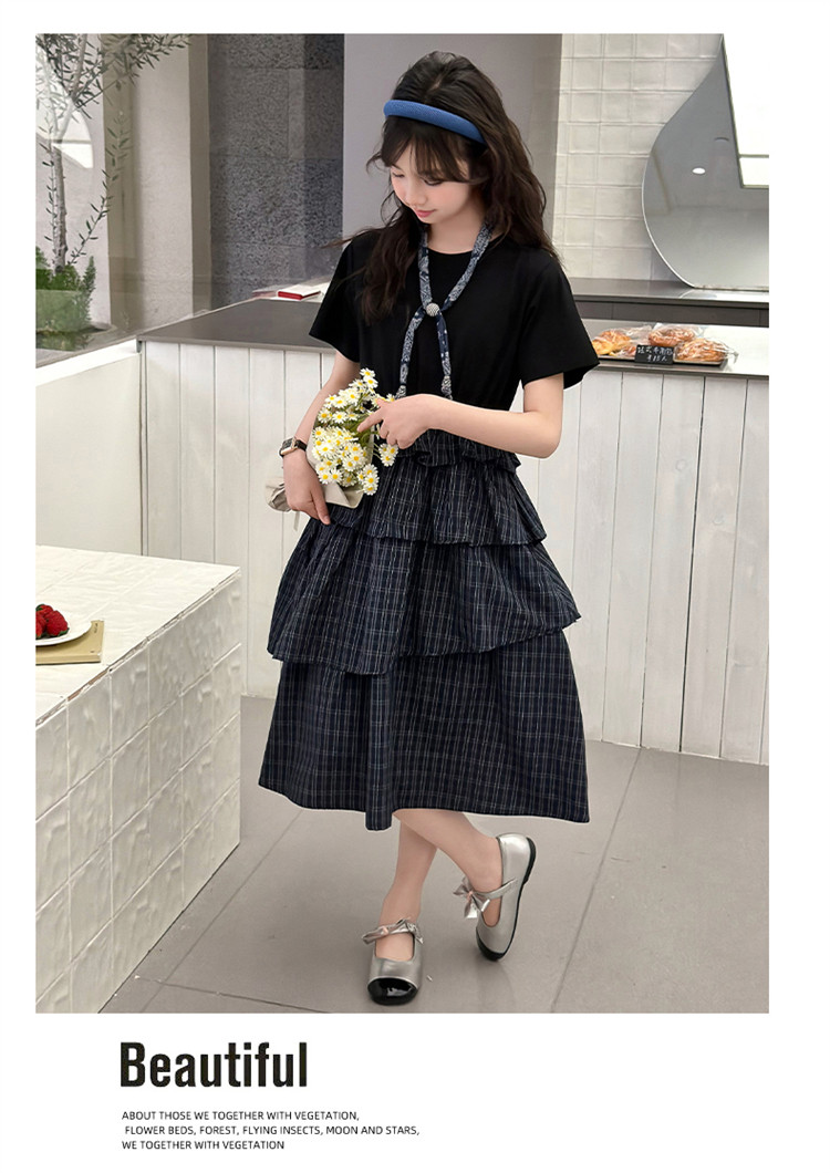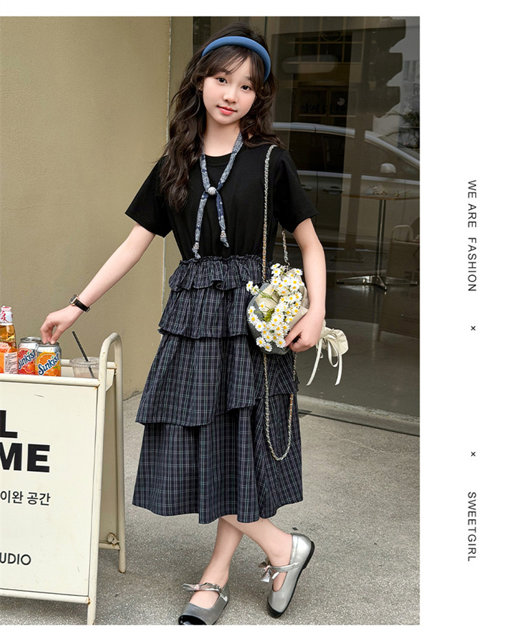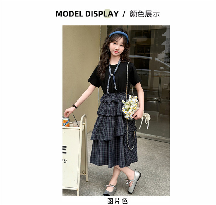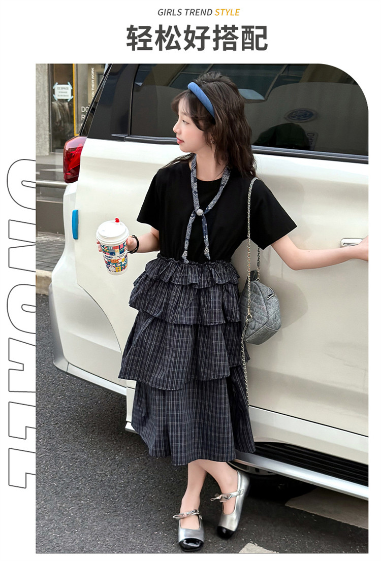 女童黑色連衣裙夏季2026新款女大童長裙兒童蛋糕裙拼接裙子夏裝潮