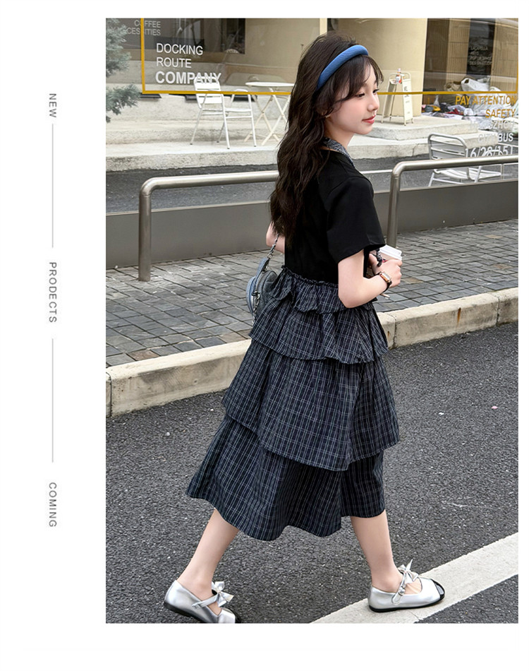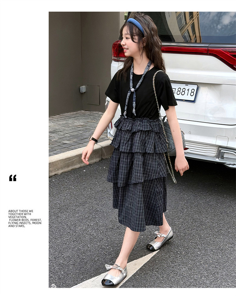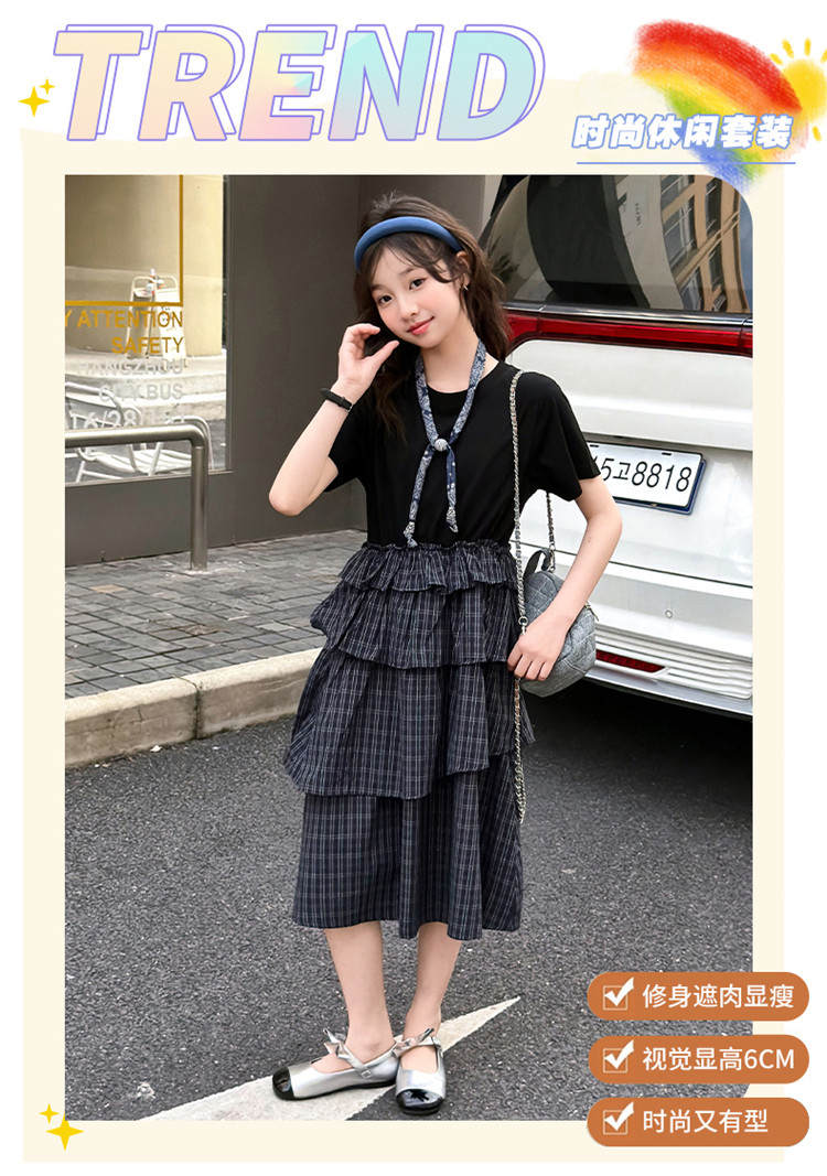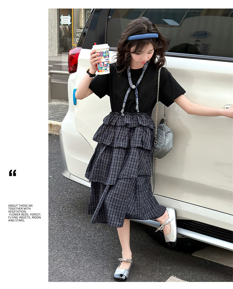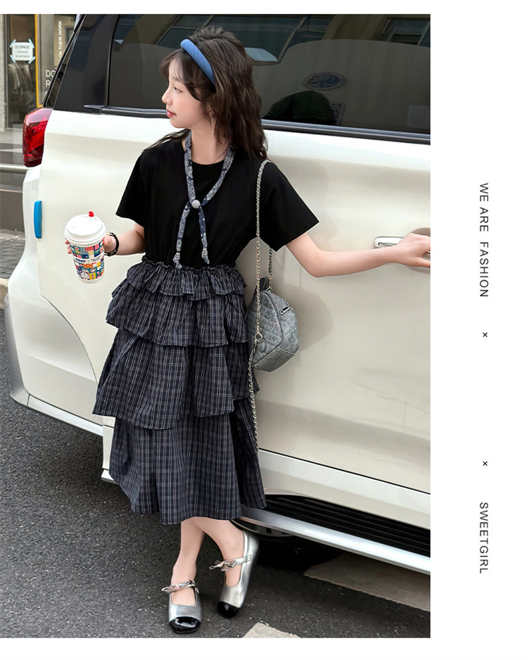 女童黑色連衣裙夏季2026新款女大童長裙兒童蛋糕裙拼接裙子夏裝潮