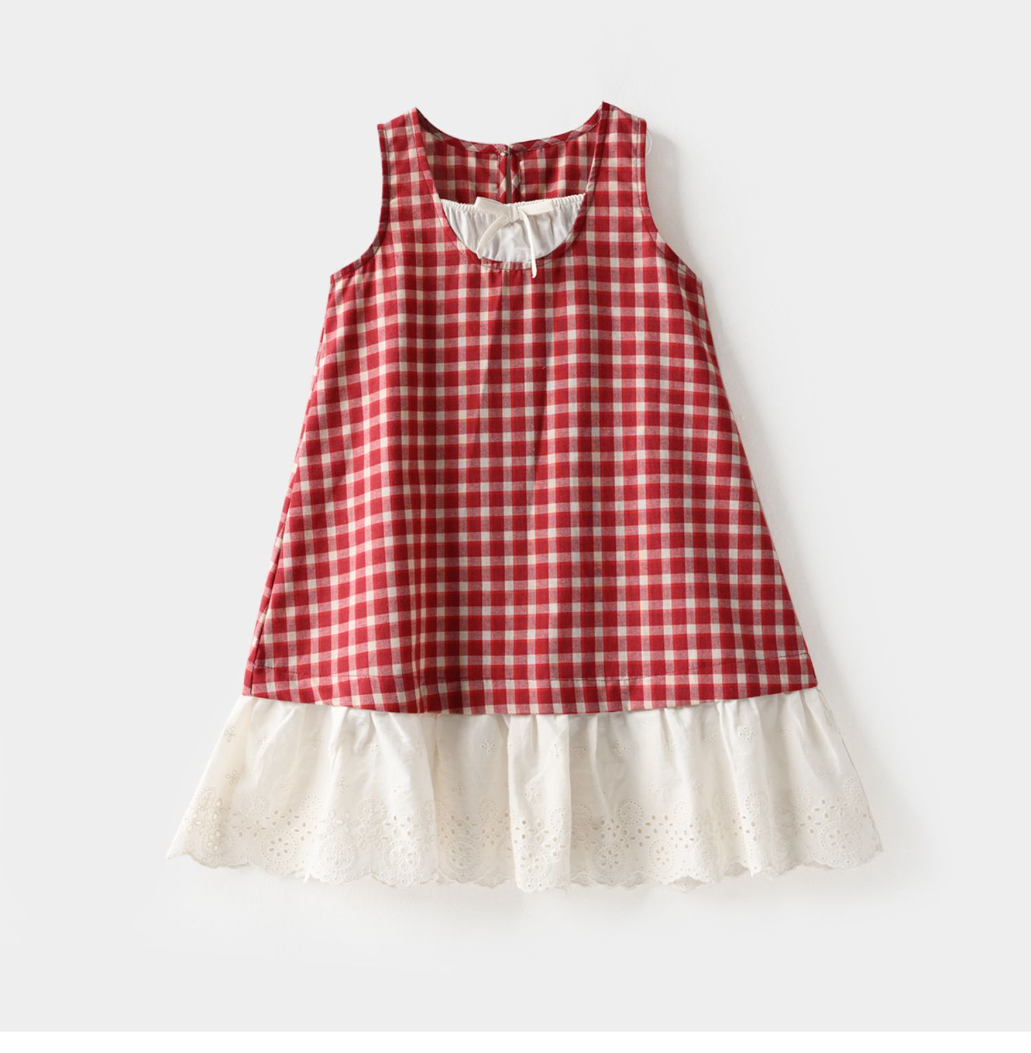 兒童圓領無袖背心裙 女童花邊連衣裙 假兩件 中大童 夏款 童裝