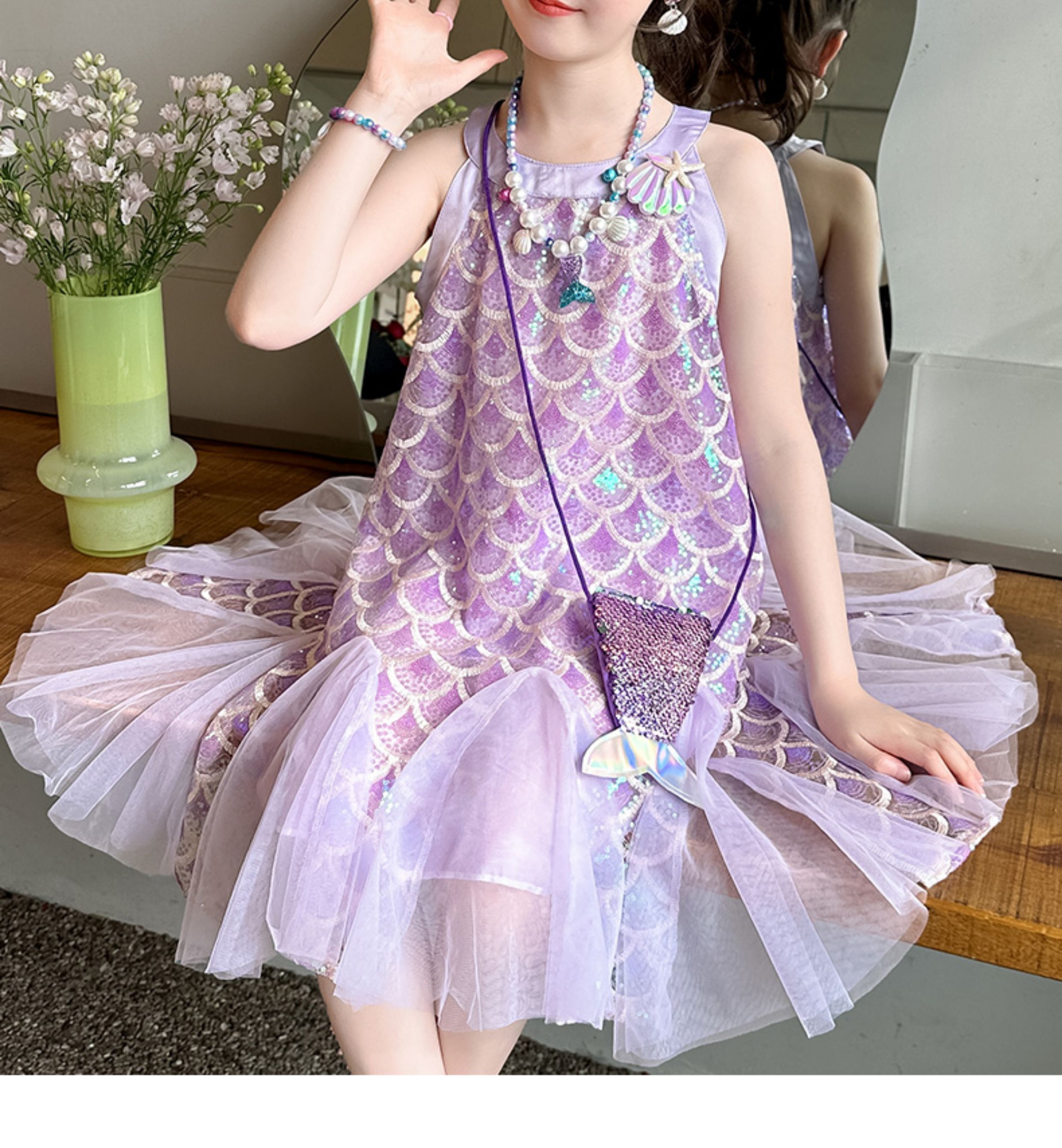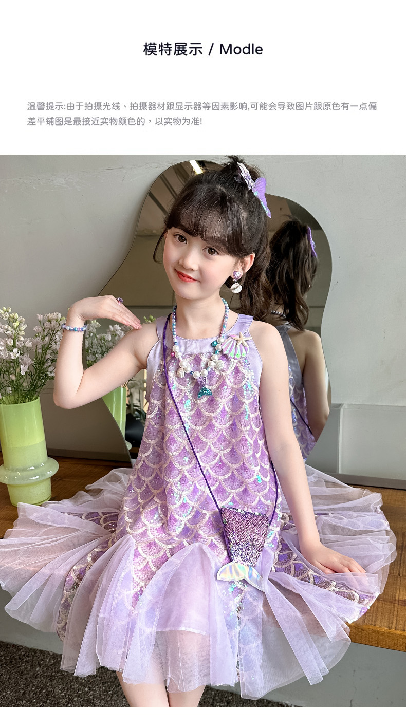 英國Next Svip兒童美人魚公主裙女童夏裝2025新款女大童連衣裙夏