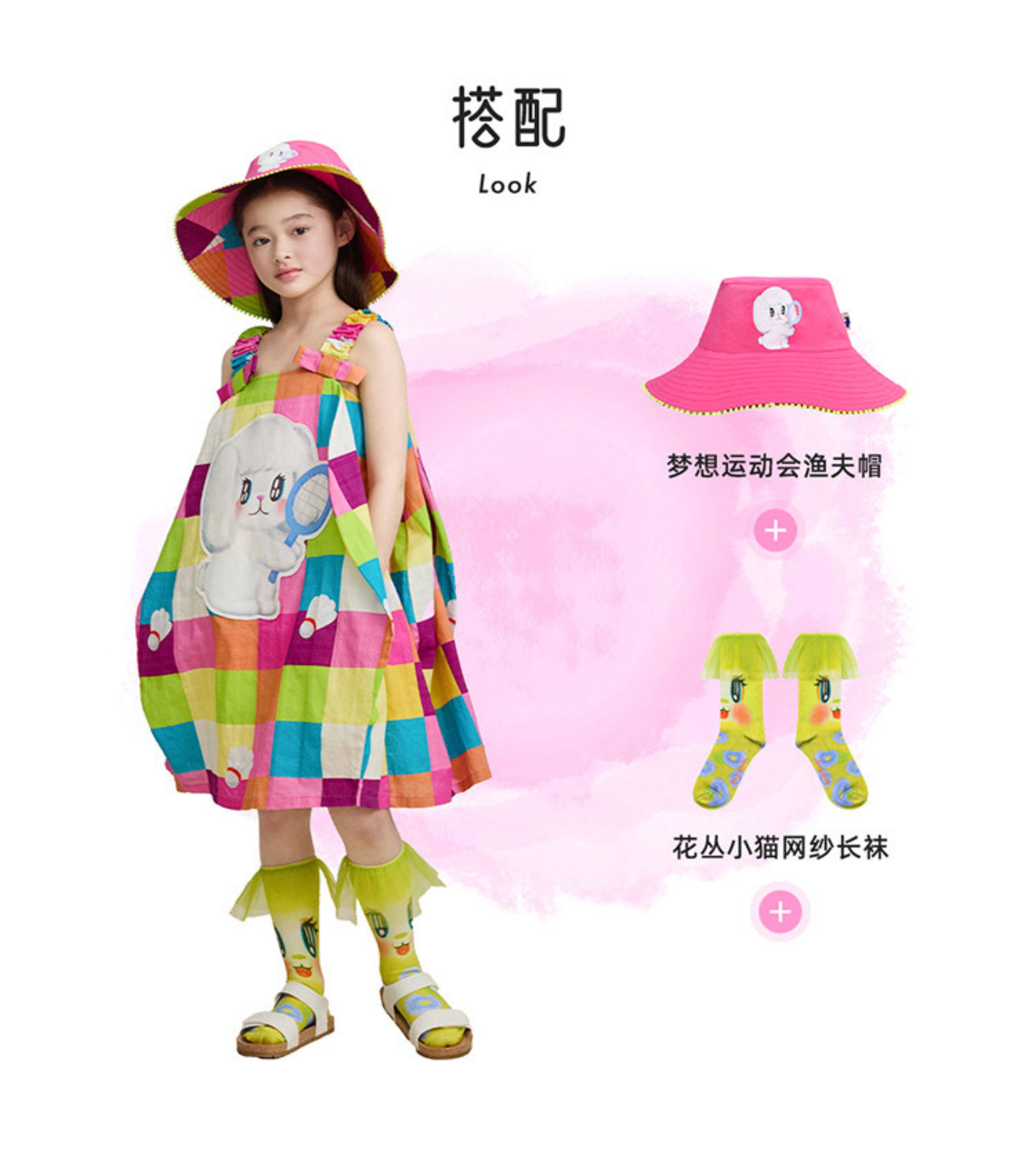 pocoblush原創夢想運動會彩格熱氣球連衣裙絲光棉夏女童吊帶裙子