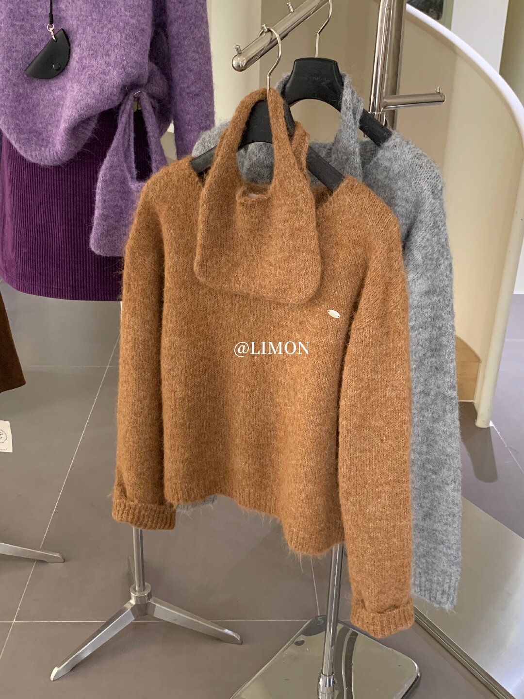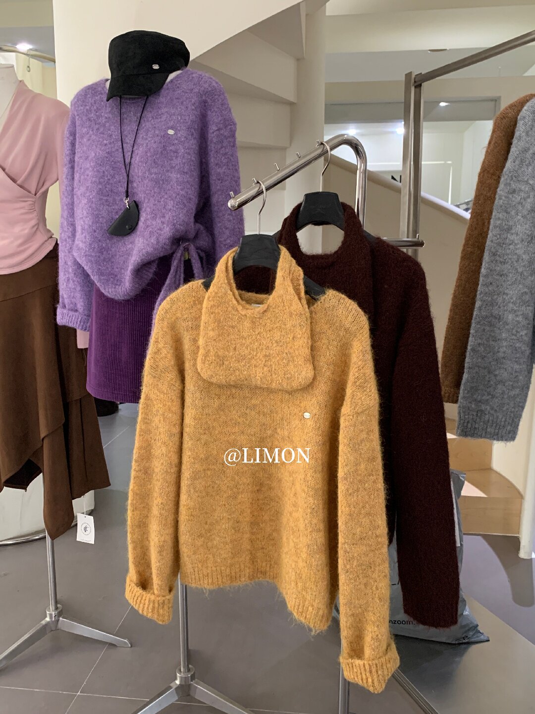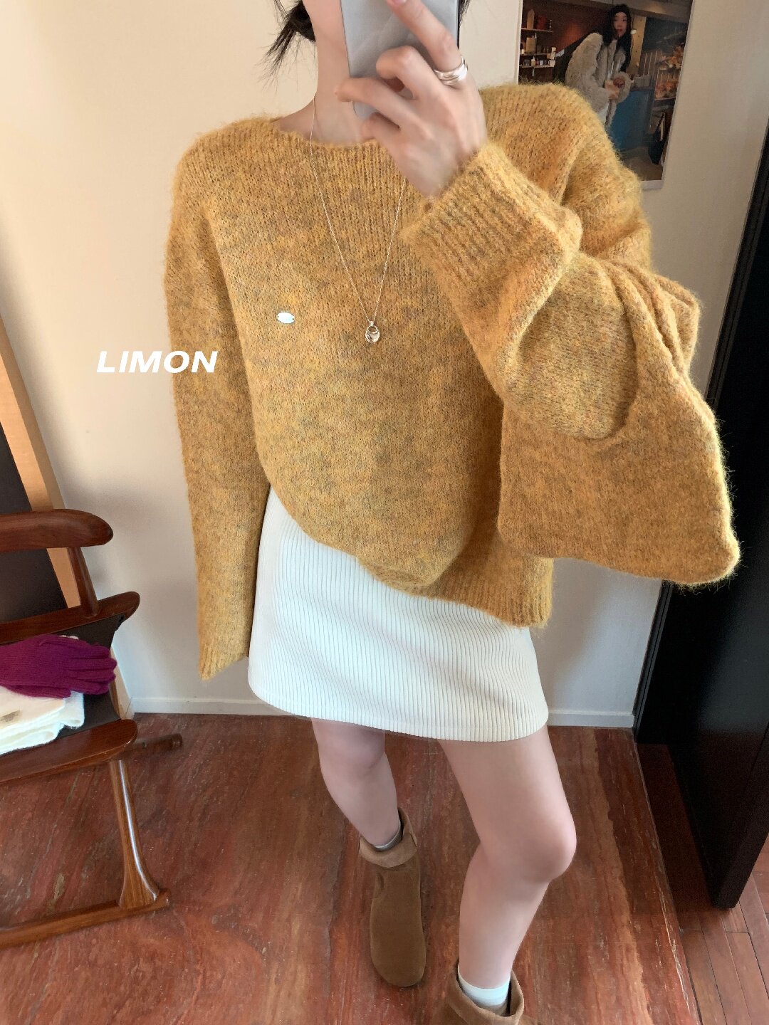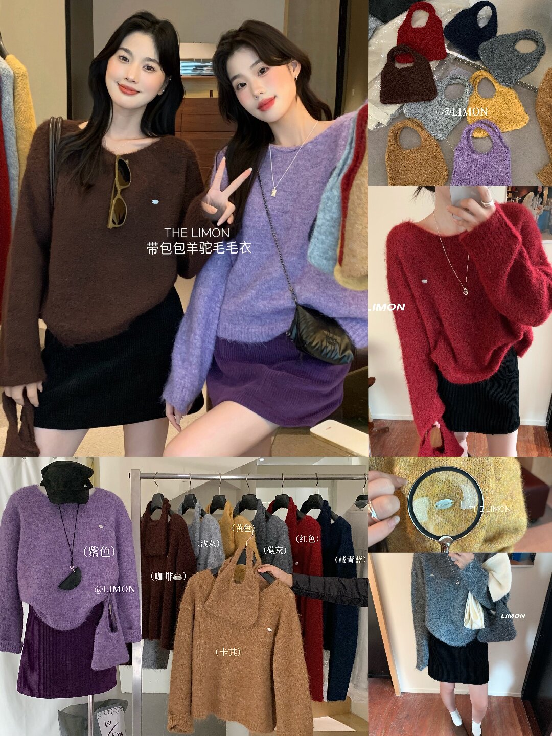 大F小Z溫柔軟糯羊駝毛配包包毛衣女慵懶加厚保暖純色套頭針織上衣