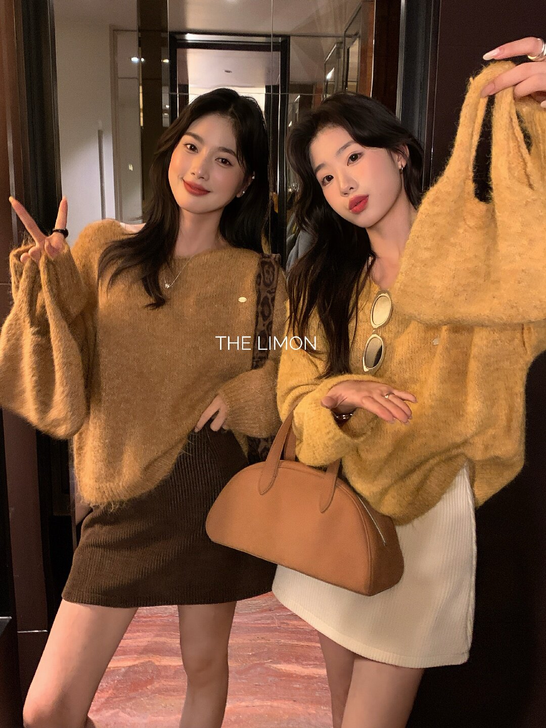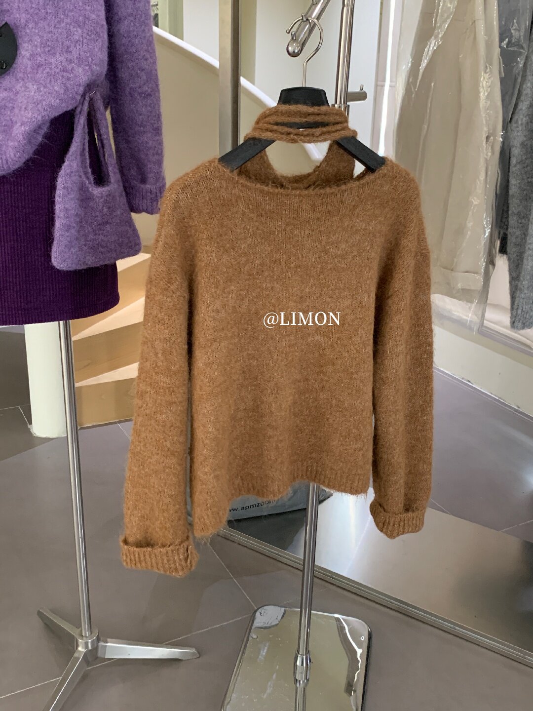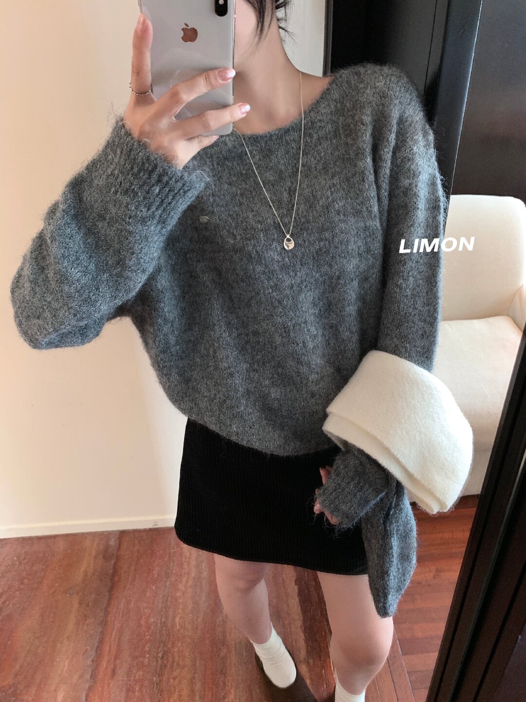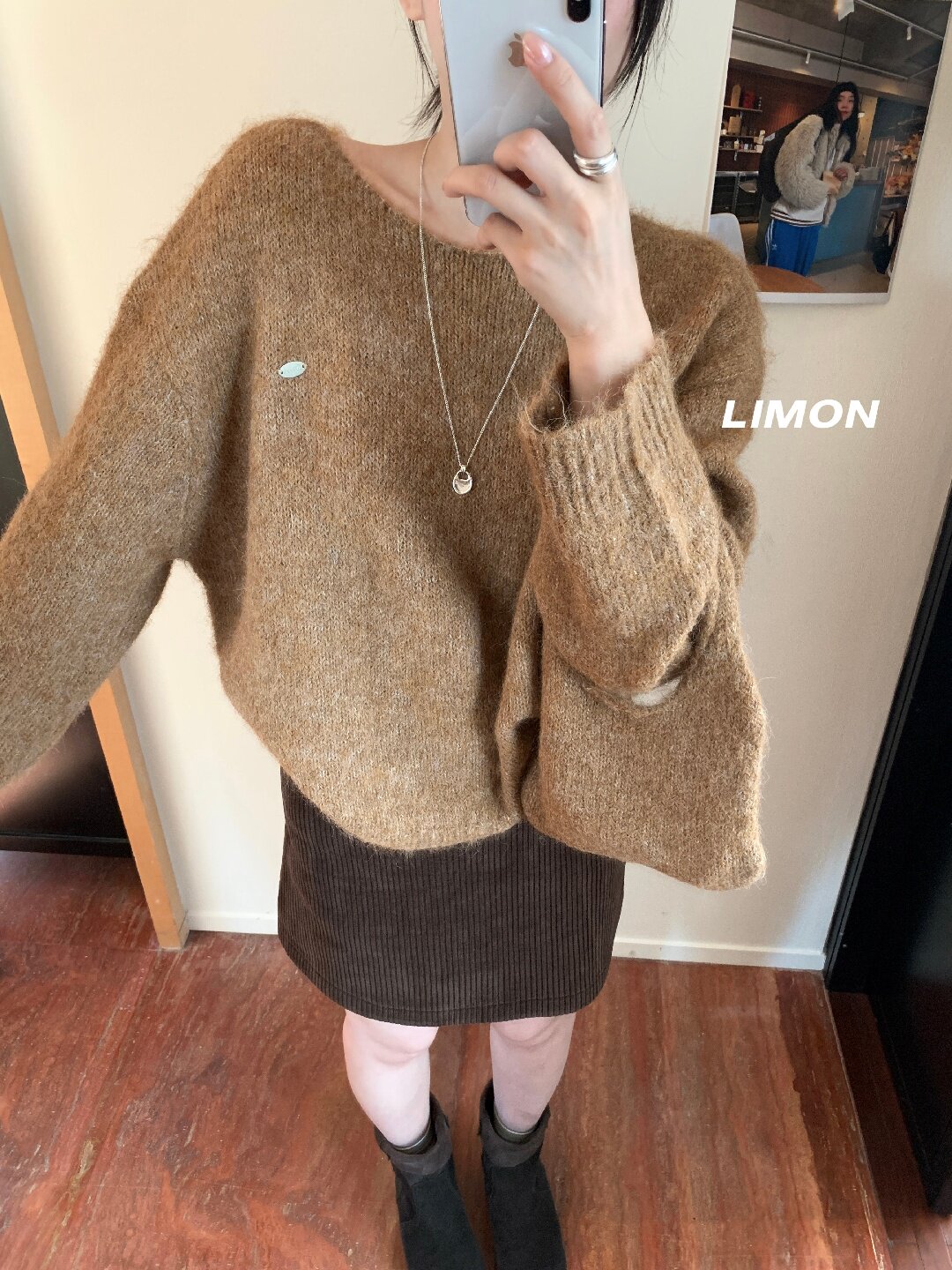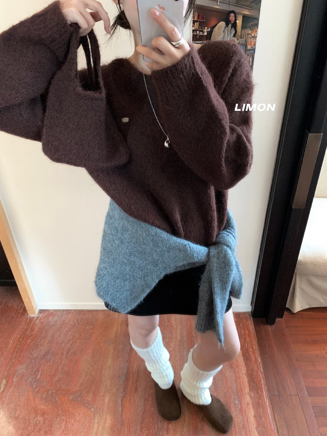 大F小Z溫柔軟糯羊駝毛配包包毛衣女慵懶加厚保暖純色套頭針織上衣