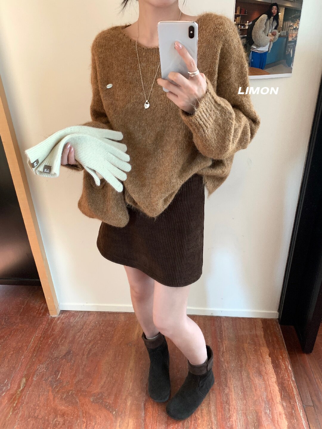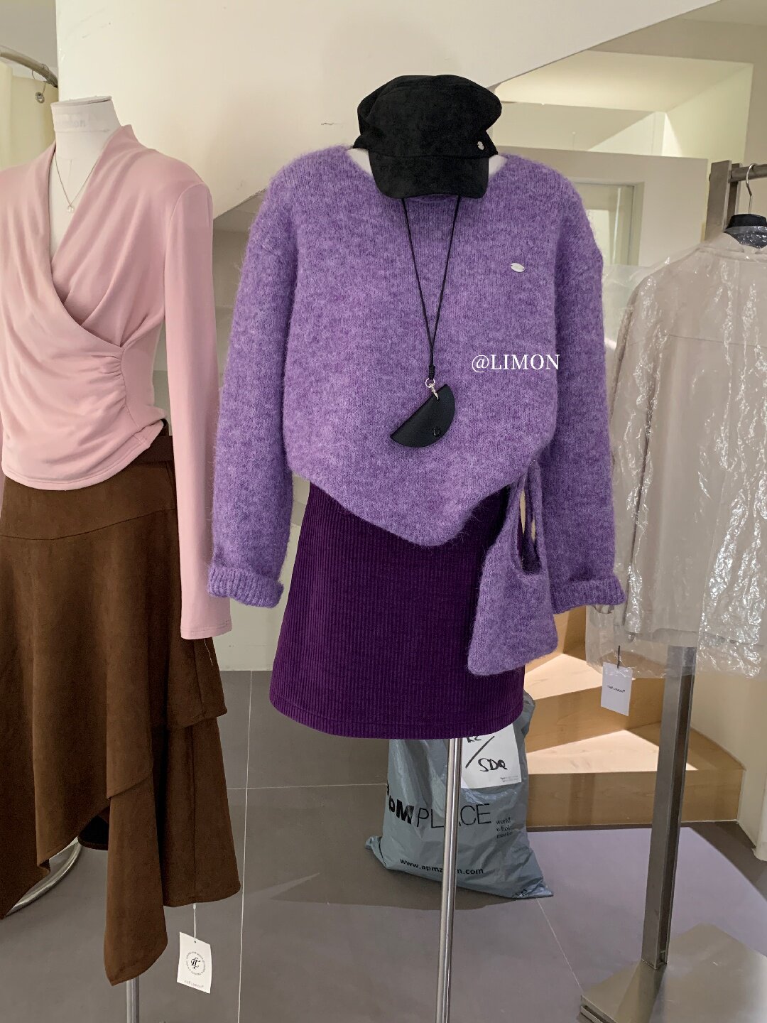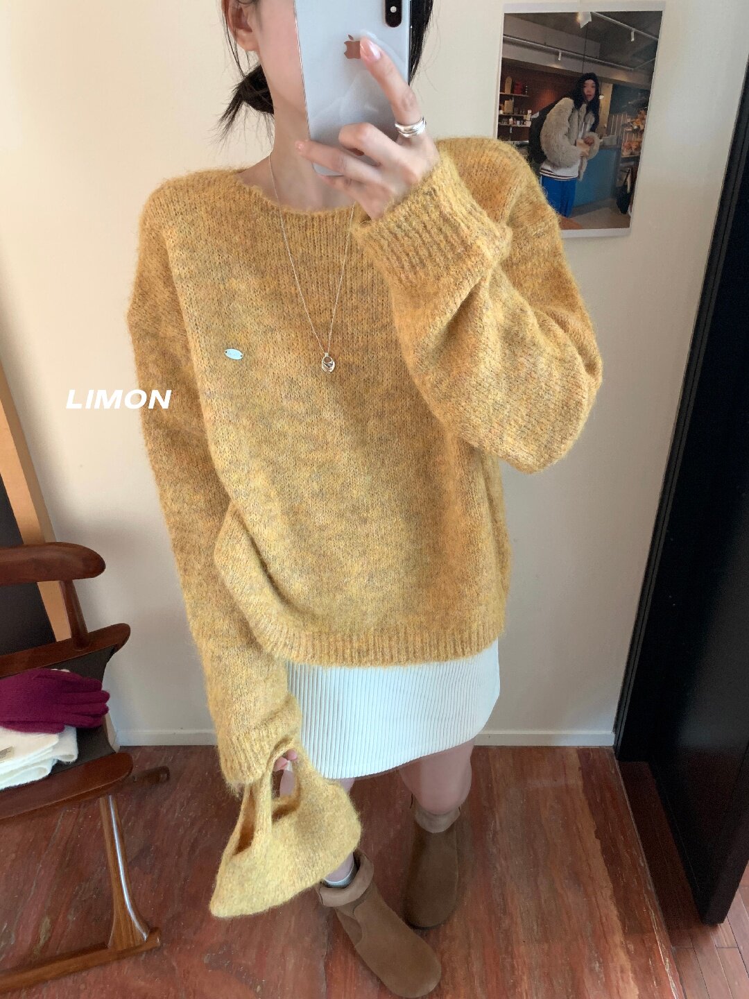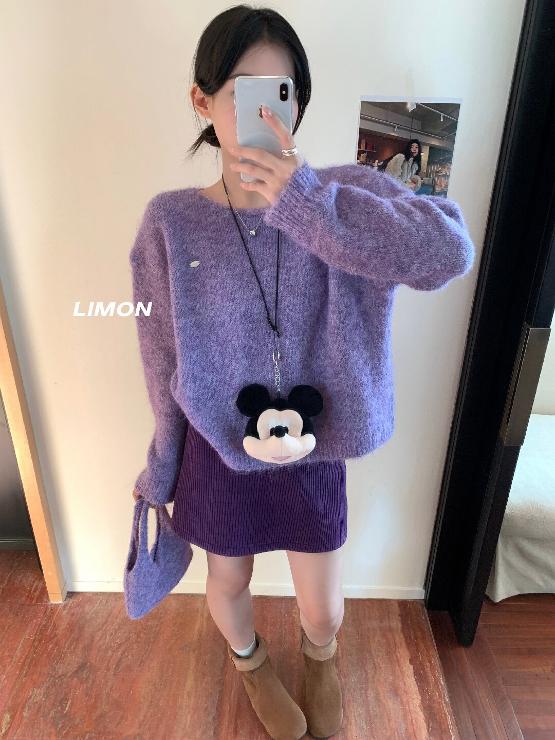 大F小Z溫柔軟糯羊駝毛配包包毛衣女慵懶加厚保暖純色套頭針織上衣