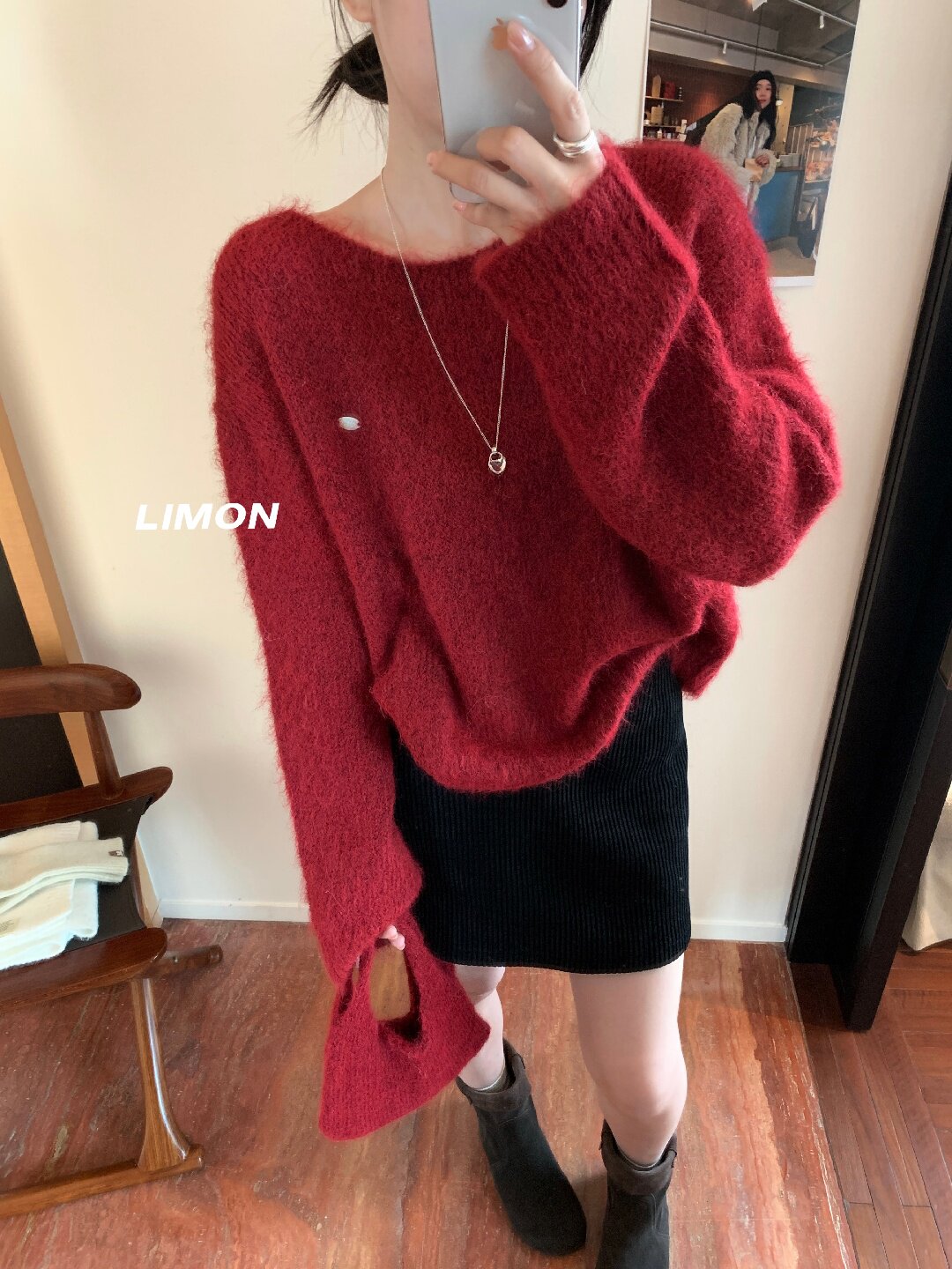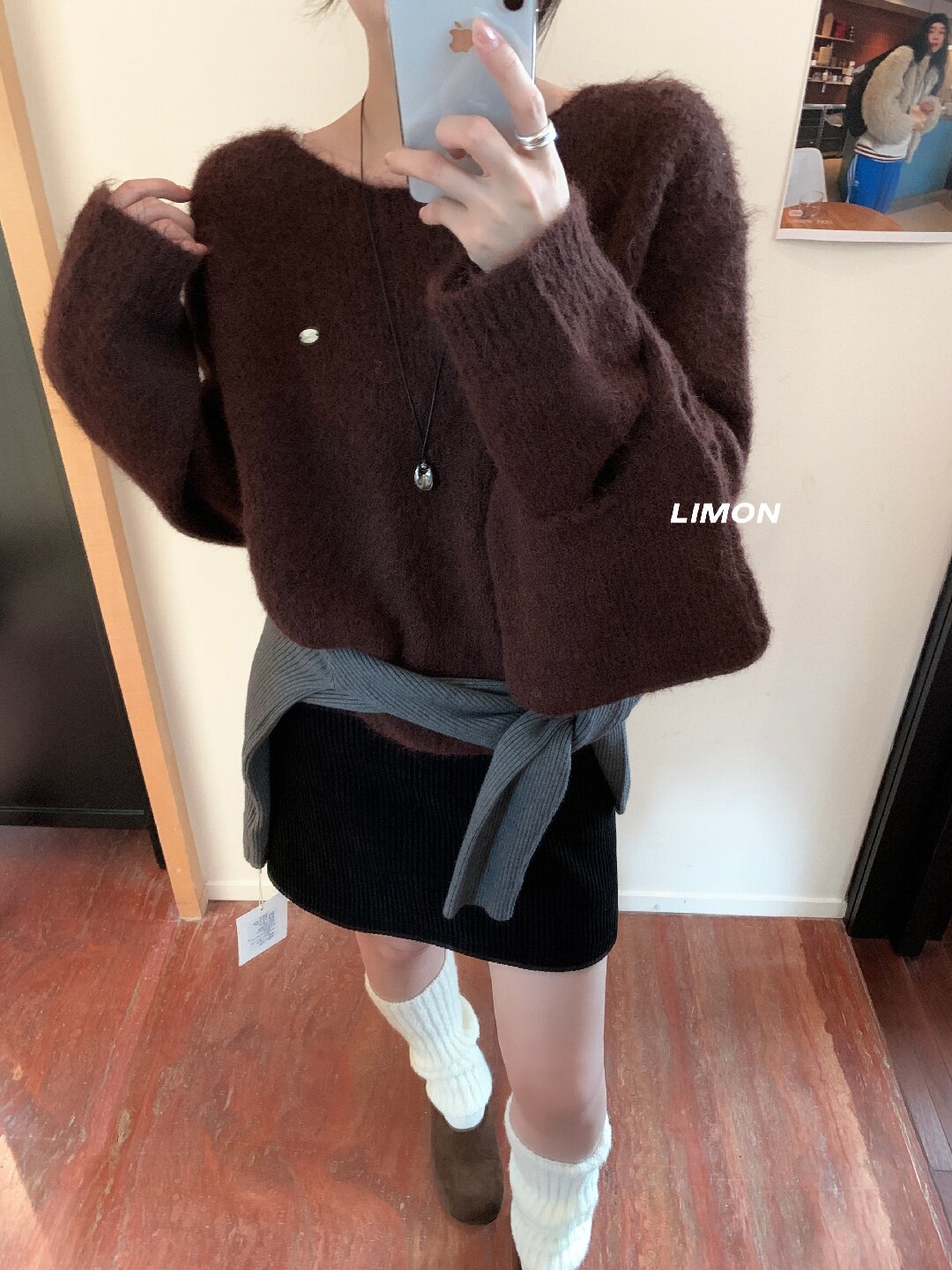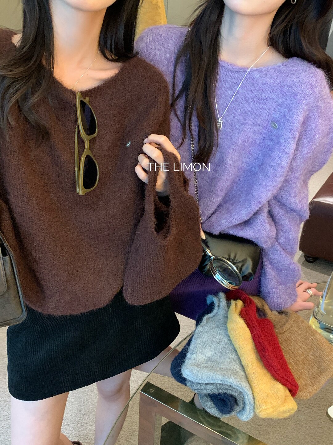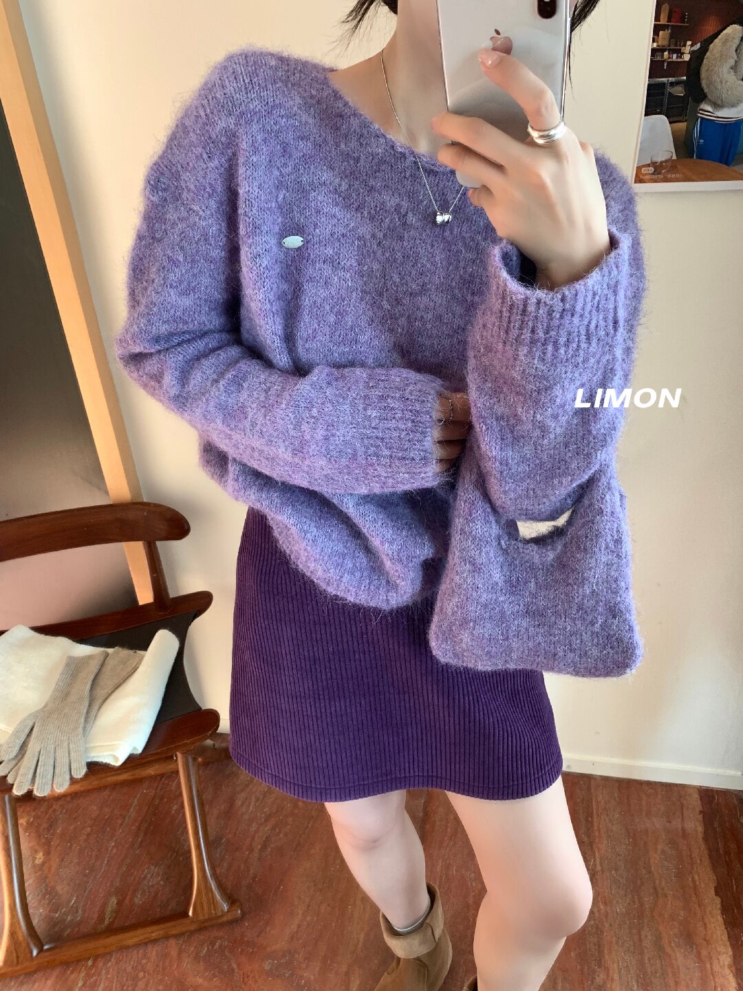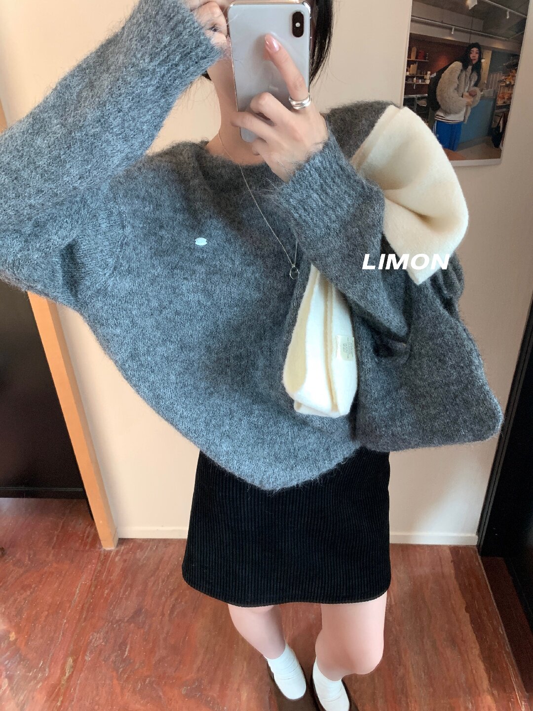 大F小Z溫柔軟糯羊駝毛配包包毛衣女慵懶加厚保暖純色套頭針織上衣