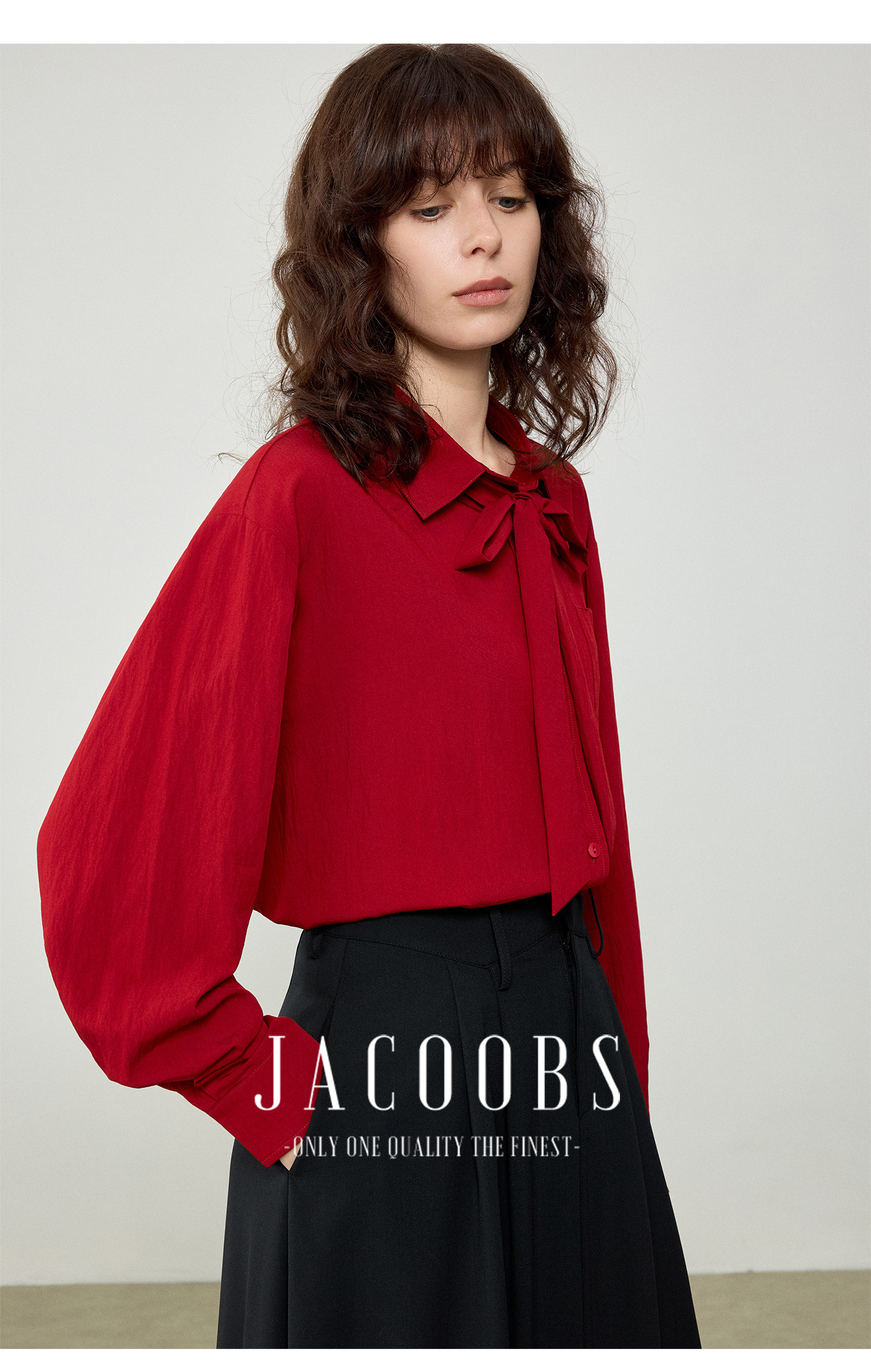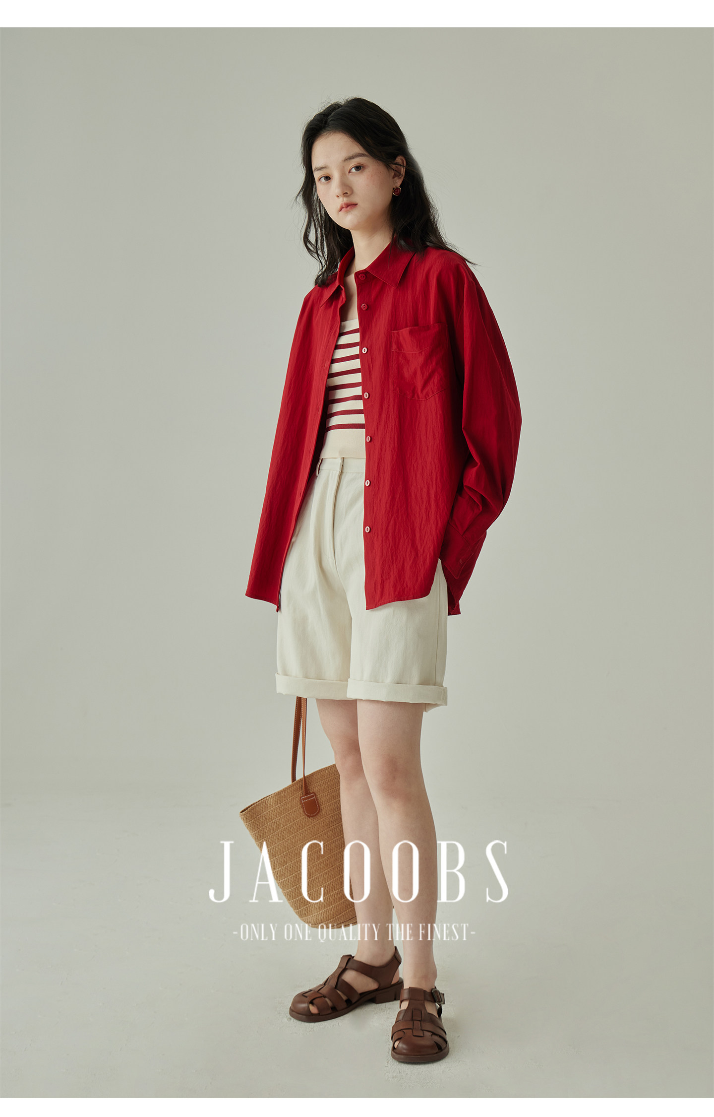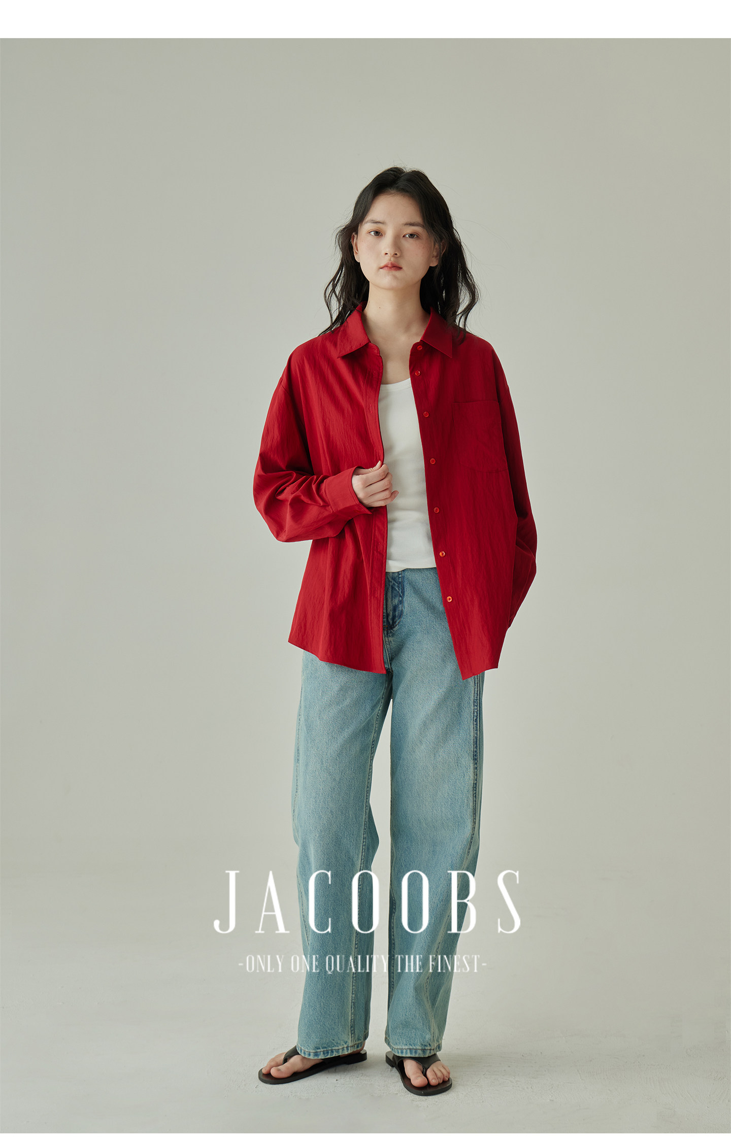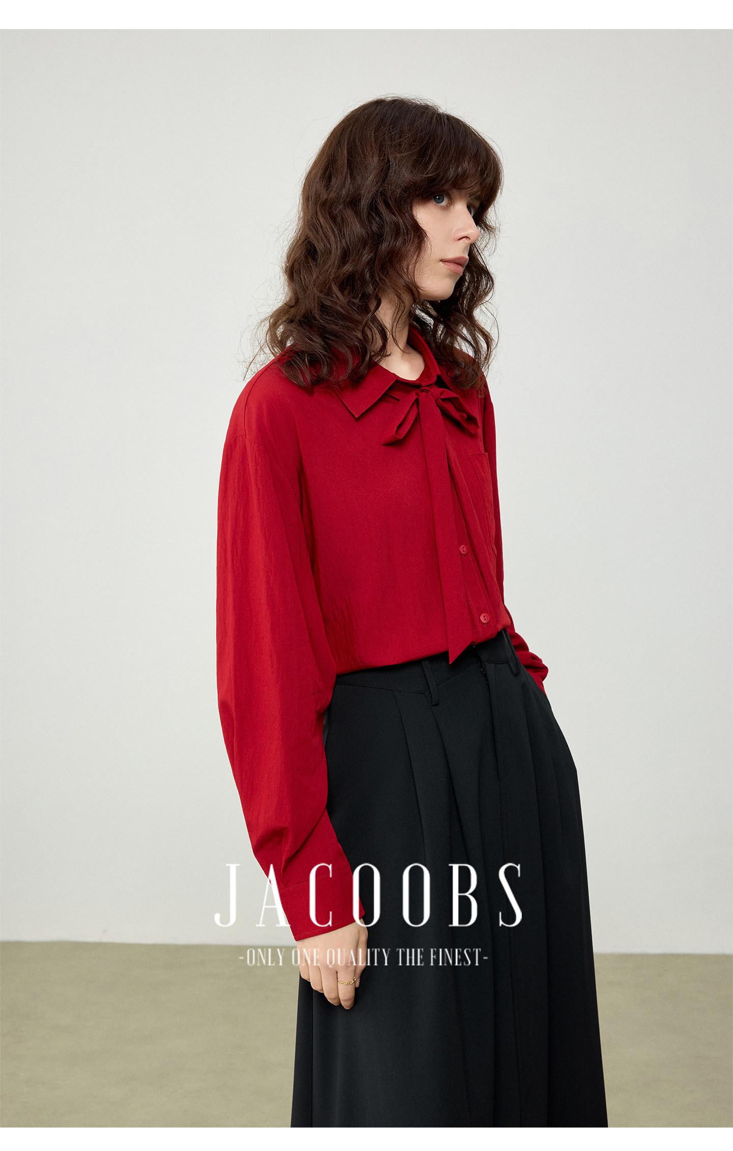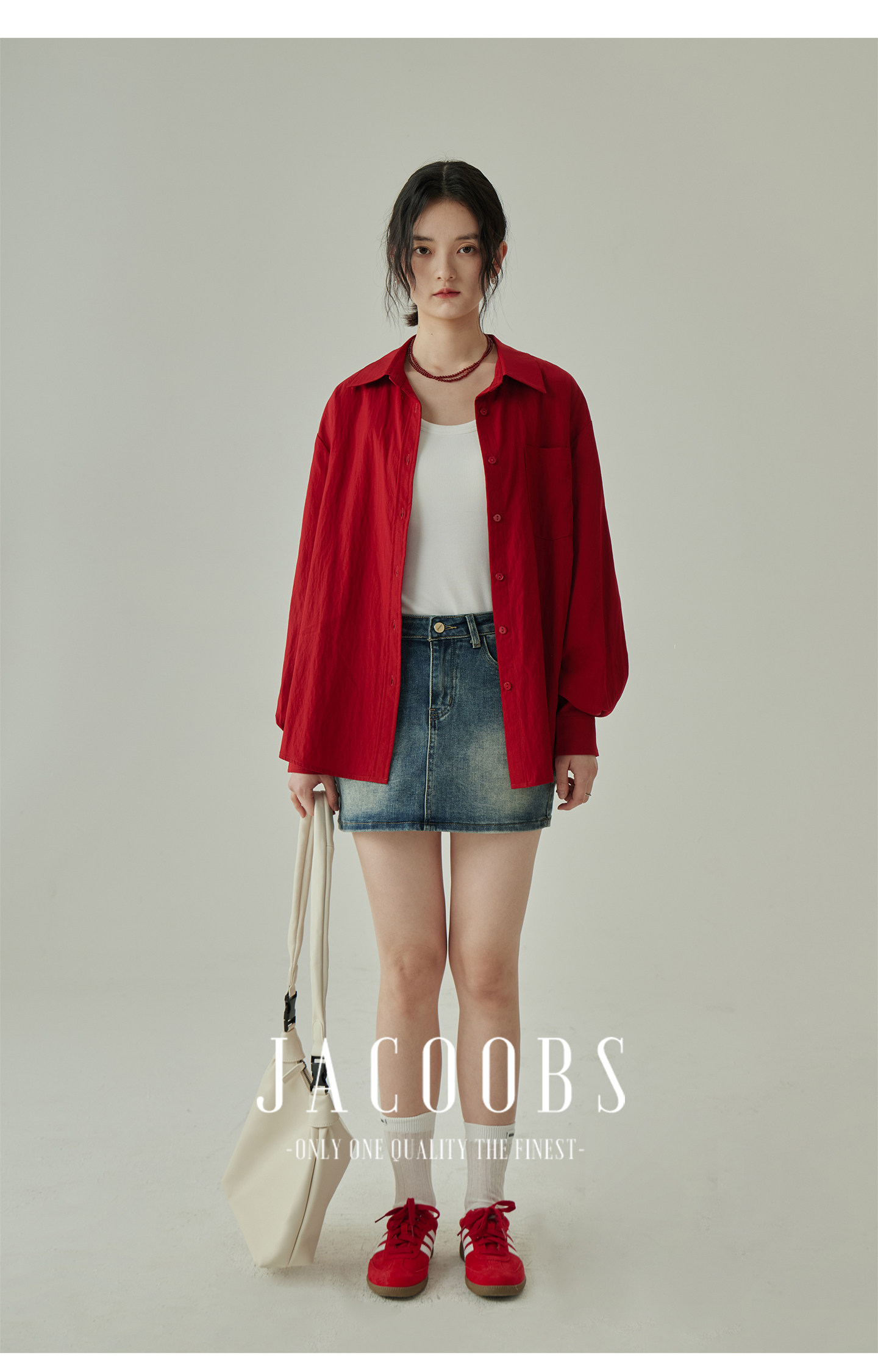 婭可家紅色上衣女設計感小衆春夏新款寬鬆繙領休閒褶皺防曬襯衫女