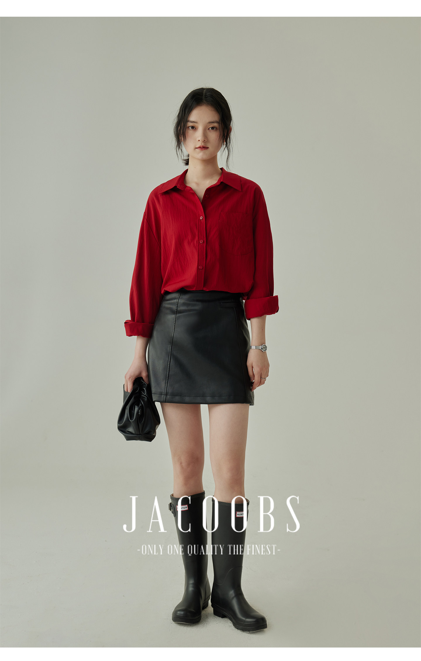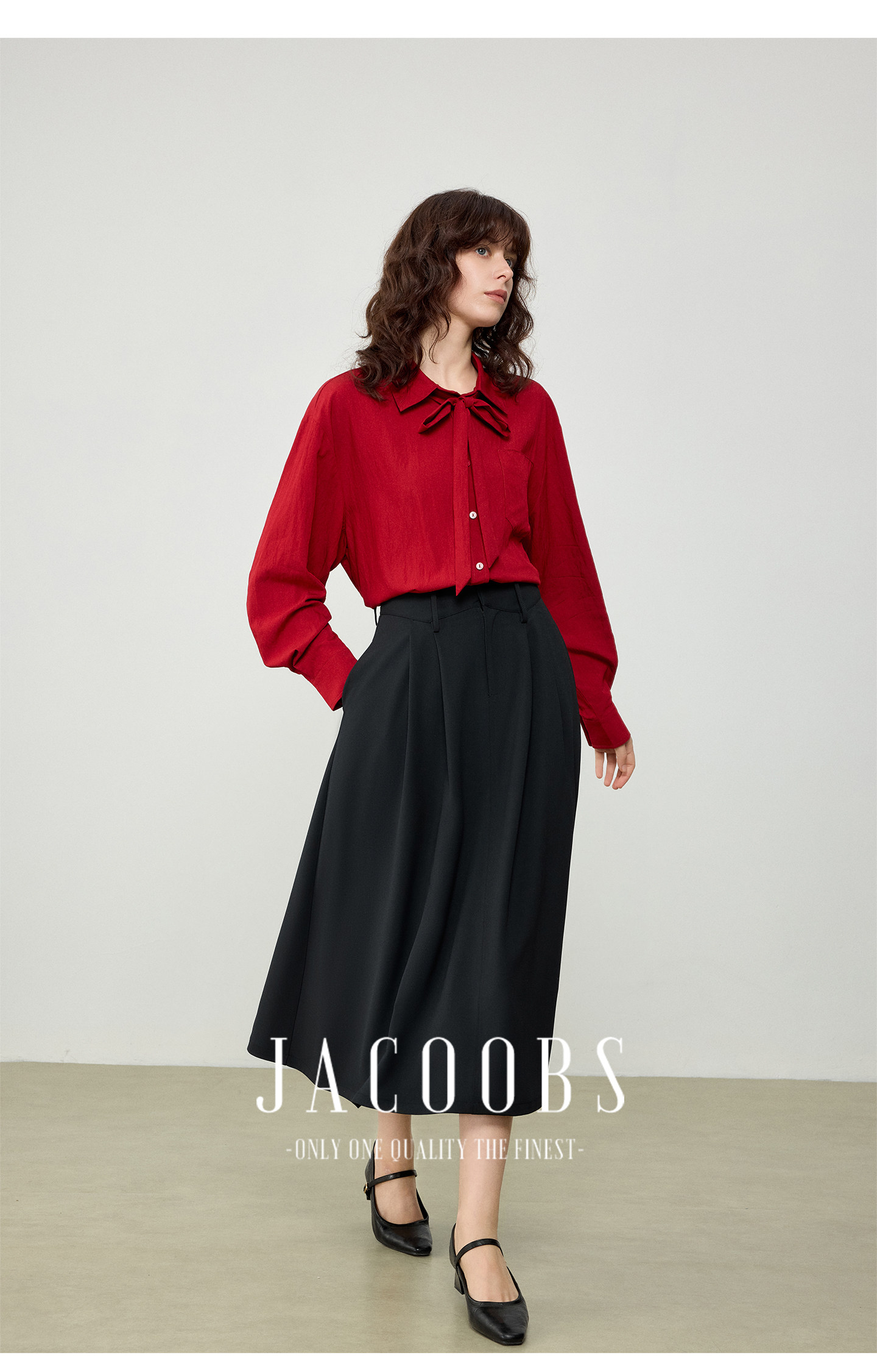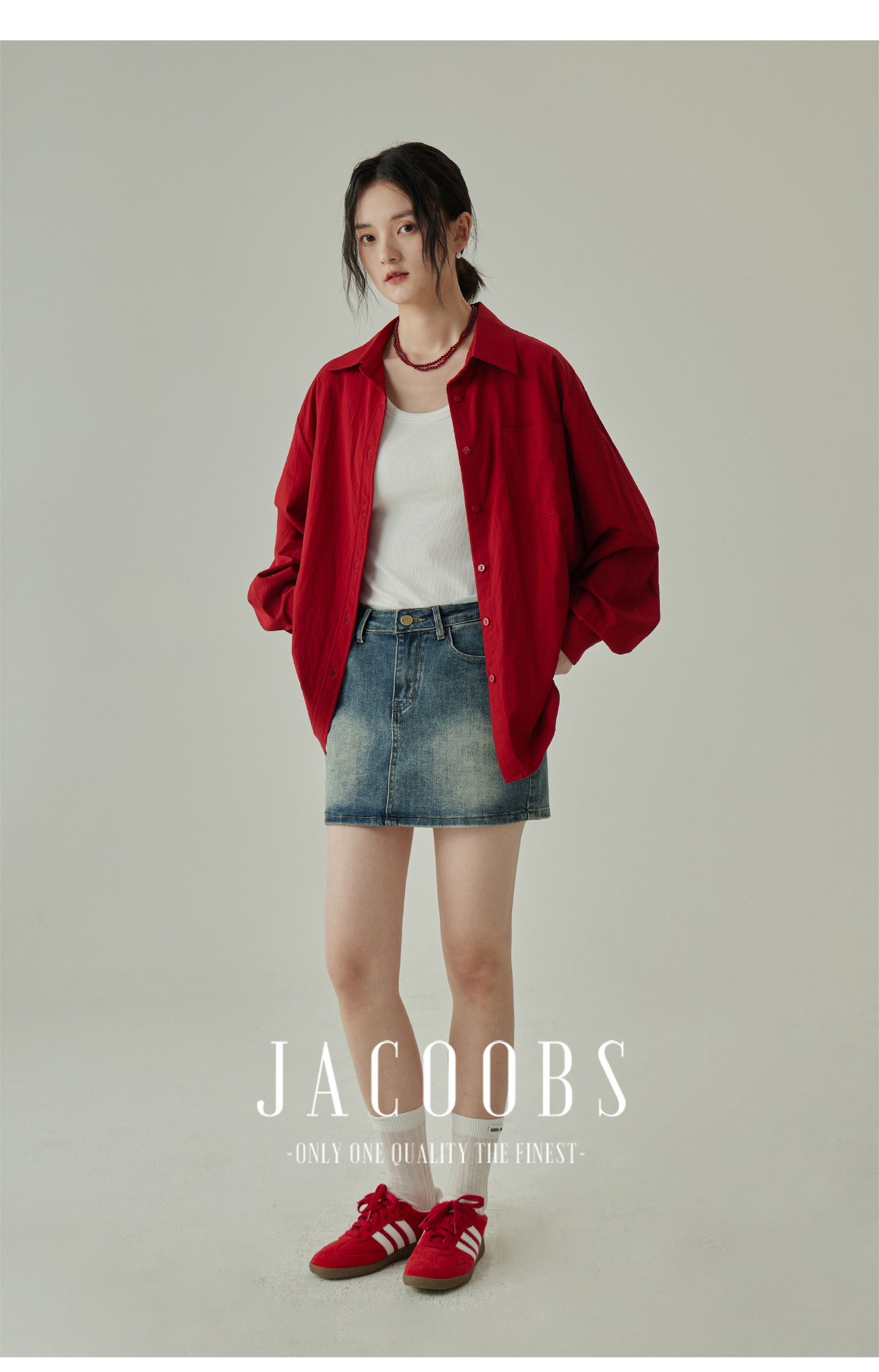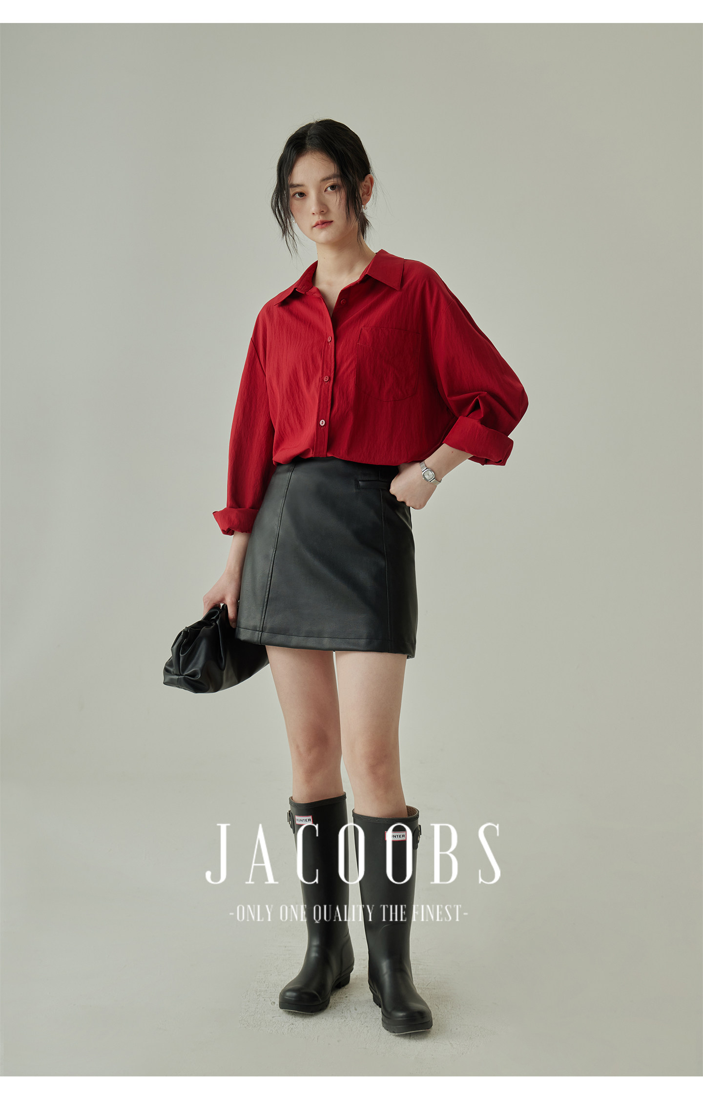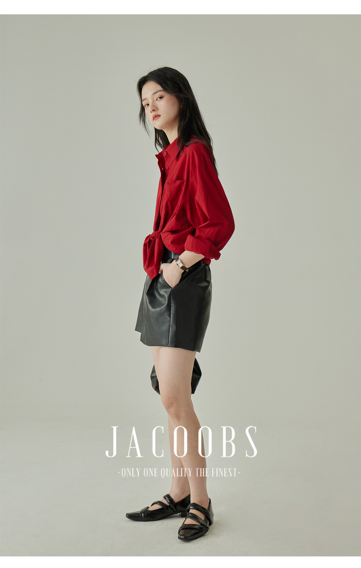 婭可家紅色上衣女設計感小衆春夏新款寬鬆繙領休閒褶皺防曬襯衫女