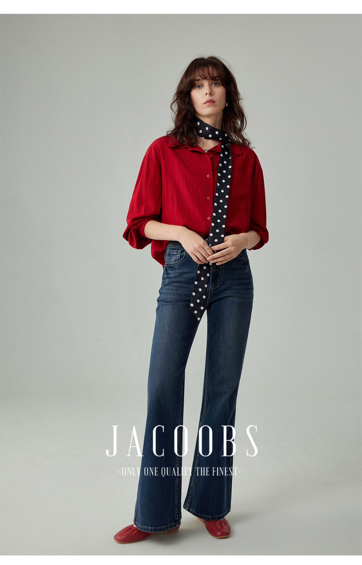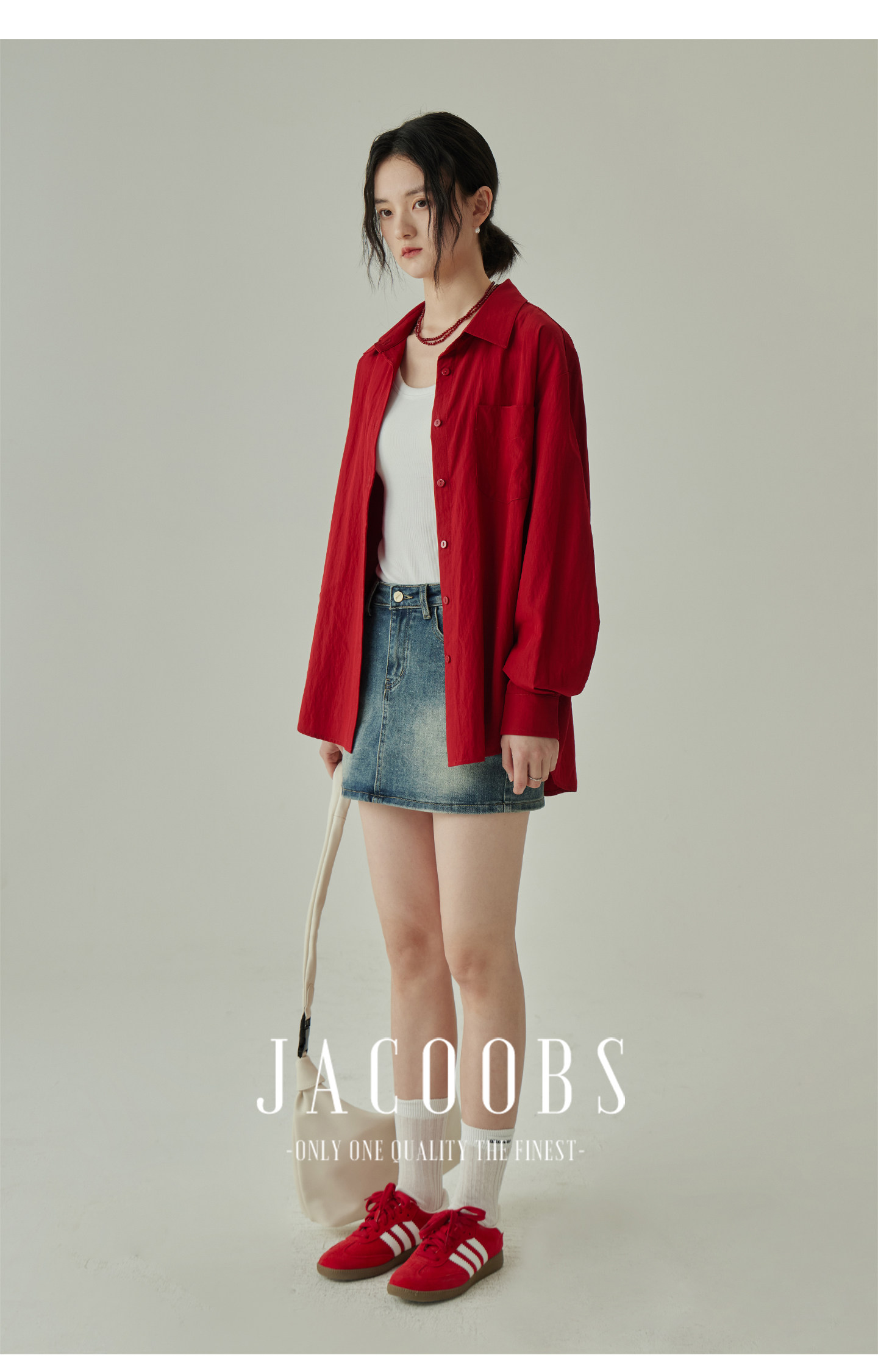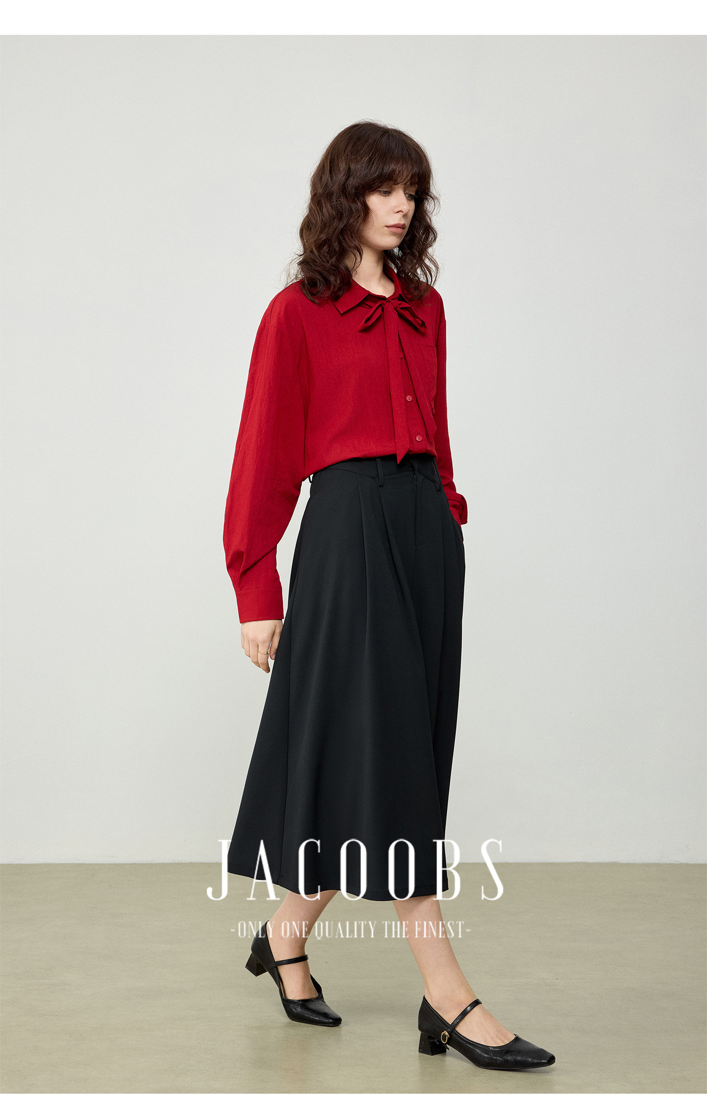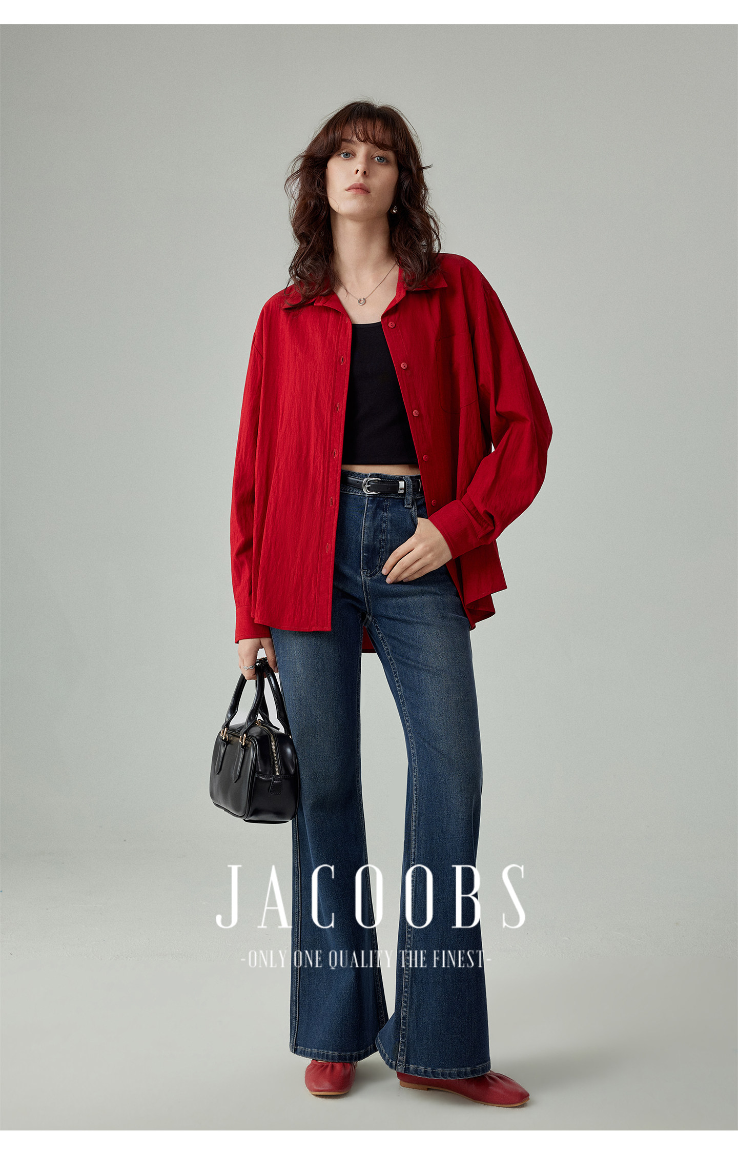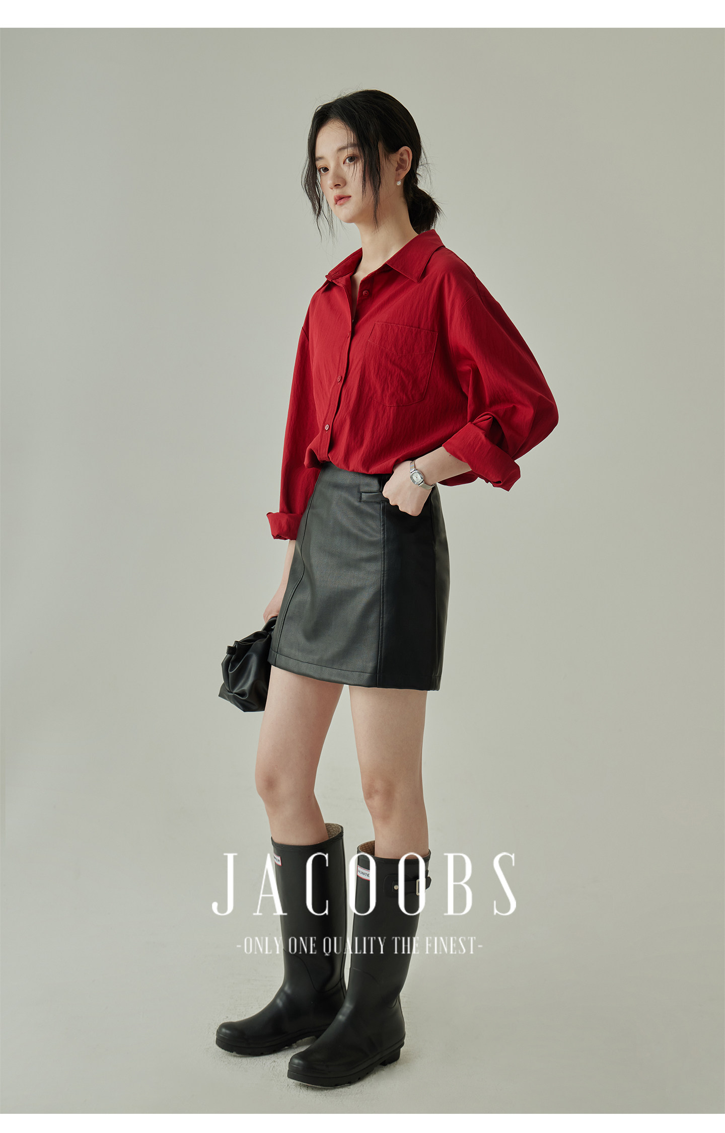 婭可家紅色上衣女設計感小衆春夏新款寬鬆繙領休閒褶皺防曬襯衫女