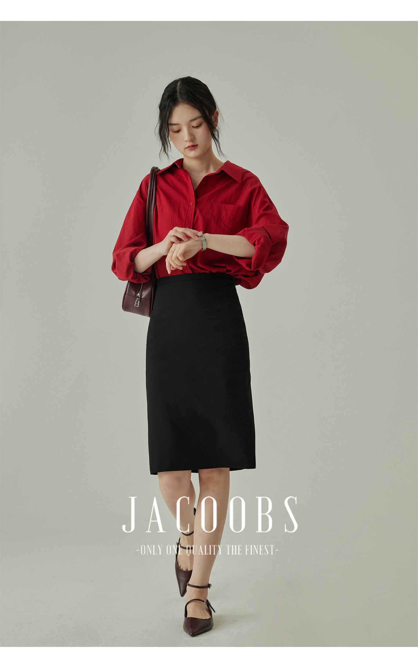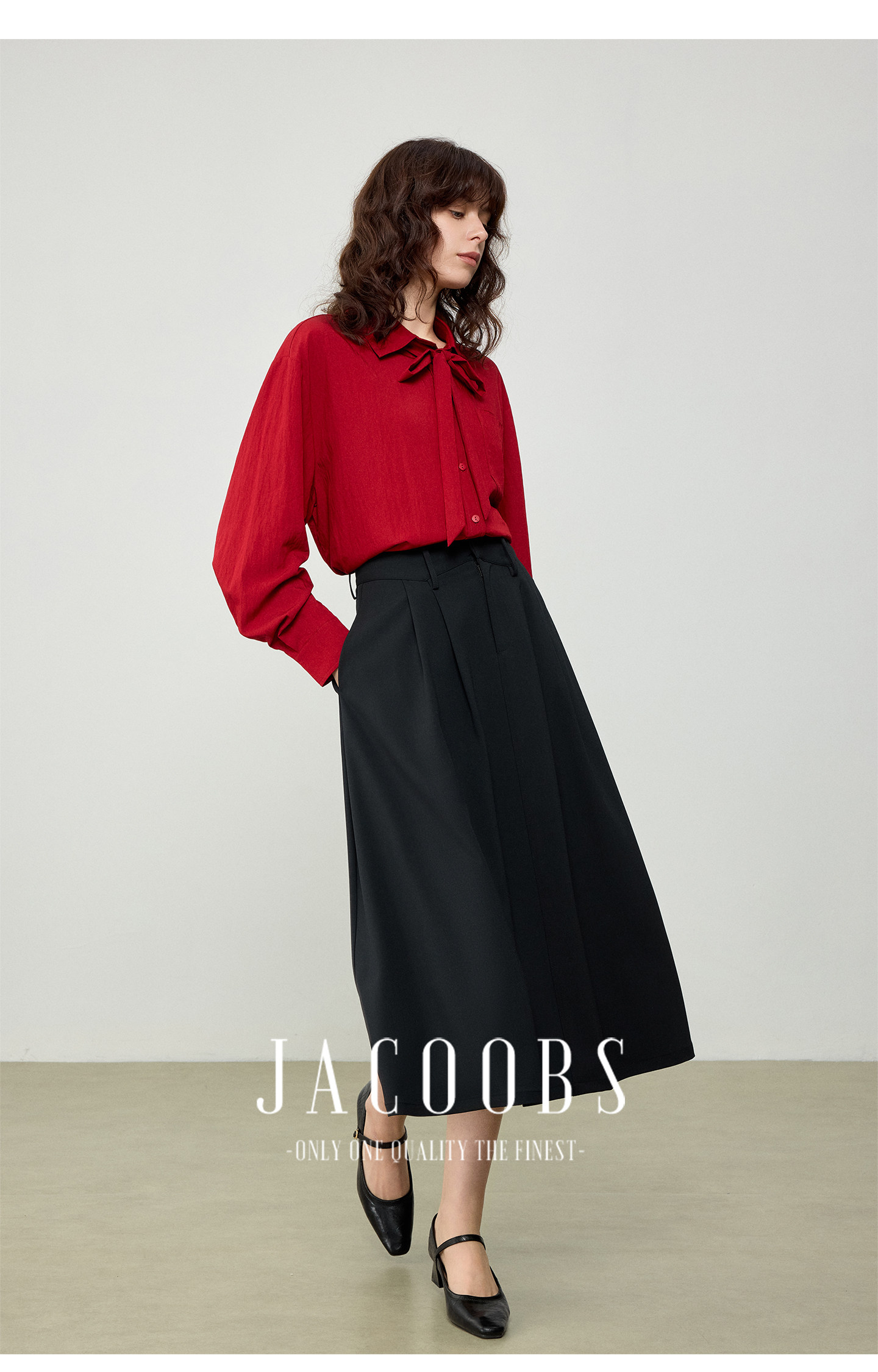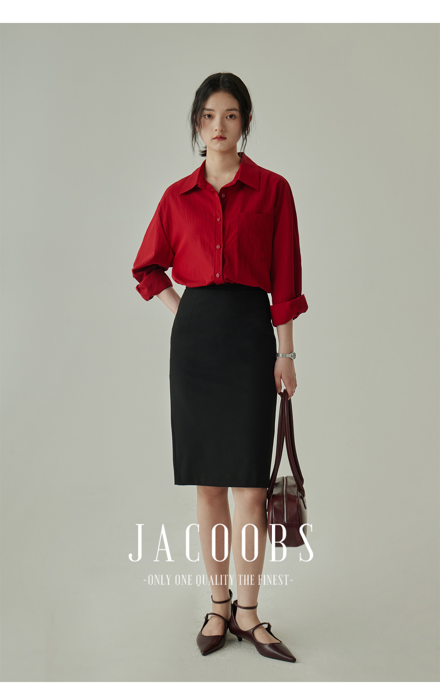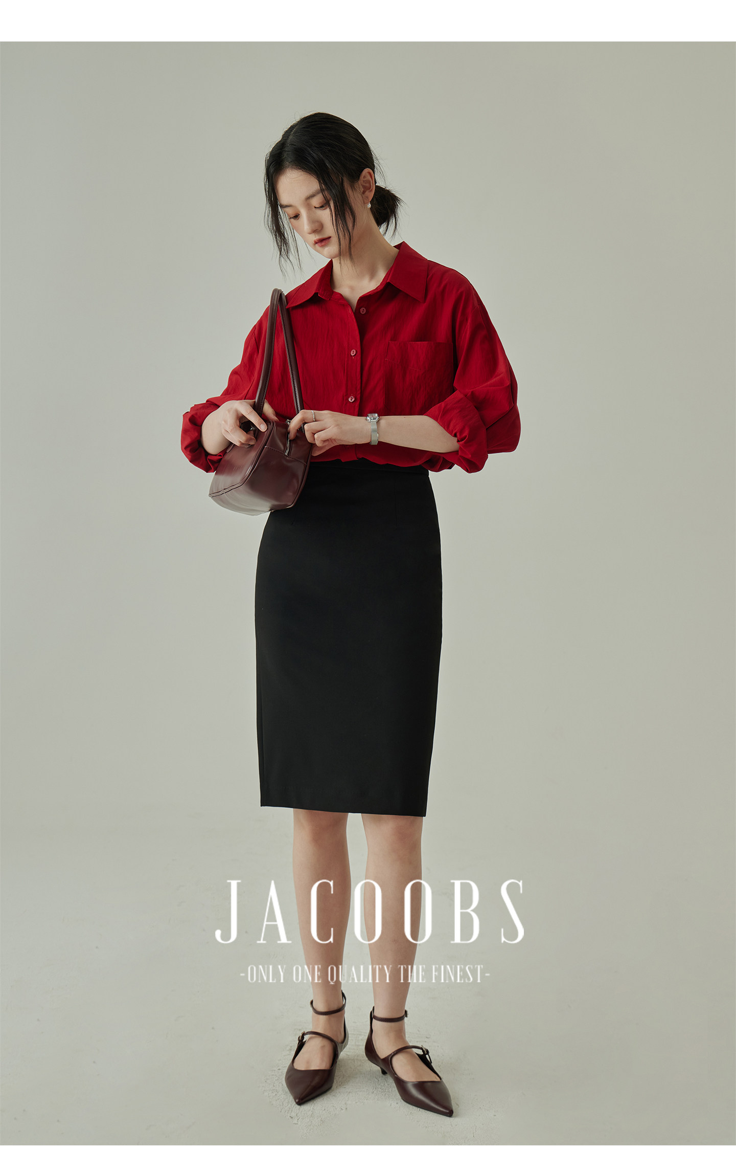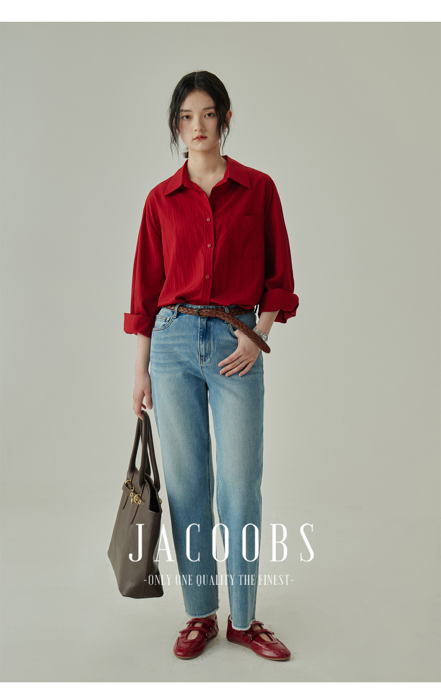 婭可家紅色上衣女設計感小衆春夏新款寬鬆繙領休閒褶皺防曬襯衫女