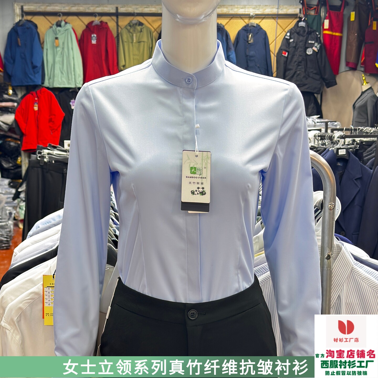 白色立領襯衫女長袖小衆竹纖維抗皺彈力上班面試銀行物業學校襯衣