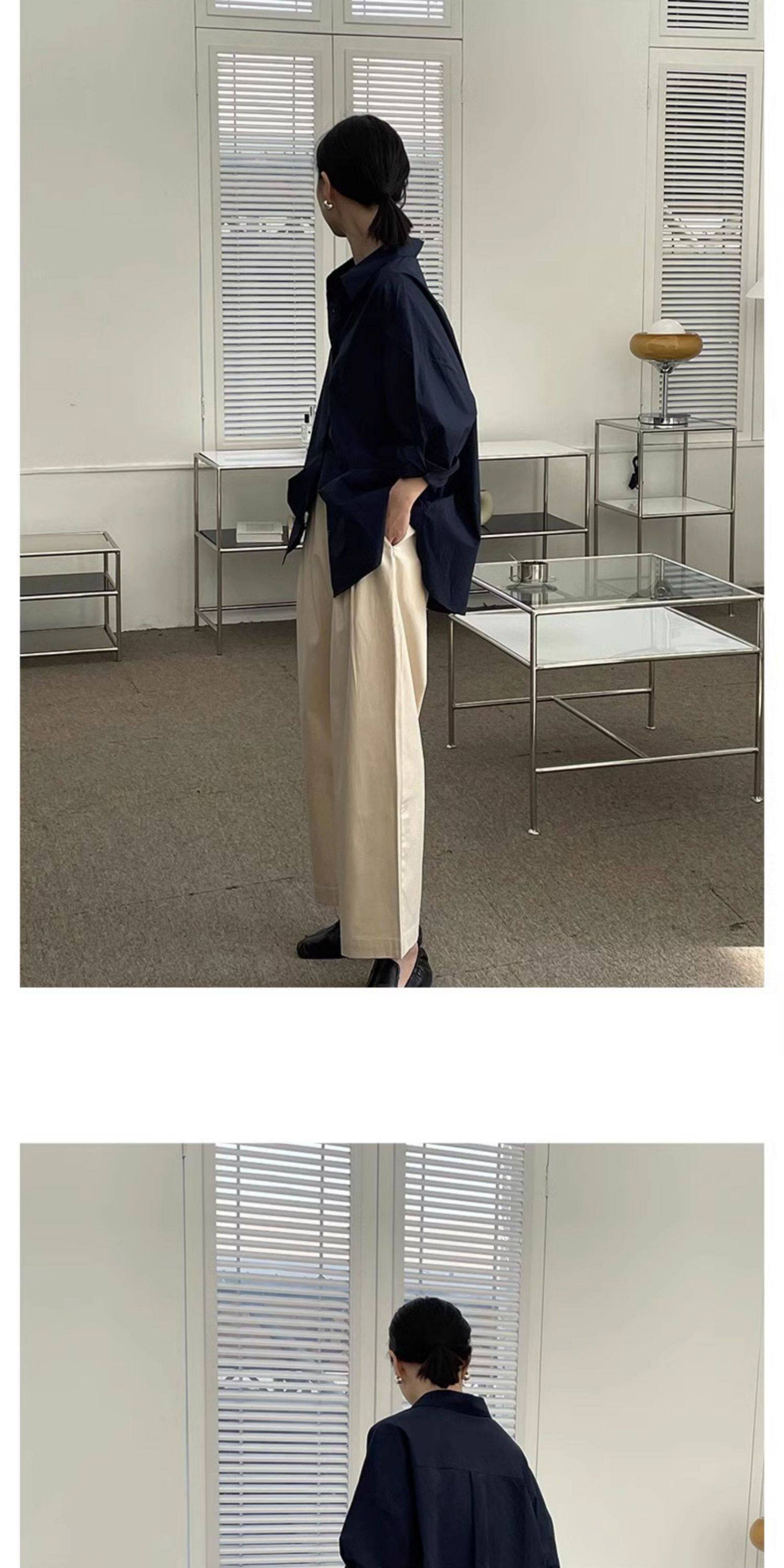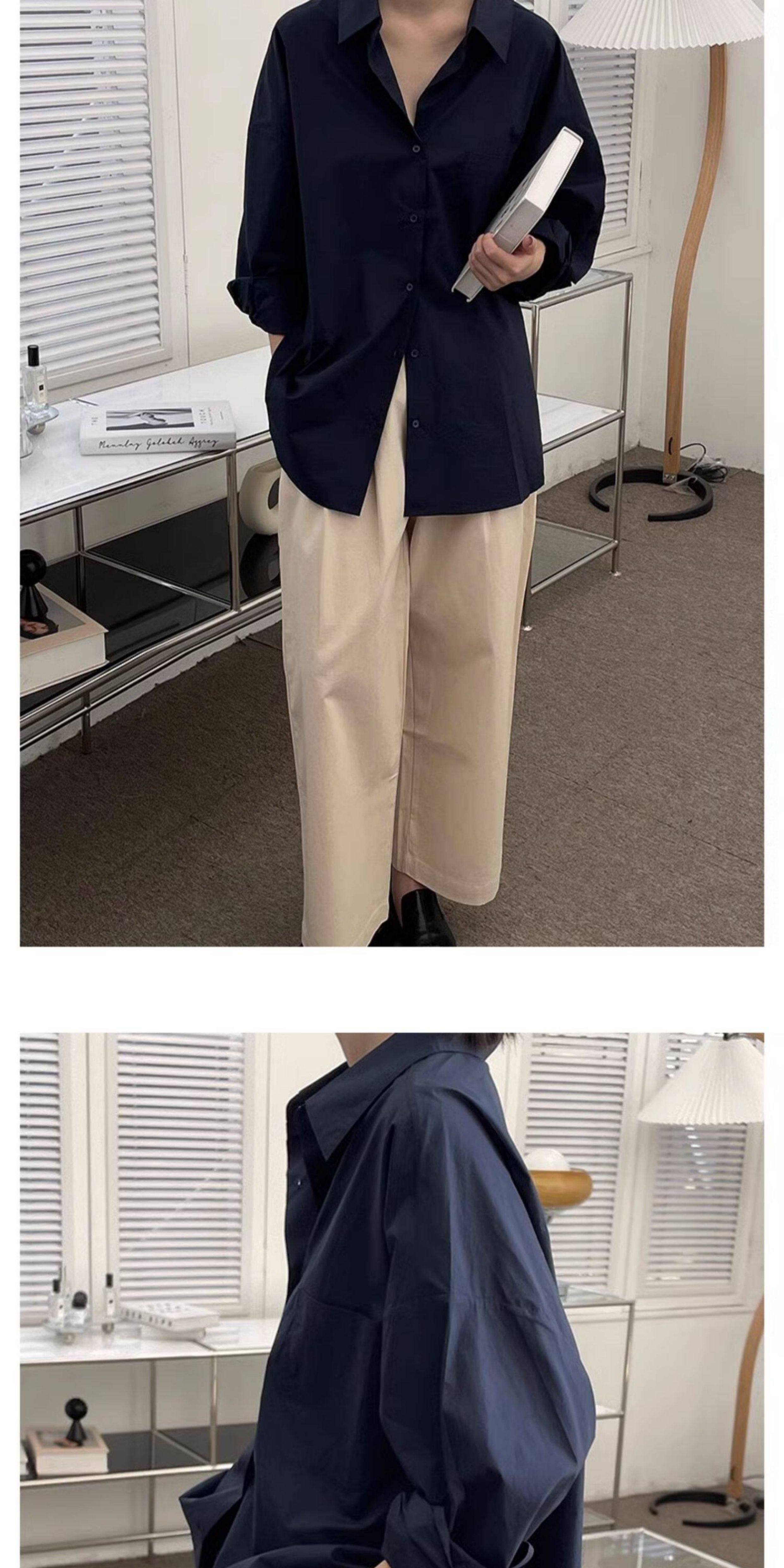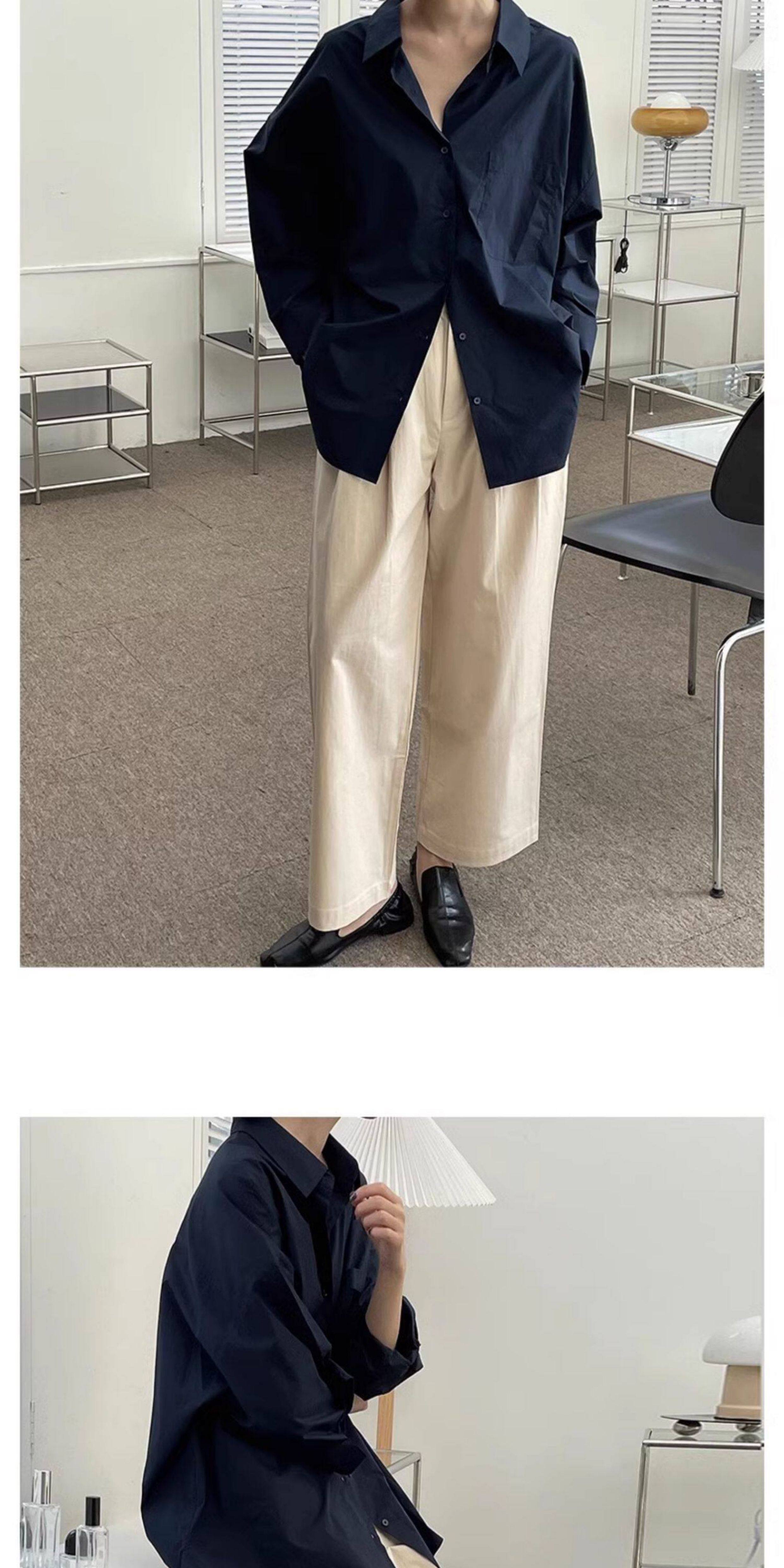 藏藍襯衫外套女慵懶chic韓版春裝寬鬆小衆襯衣廓形設計感休閒上衣