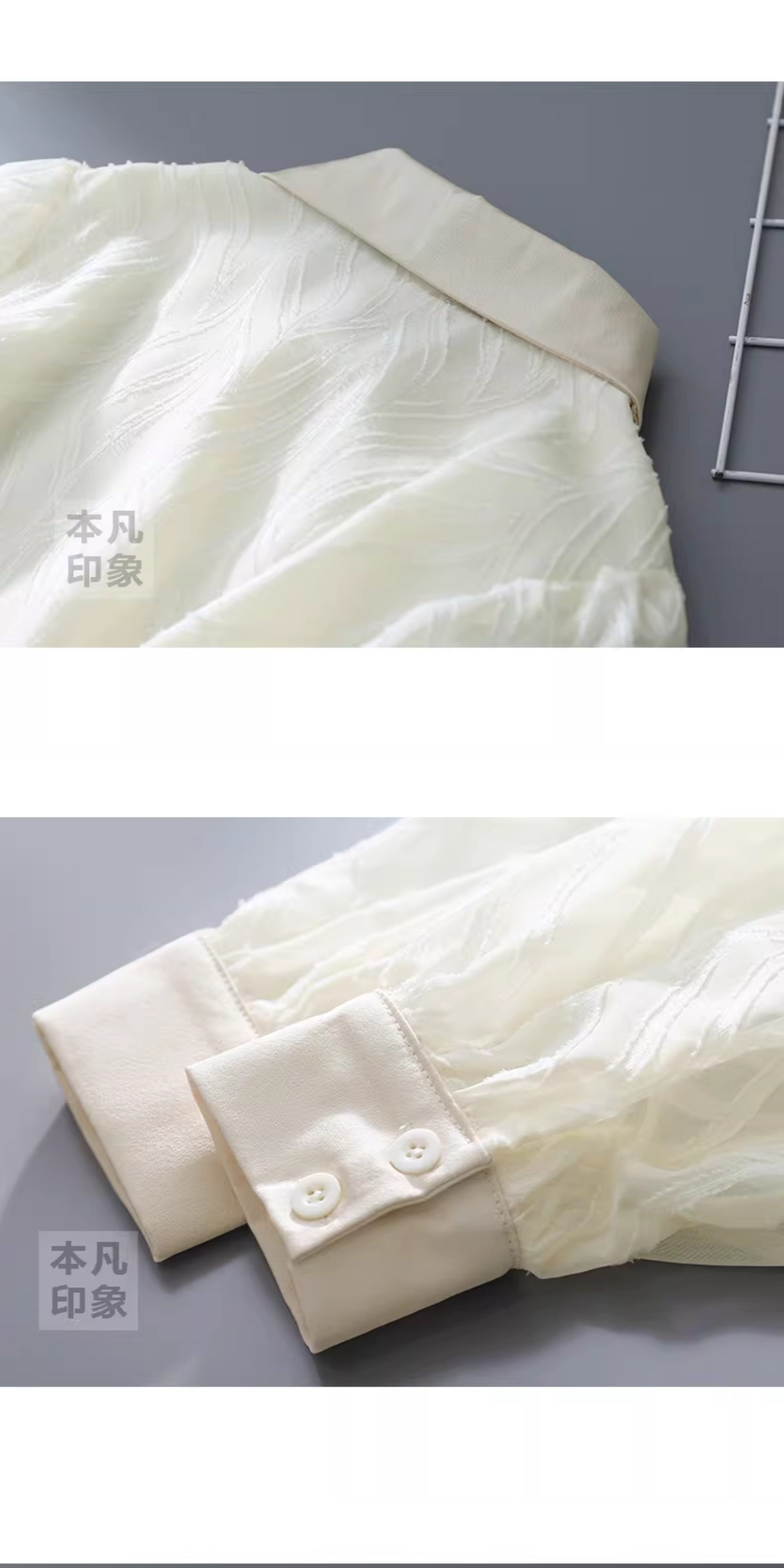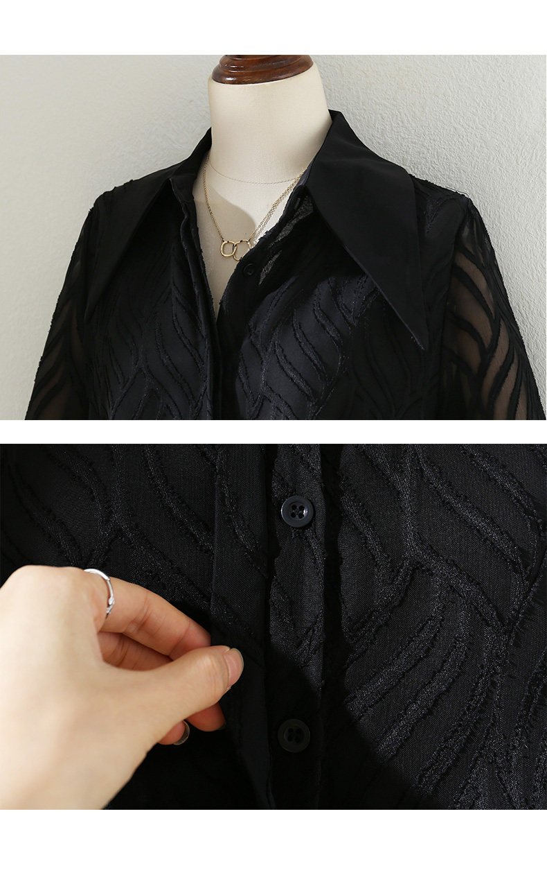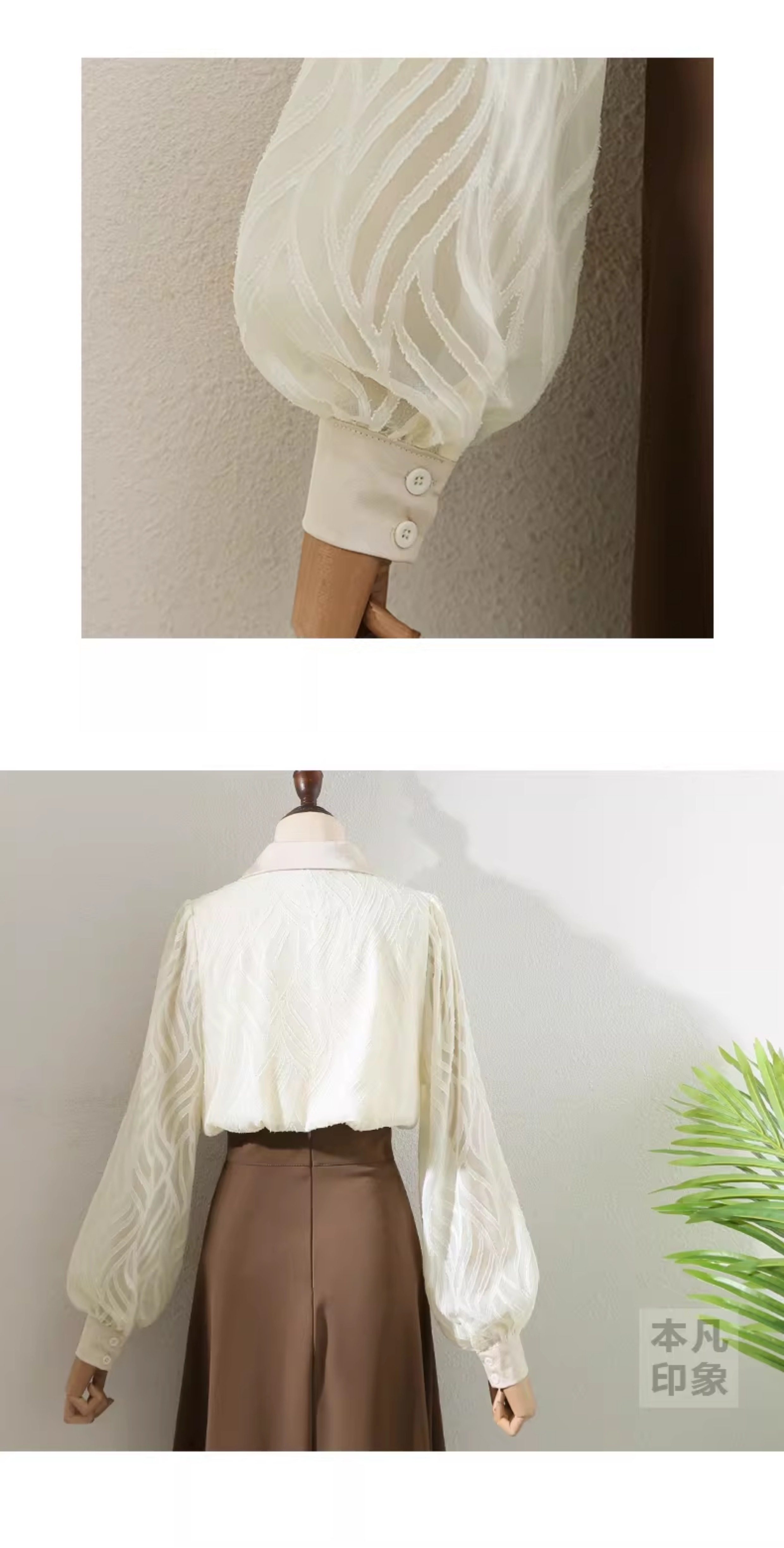 氣質高級感提花半透燈籠袖襯衫女2025秋新款小衆復古繙領別致上衣