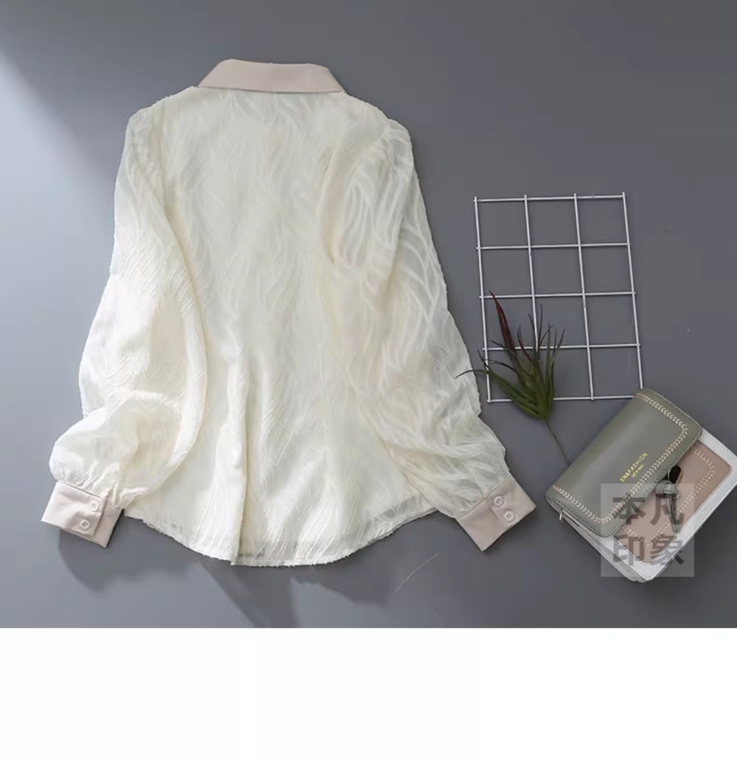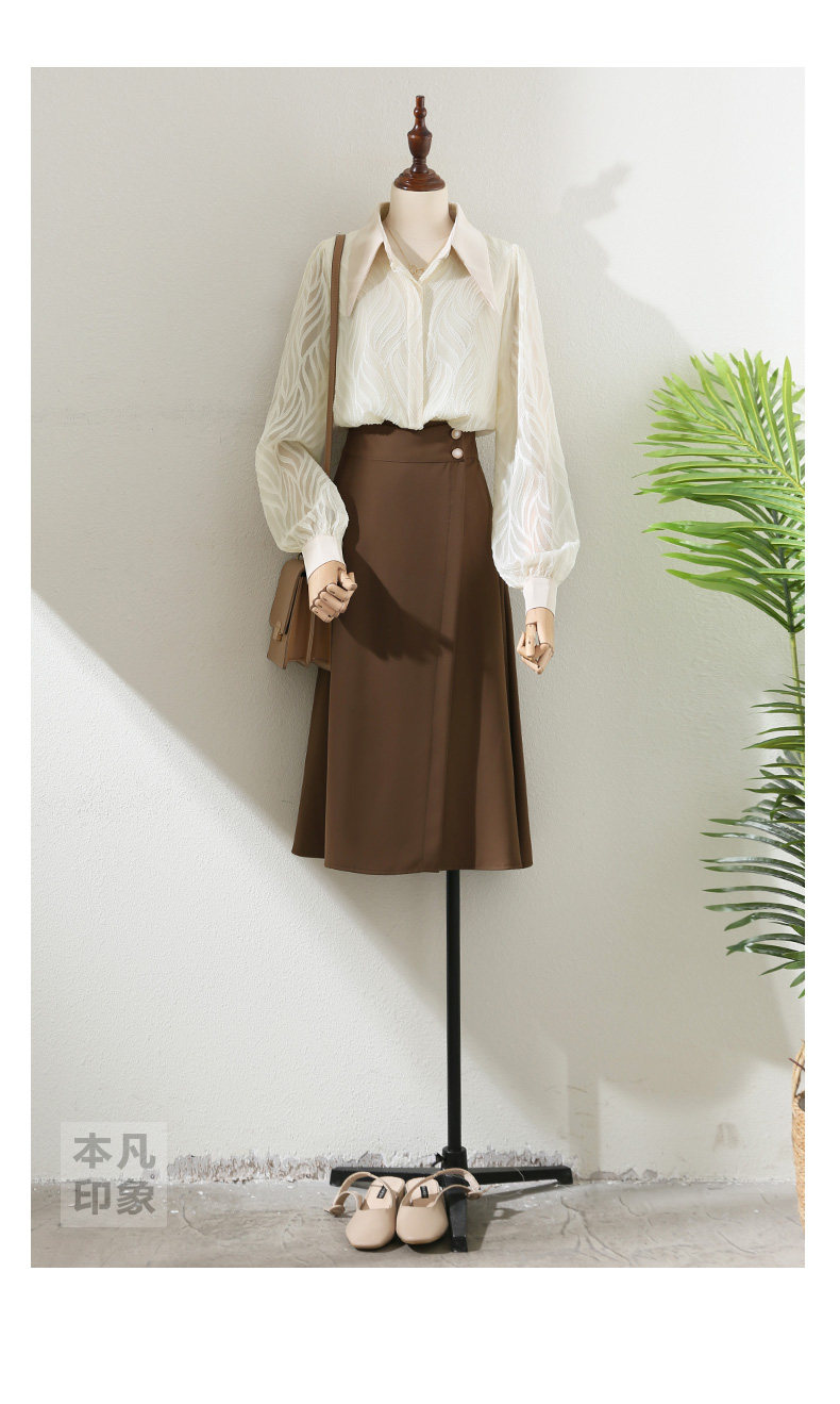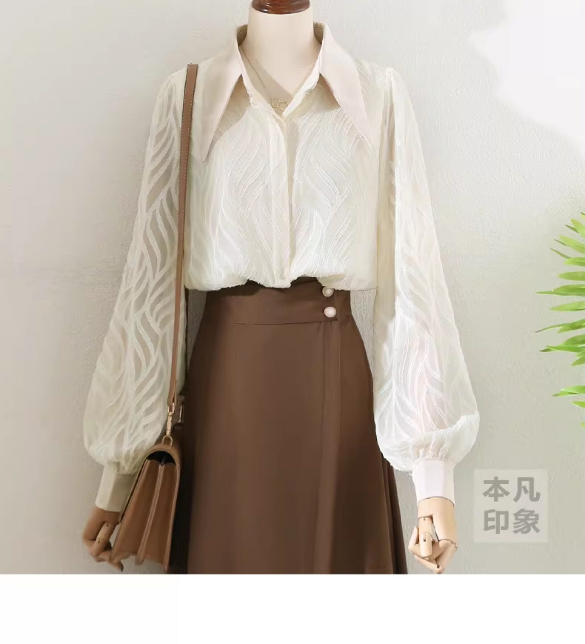 氣質高級感提花半透燈籠袖襯衫女2025秋新款小衆復古繙領別致上衣