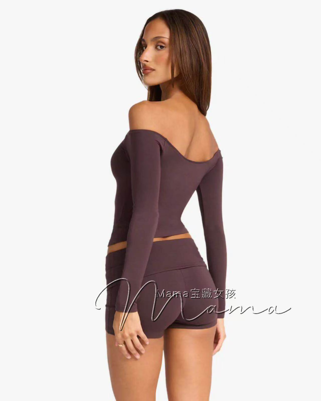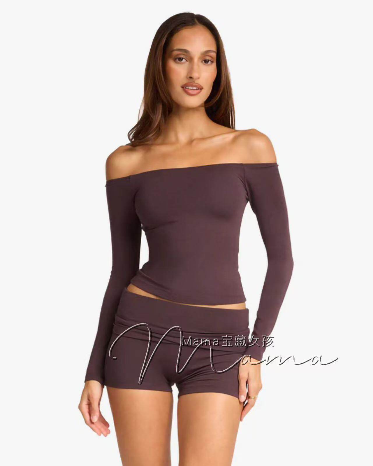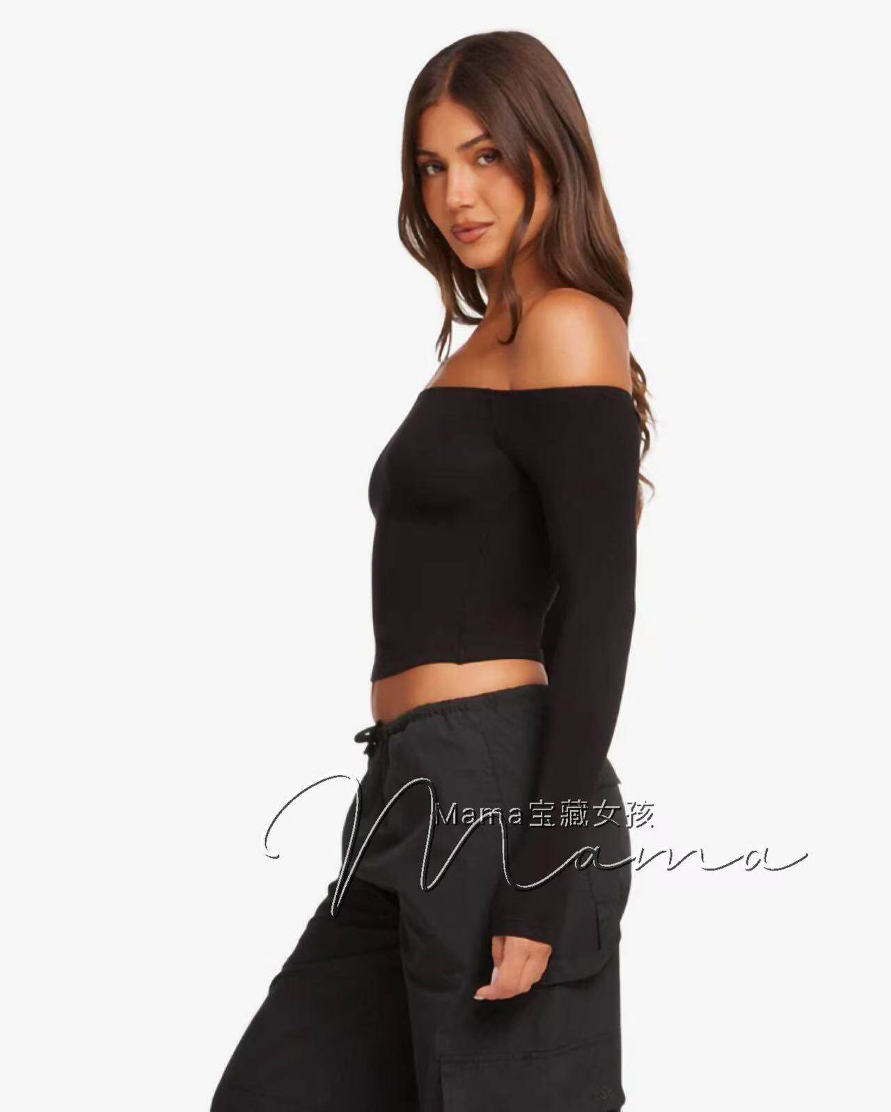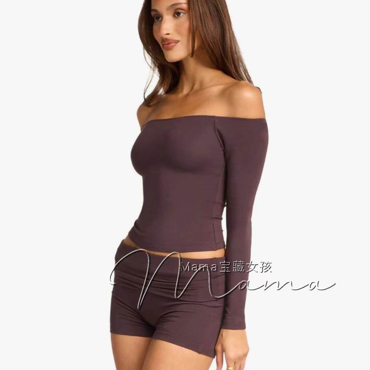 寶藏女孩csb新款一字肩健身露肩長袖普拉提上衣瑜珈服緊身訓練T恤