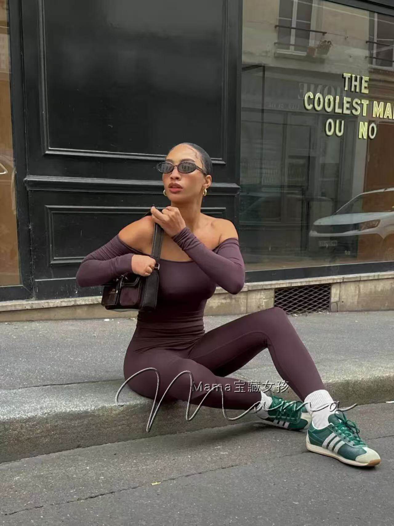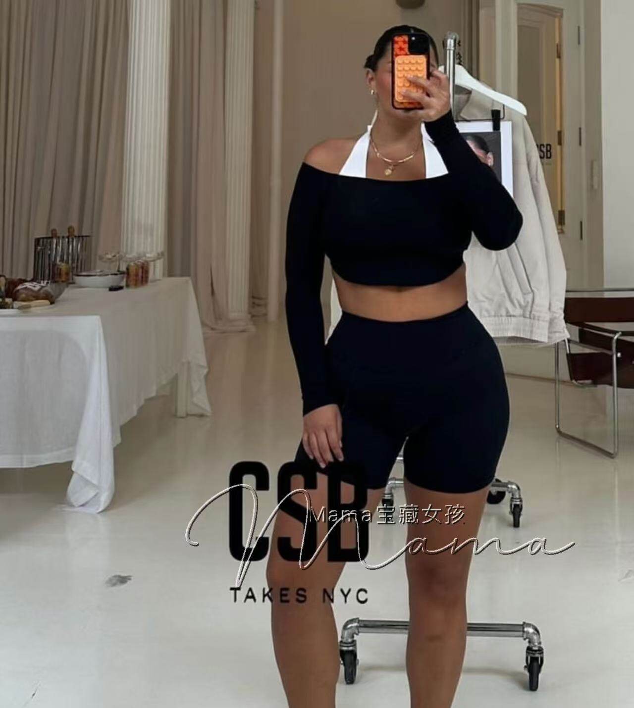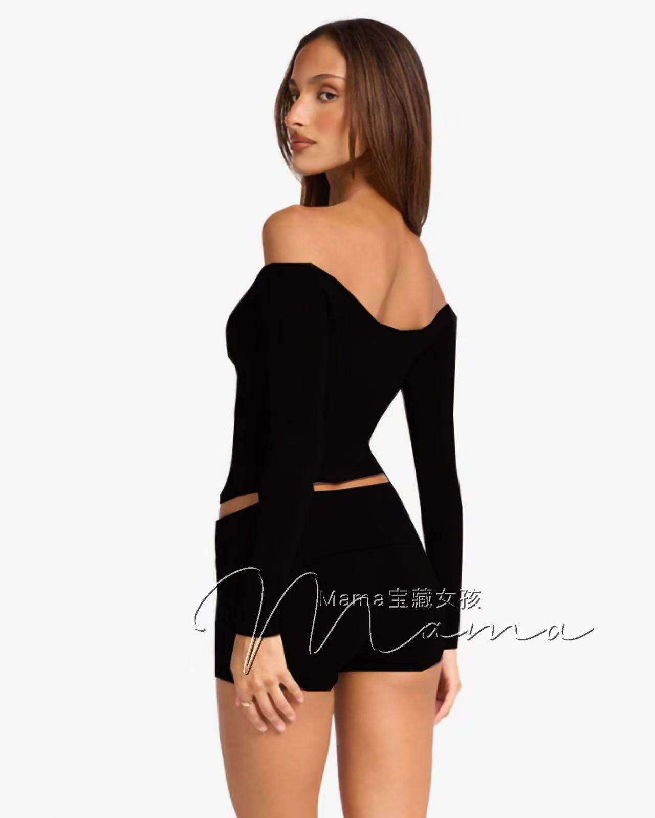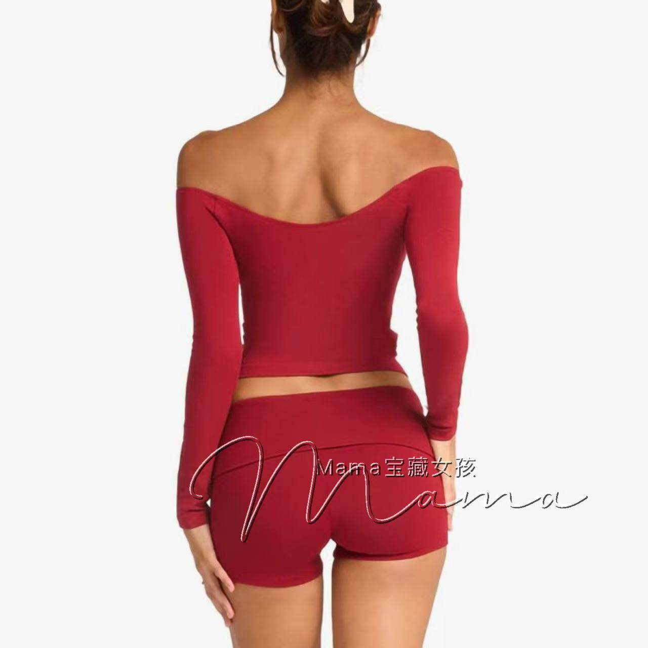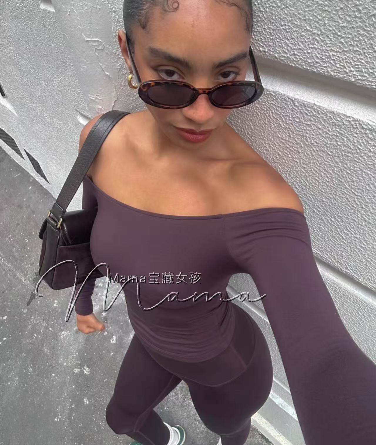寶藏女孩csb新款一字肩健身露肩長袖普拉提上衣瑜珈服緊身訓練T恤