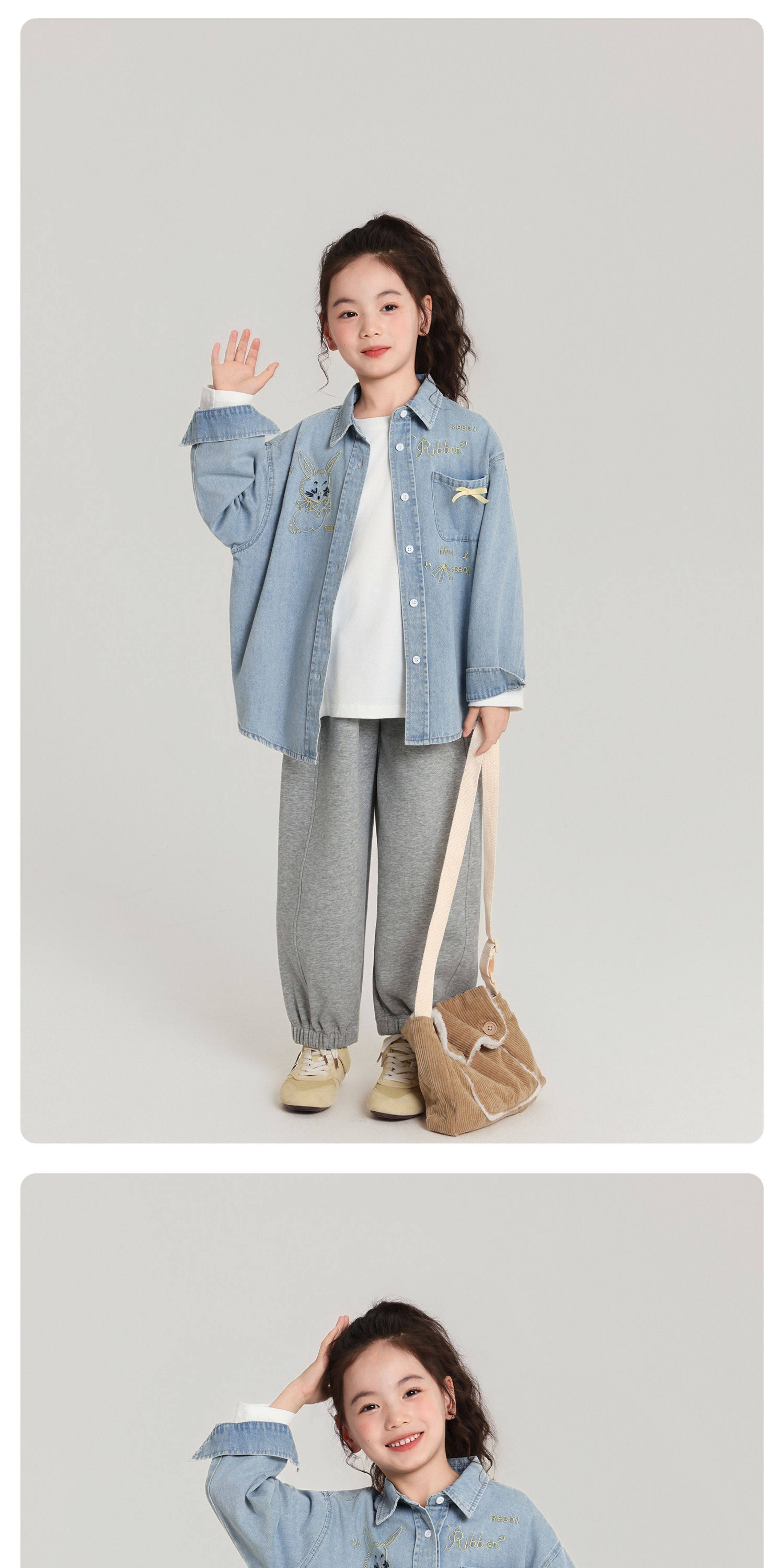 布丁哈魯童裝秋裝女童洋氣上衣2026春秋新款兒童休閒牛仔襯衫外套