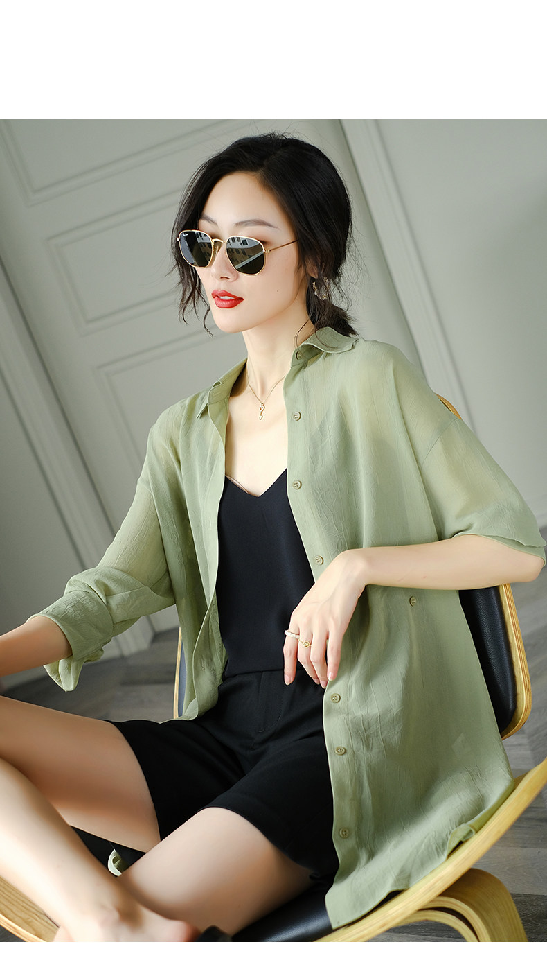 防曬衣女襯衫2026新款夏季外搭開衫配吊帶裙子薄款桑蠶絲披肩外套