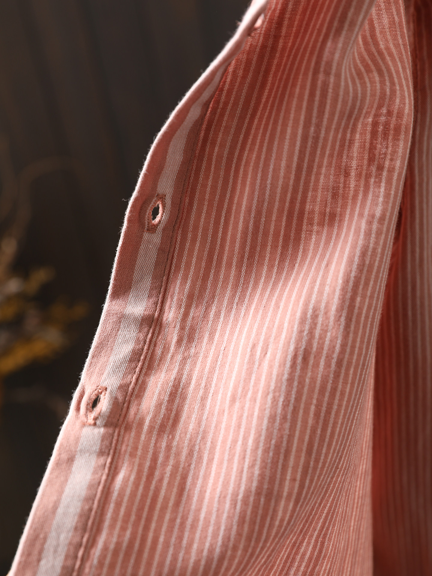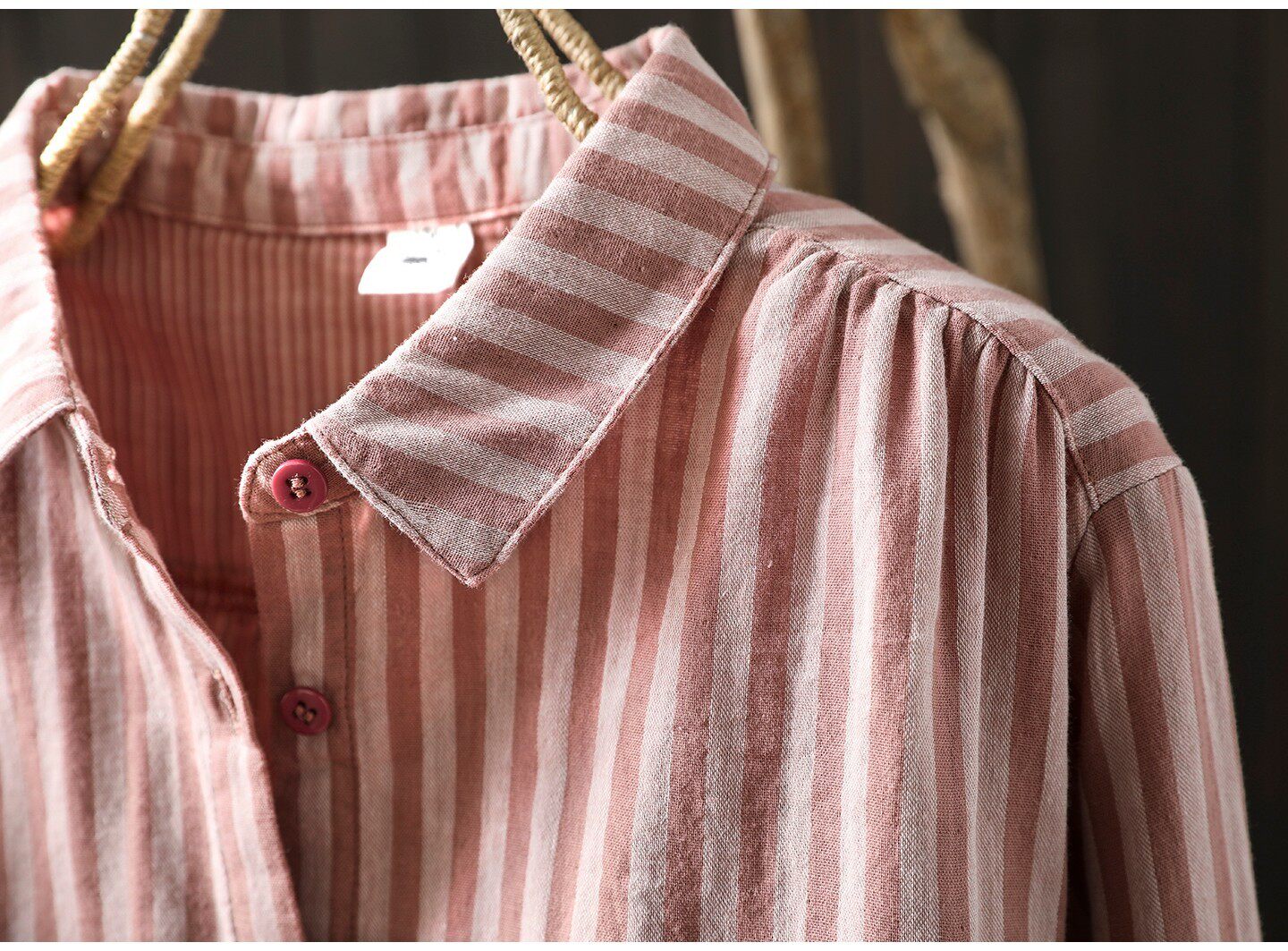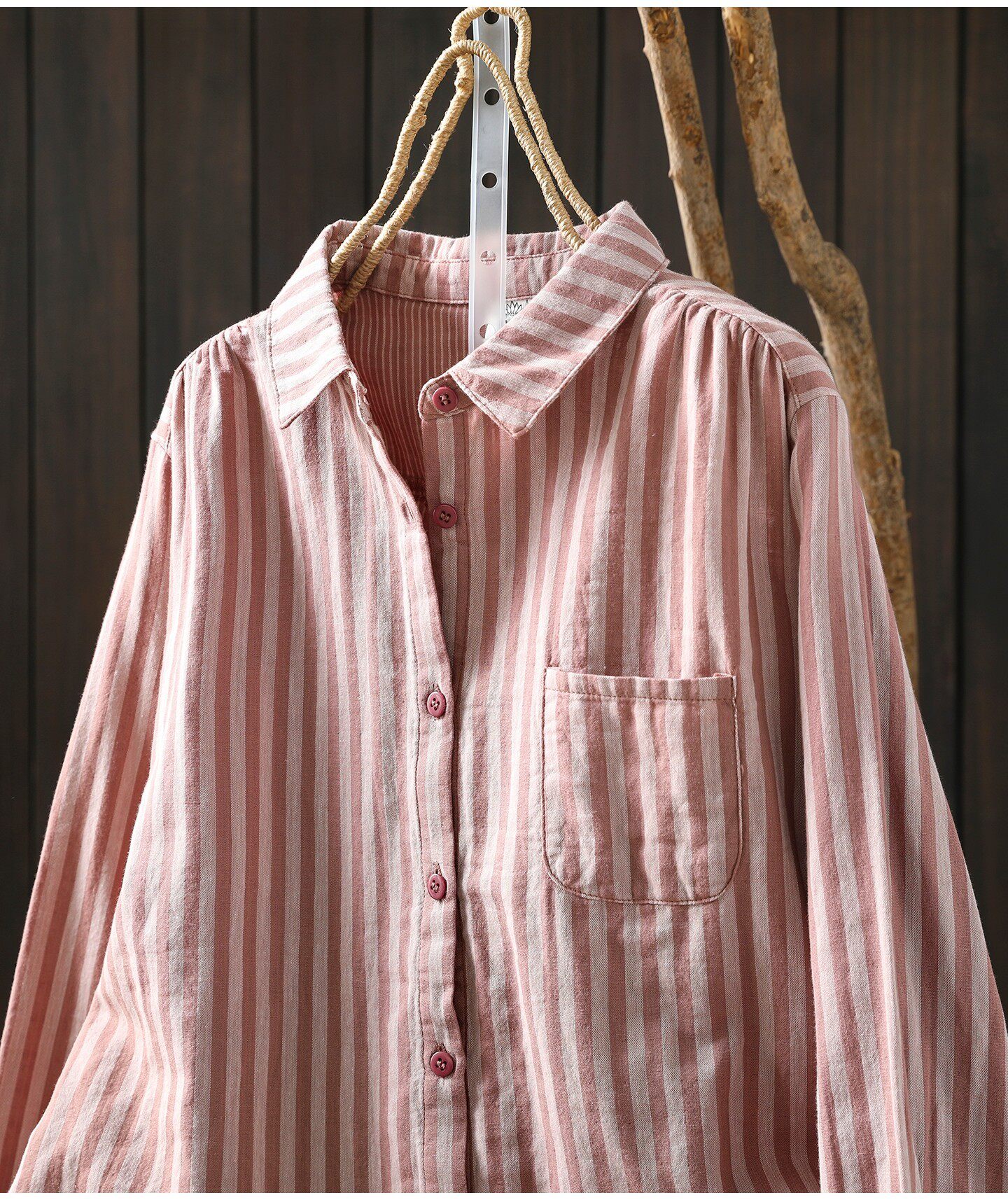 雙層棉紗純棉粉色條紋襯衫女長袖2026新款春季寬鬆休閒遮肉上衣
