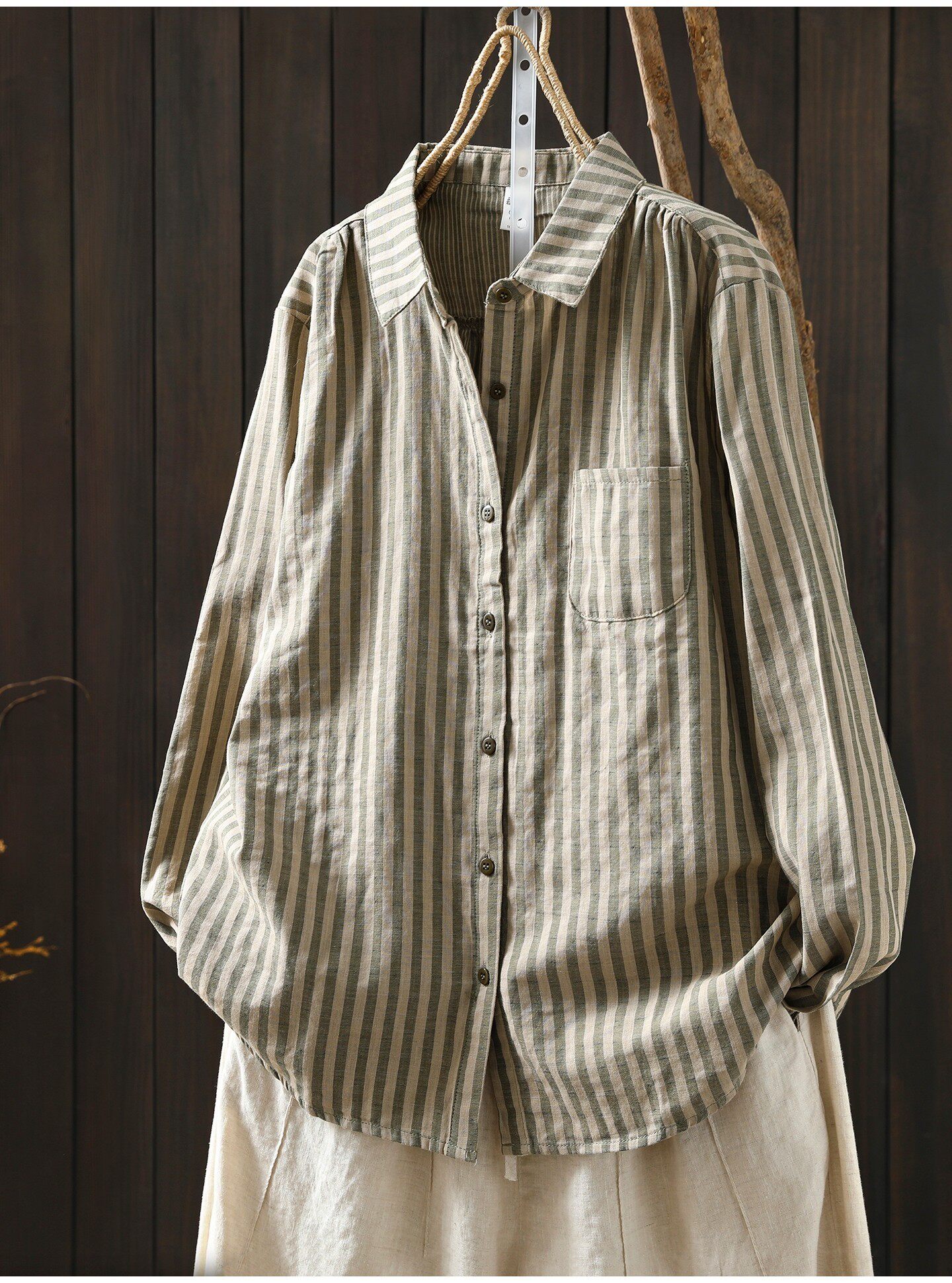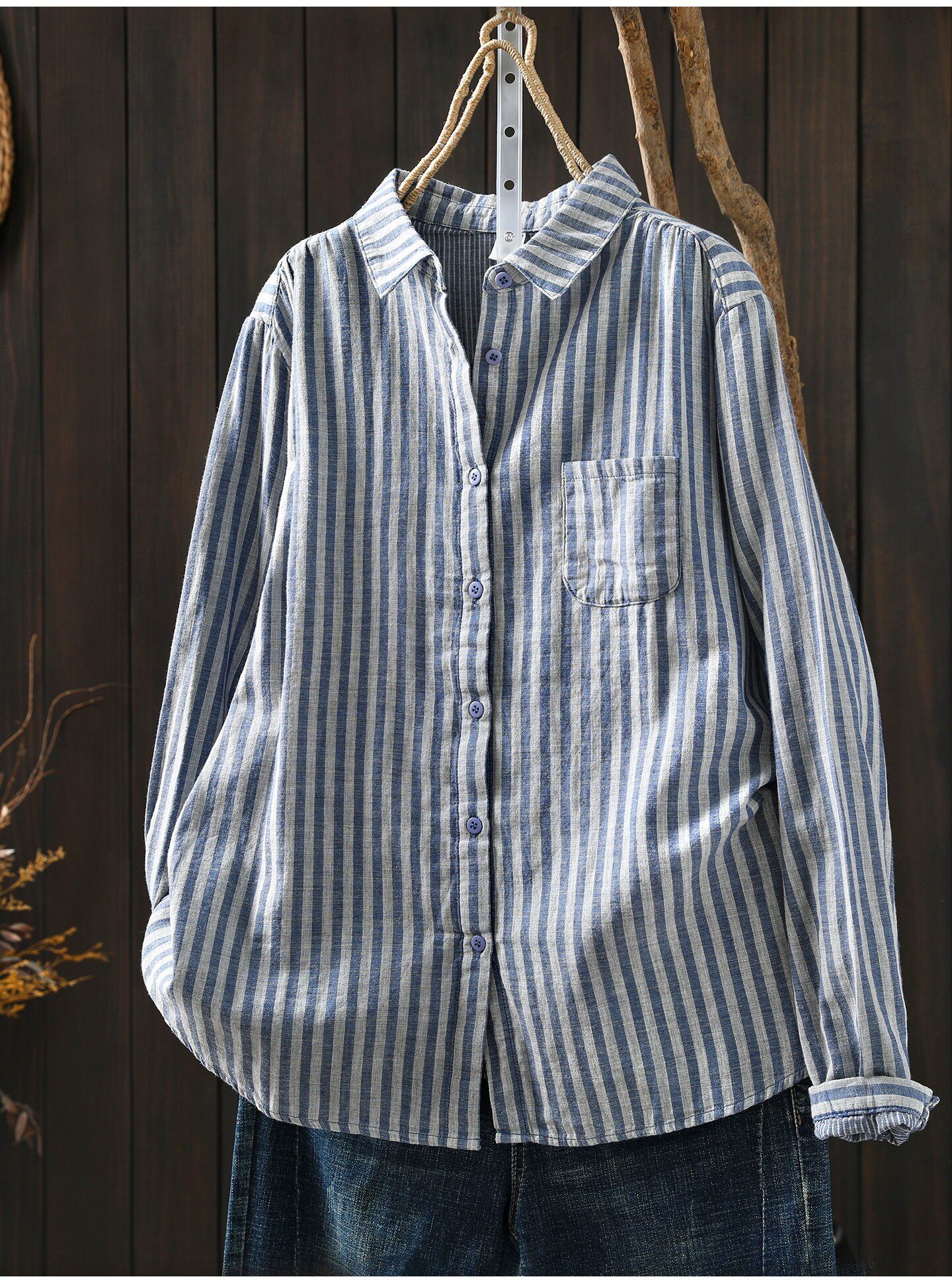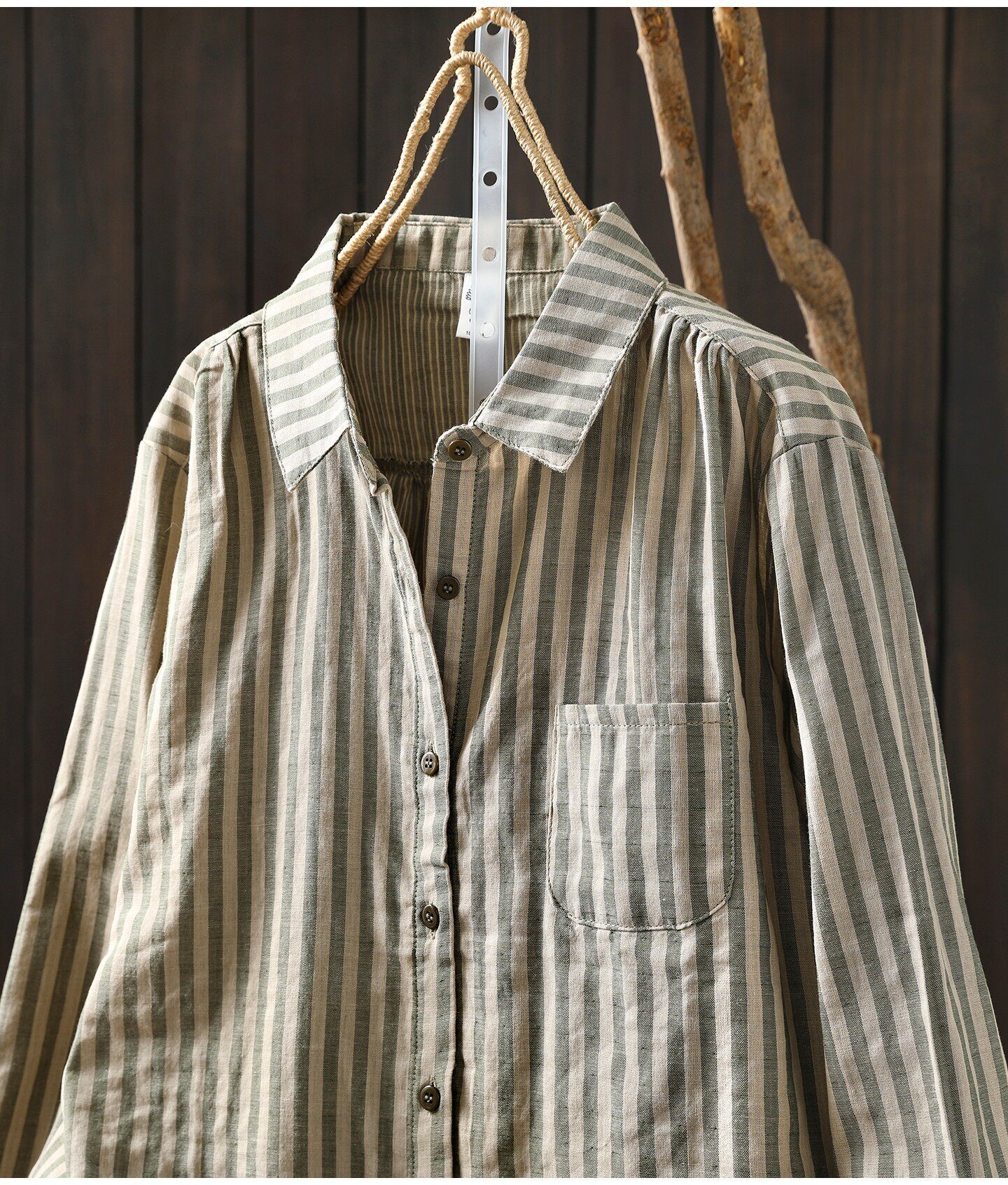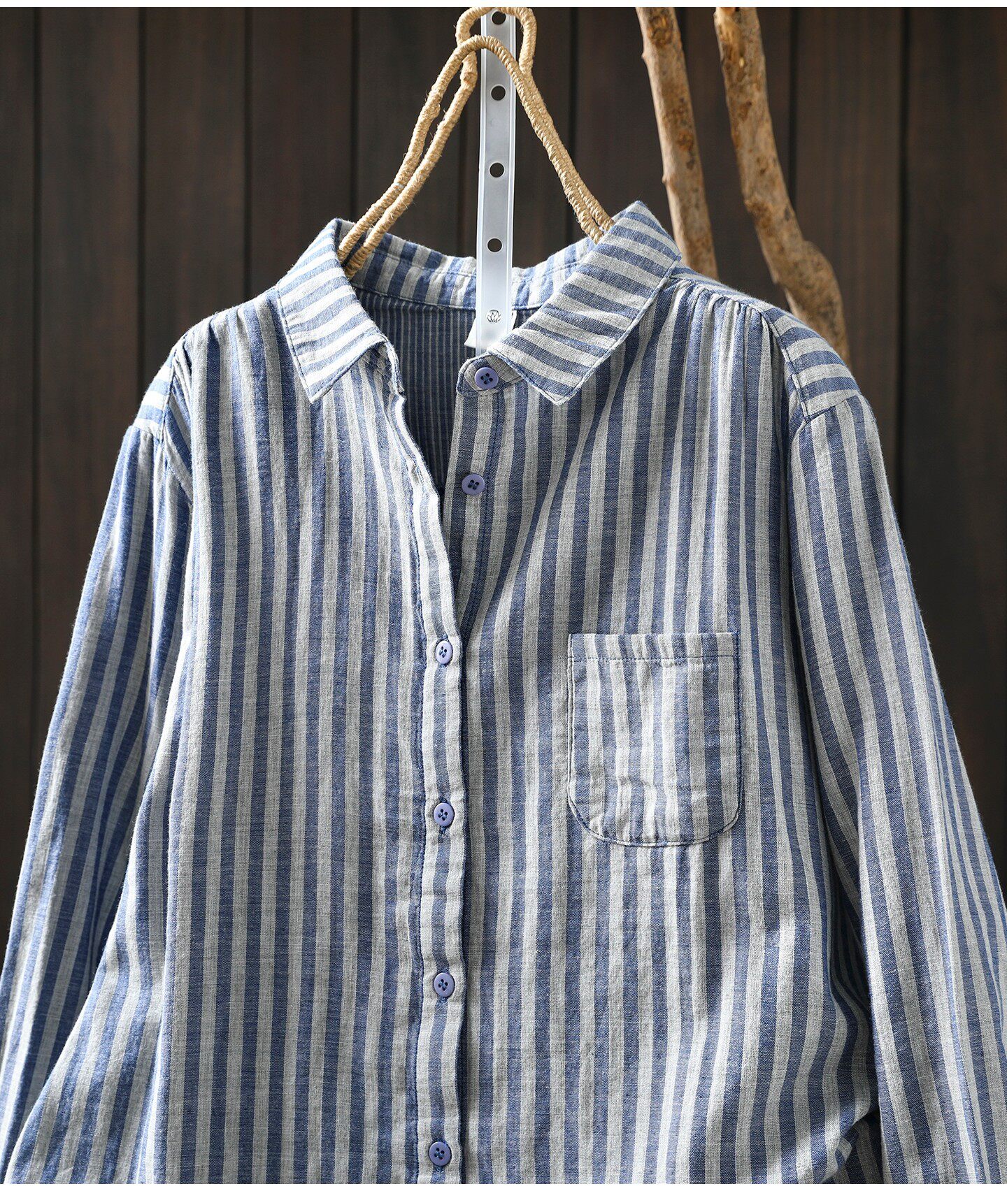 雙層棉紗純棉粉色條紋襯衫女長袖2026新款春季寬鬆休閒遮肉上衣