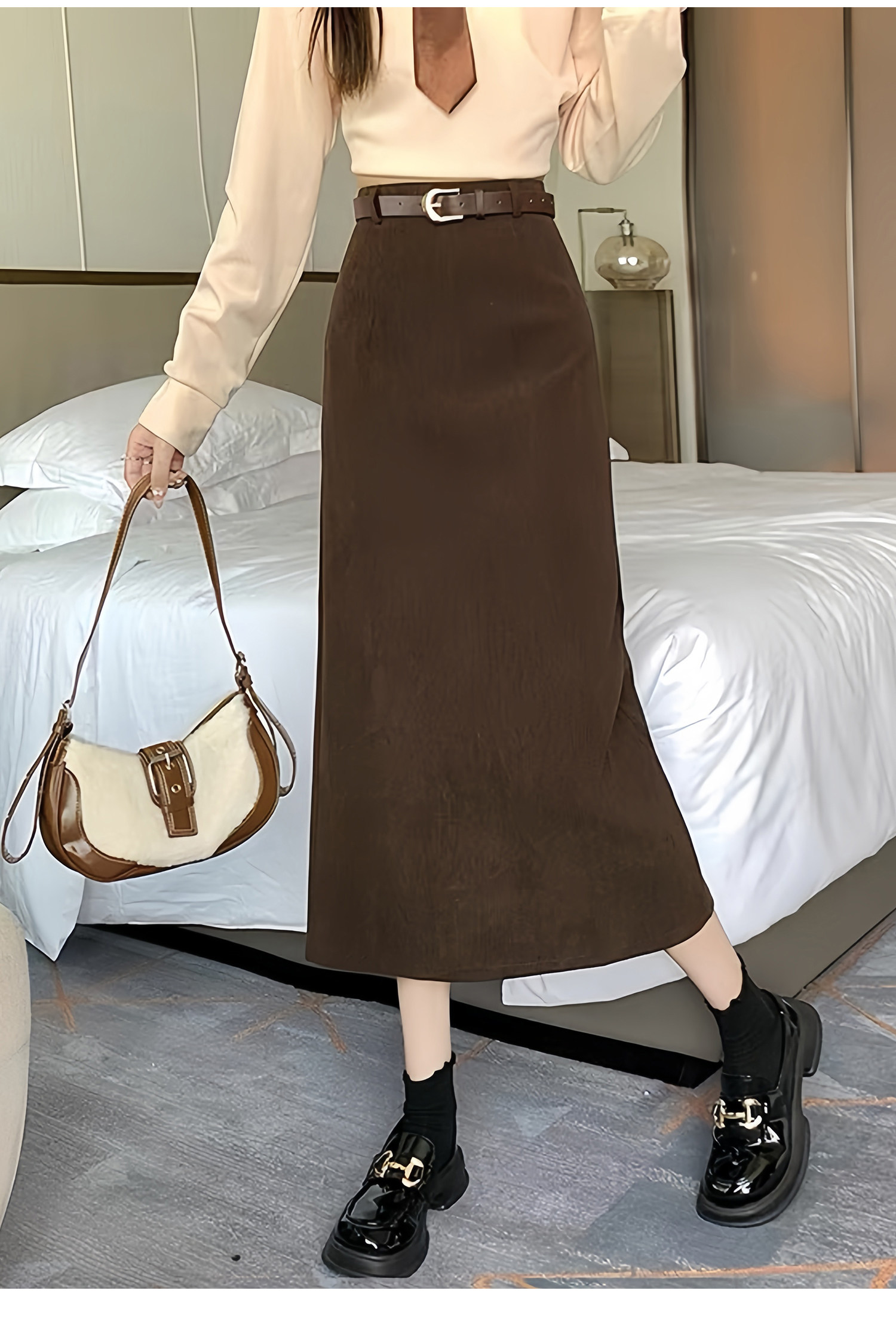 咖色燈芯絨半身裙高腰a字女2026春季新款顯瘦包臀一步裙開叉長裙