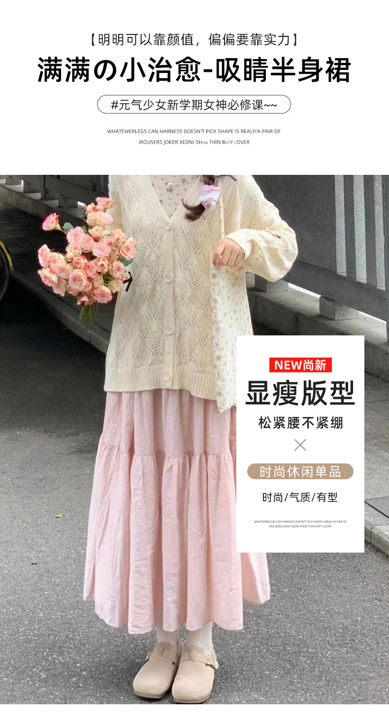 粉色半身裙女夏季2026年新款溫柔風高腰a字長裙顯瘦小個子蛋糕裙