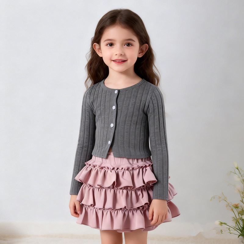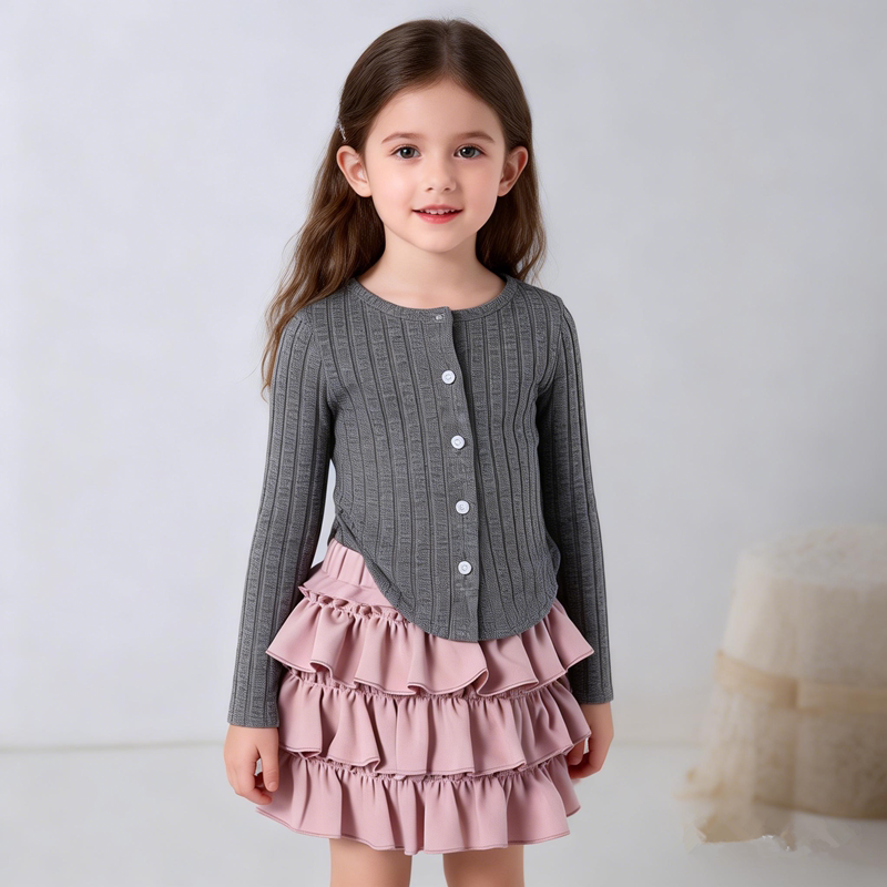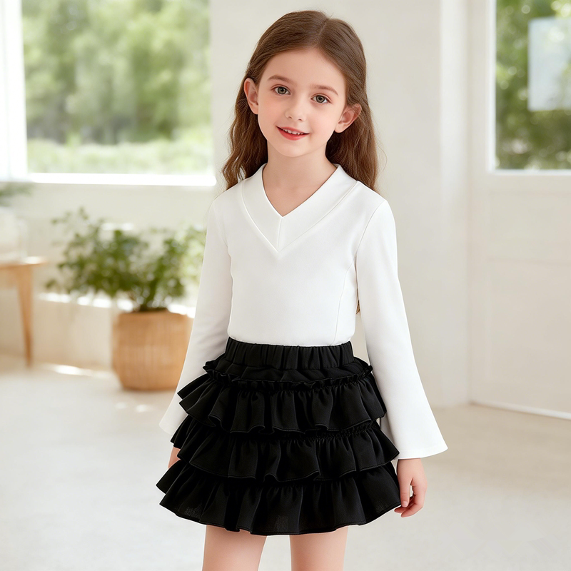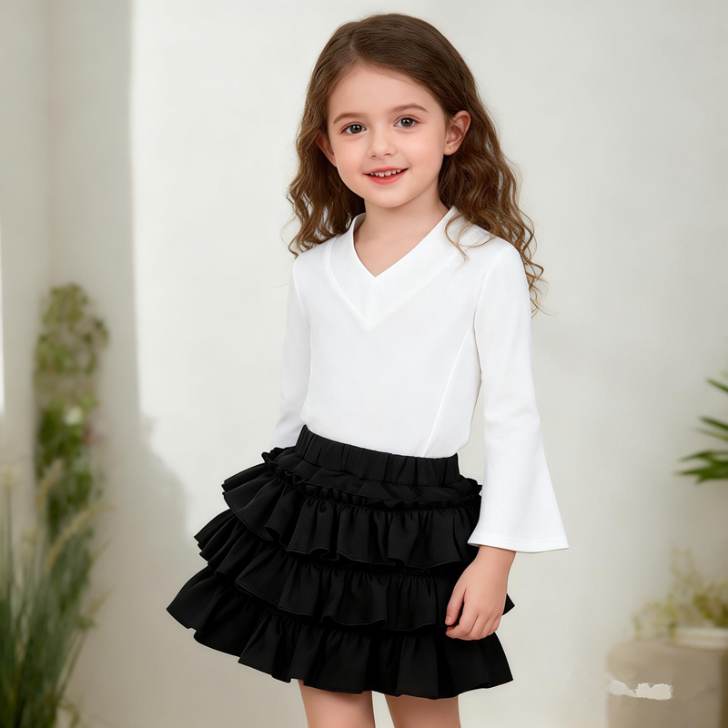 春秋季新款女童辣妹蛋糕裙兒童少女荷葉邊高腰顯瘦氣質蓬蓬短裙子