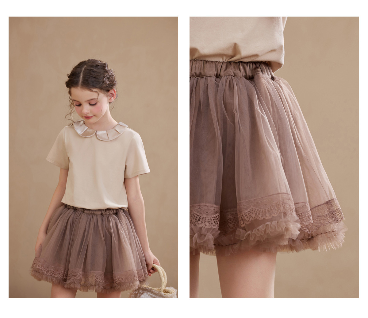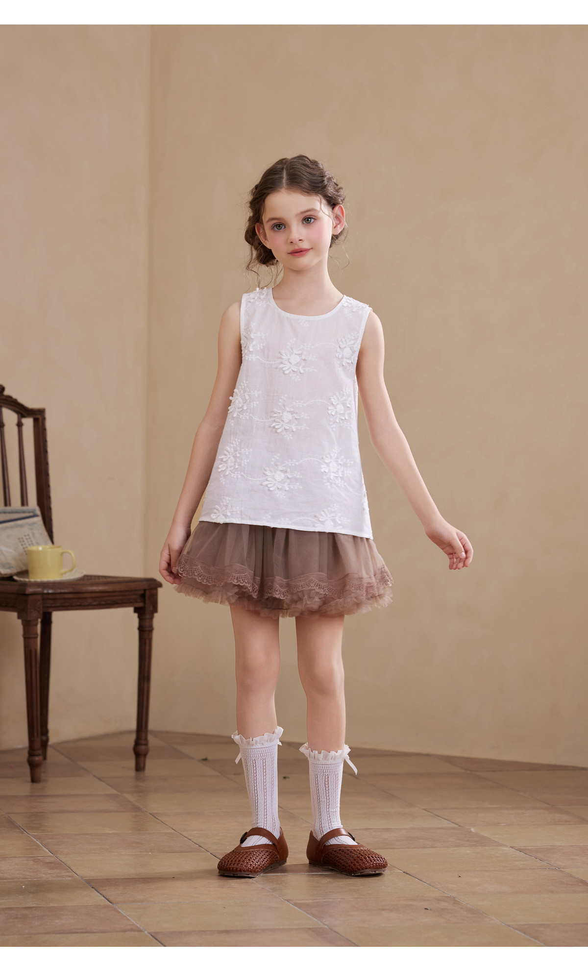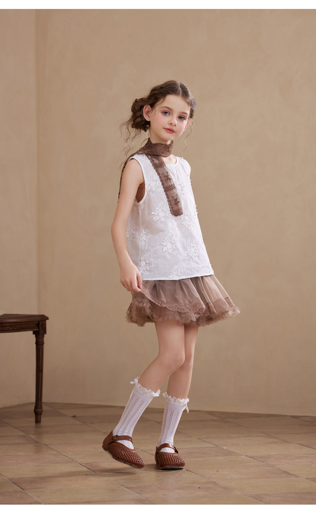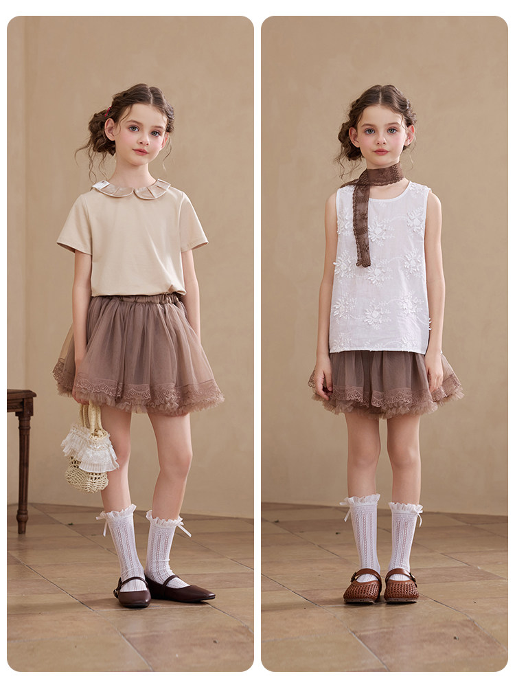 Little Naive女童半身裙夏季新款甜美花邊蓬蓬裙兒童芭蕾風短裙