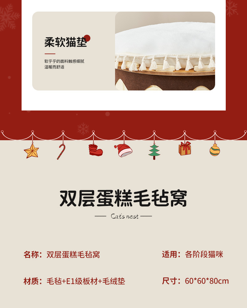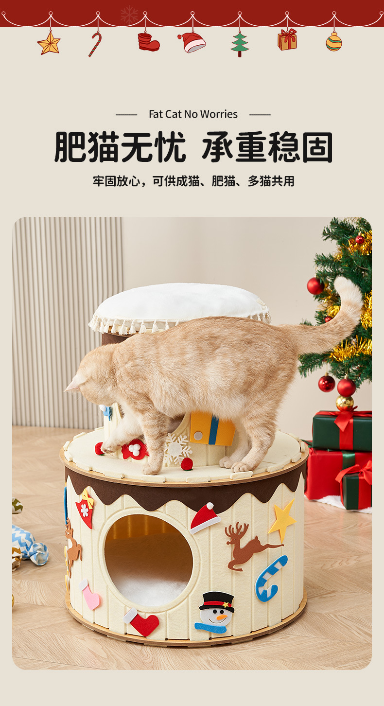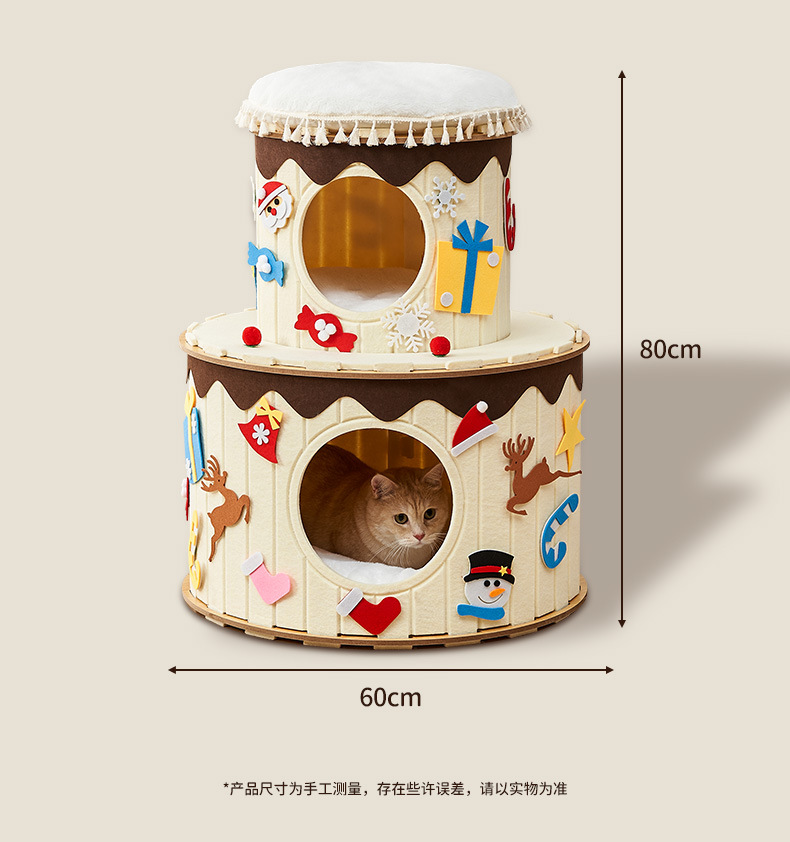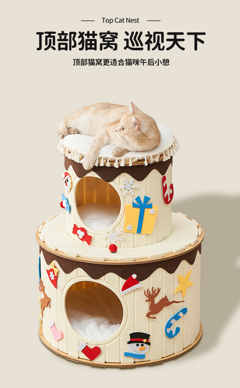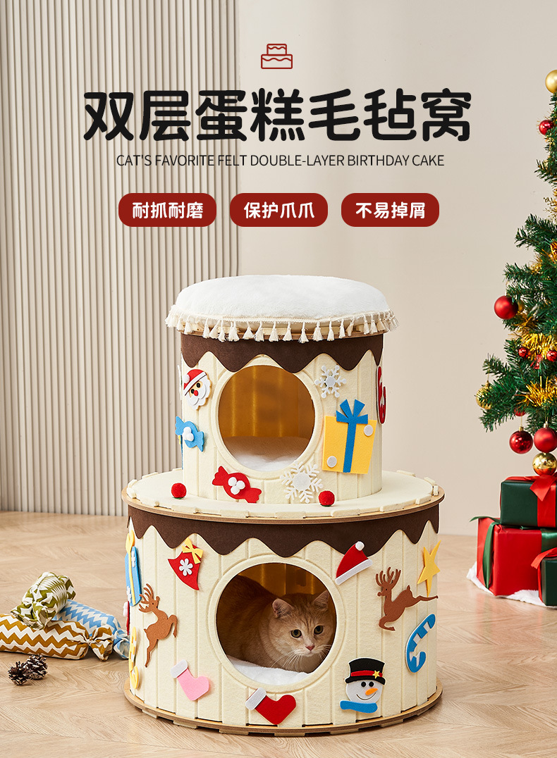 封閉式雙層貓窩安全感蛋糕毛氈窩耐抓不掉屑多貓家庭冬季保暖