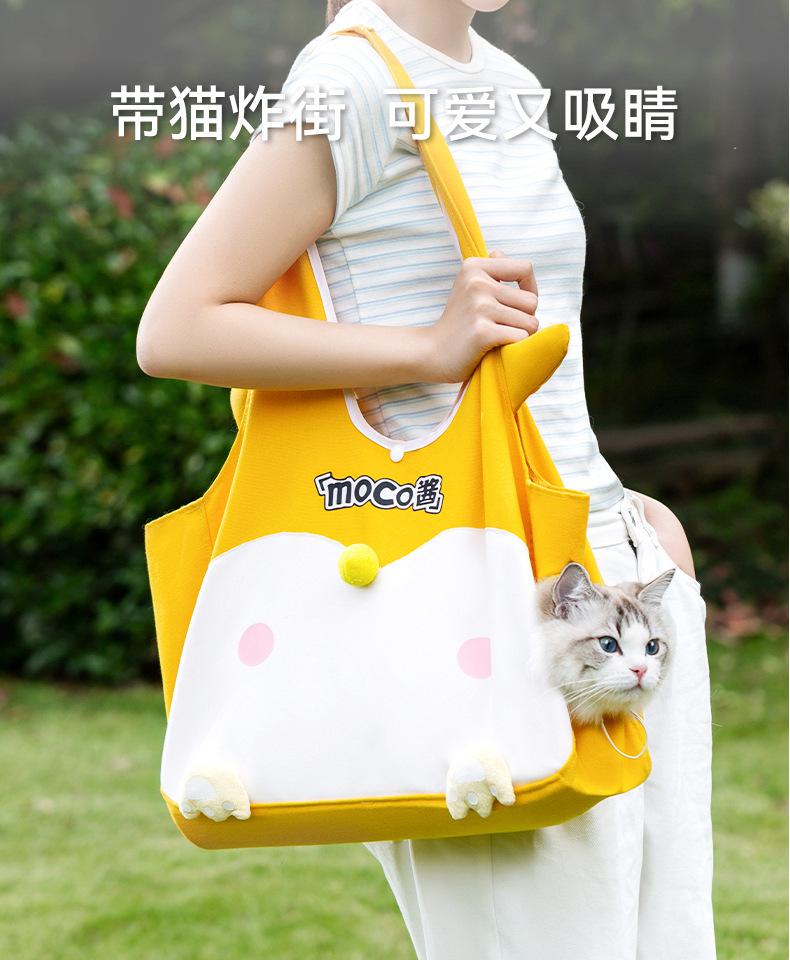 春夏季寵物外出包可愛單肩帆布貓包手提小型犬可露頭貓咪袋子