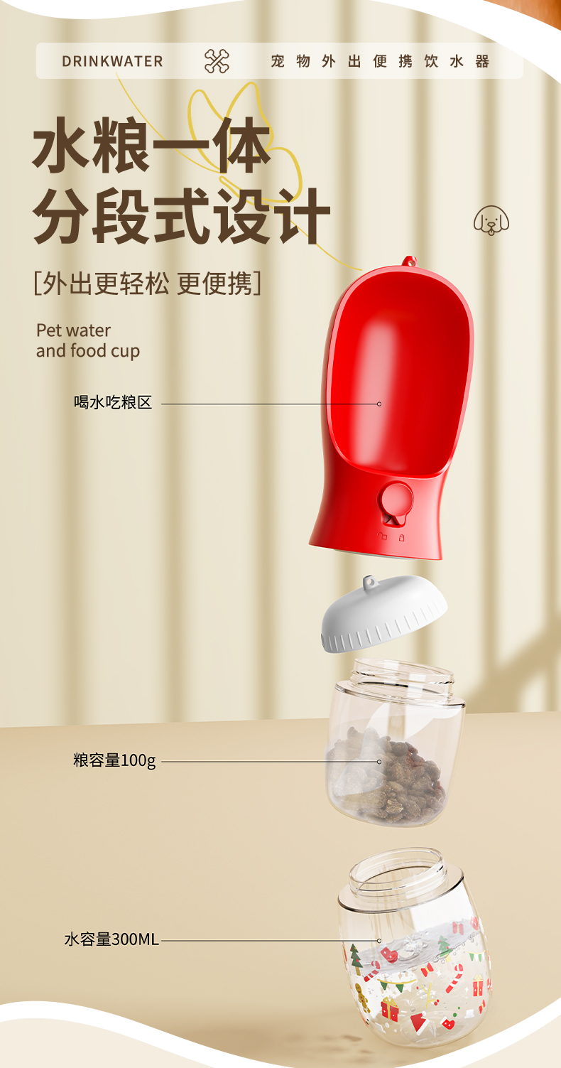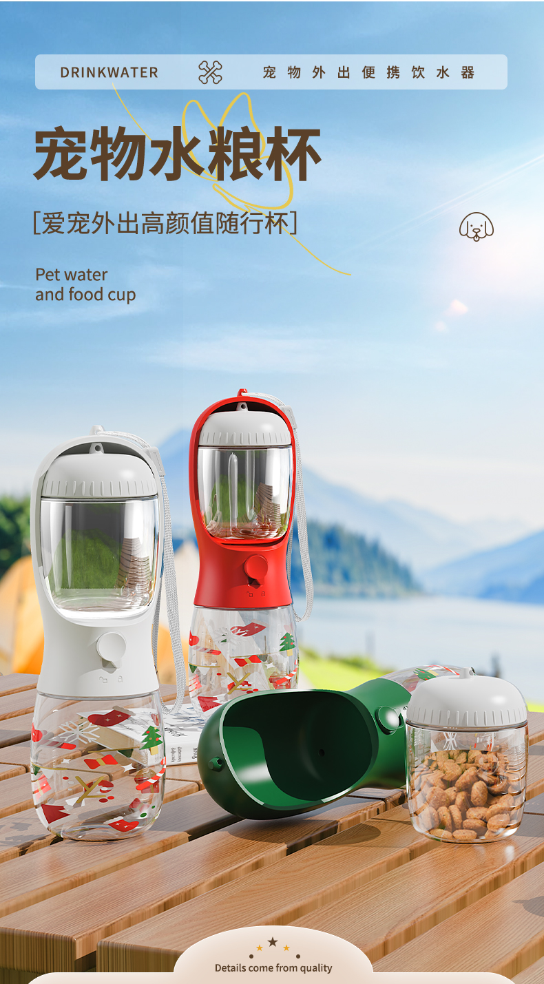 狗狗外出水杯可攜式喝水壺貓咪幼小型寵物二合一水糧杯防脫落印花