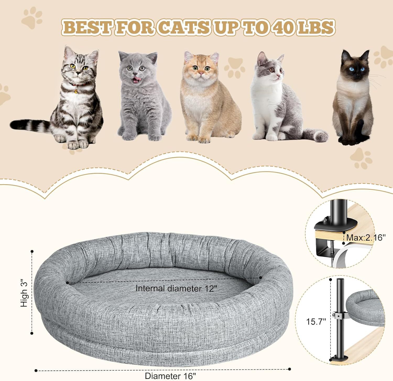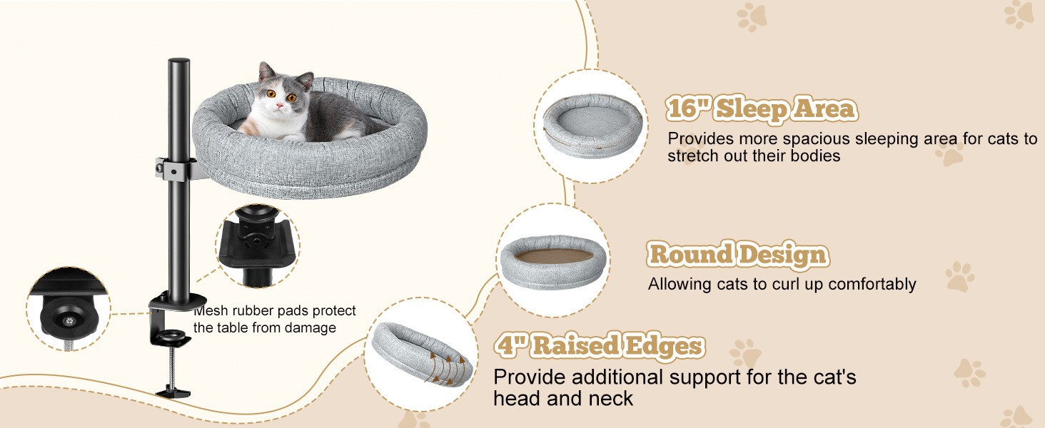 書桌貓窩寵物床360°旋轉可調節高度貓吊床貓床睡袋貓咪用品