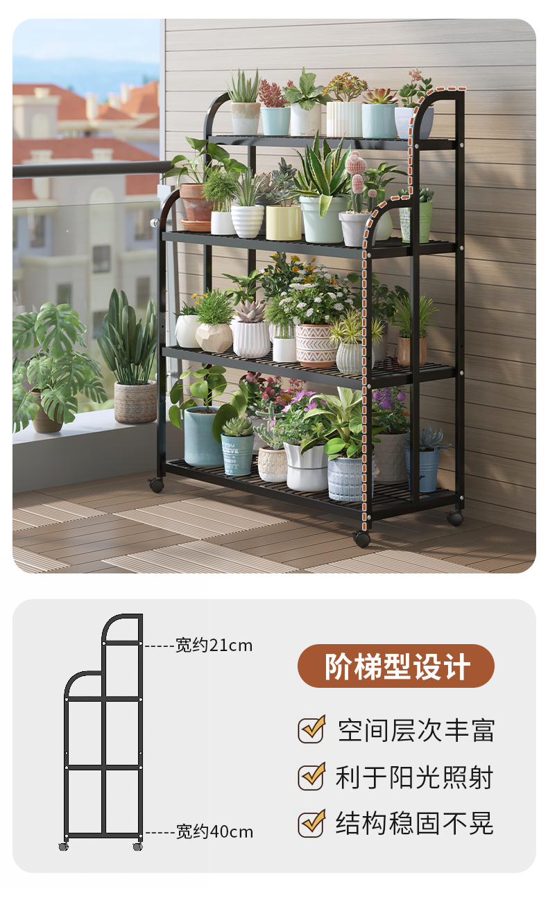 花架置物架陽台花架子客廳落地式多層鐵藝花盆托架多肉階梯式花架