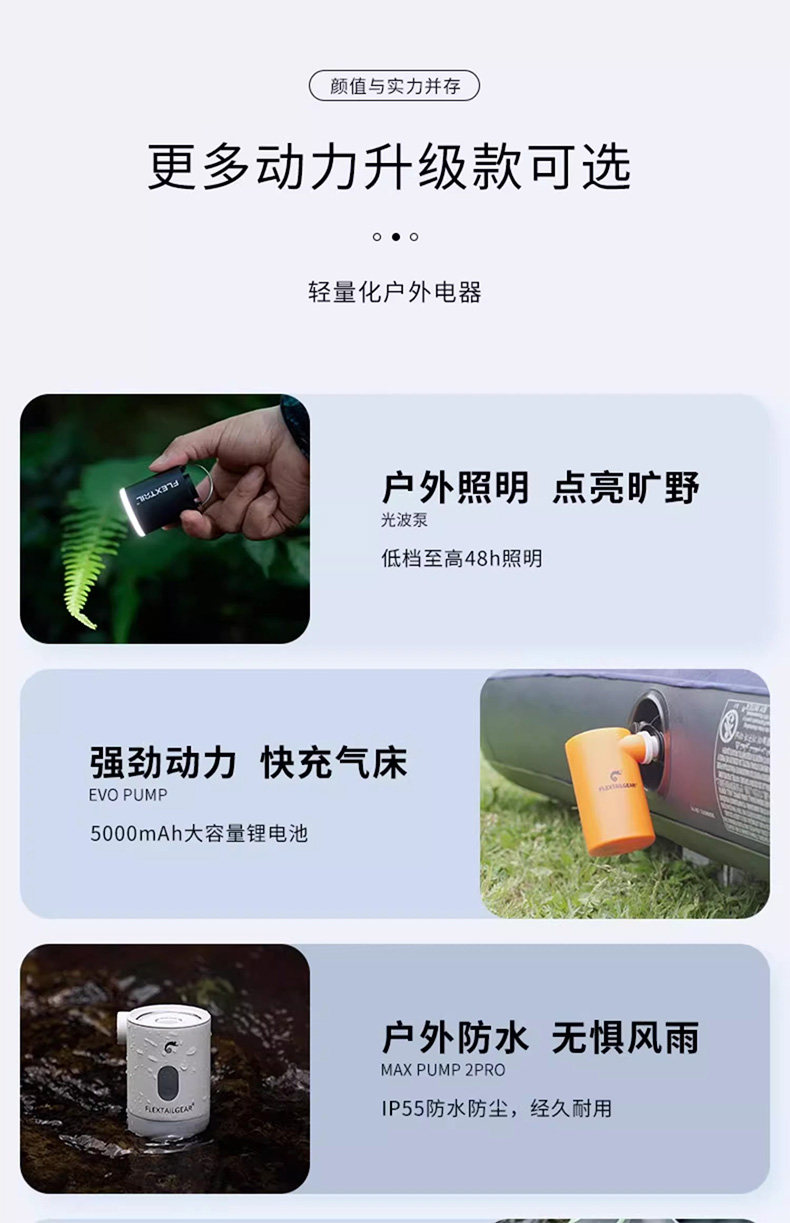 FLEXTAILGEAR魚尾戶外露營氣墊床充氣泵遊泳圈電動抽氣睡墊打氣泵