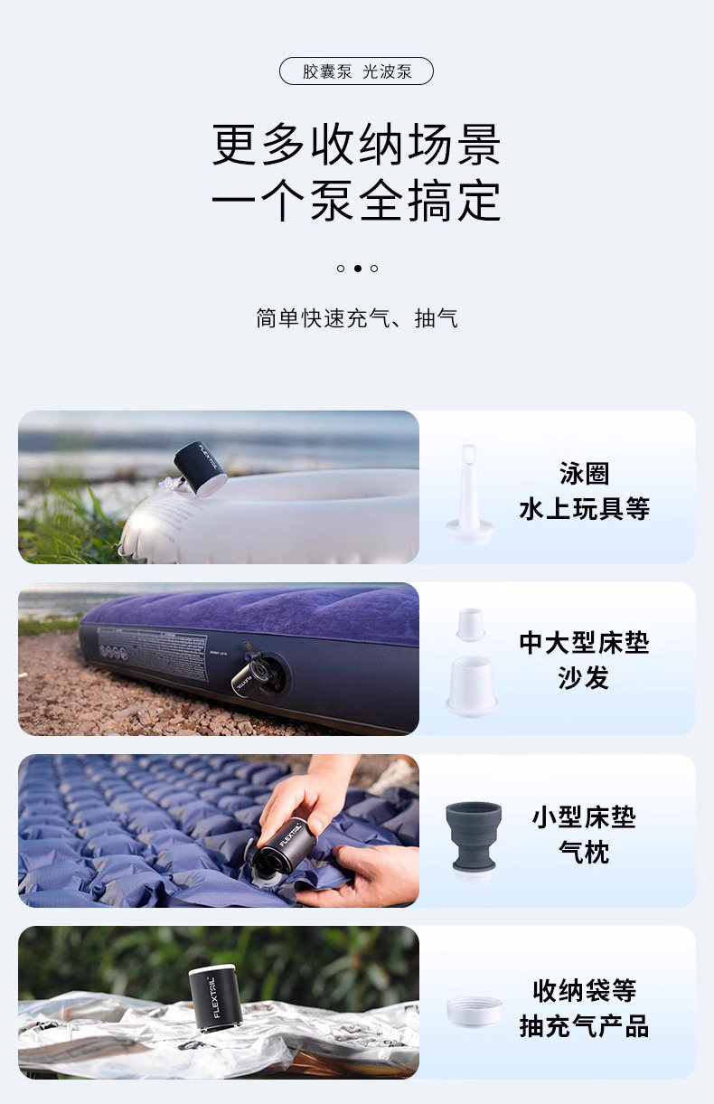FLEXTAIL魚尾充氣泵戶外露營床墊泳圈電動抽充兩用迷你打氣泵可攜式