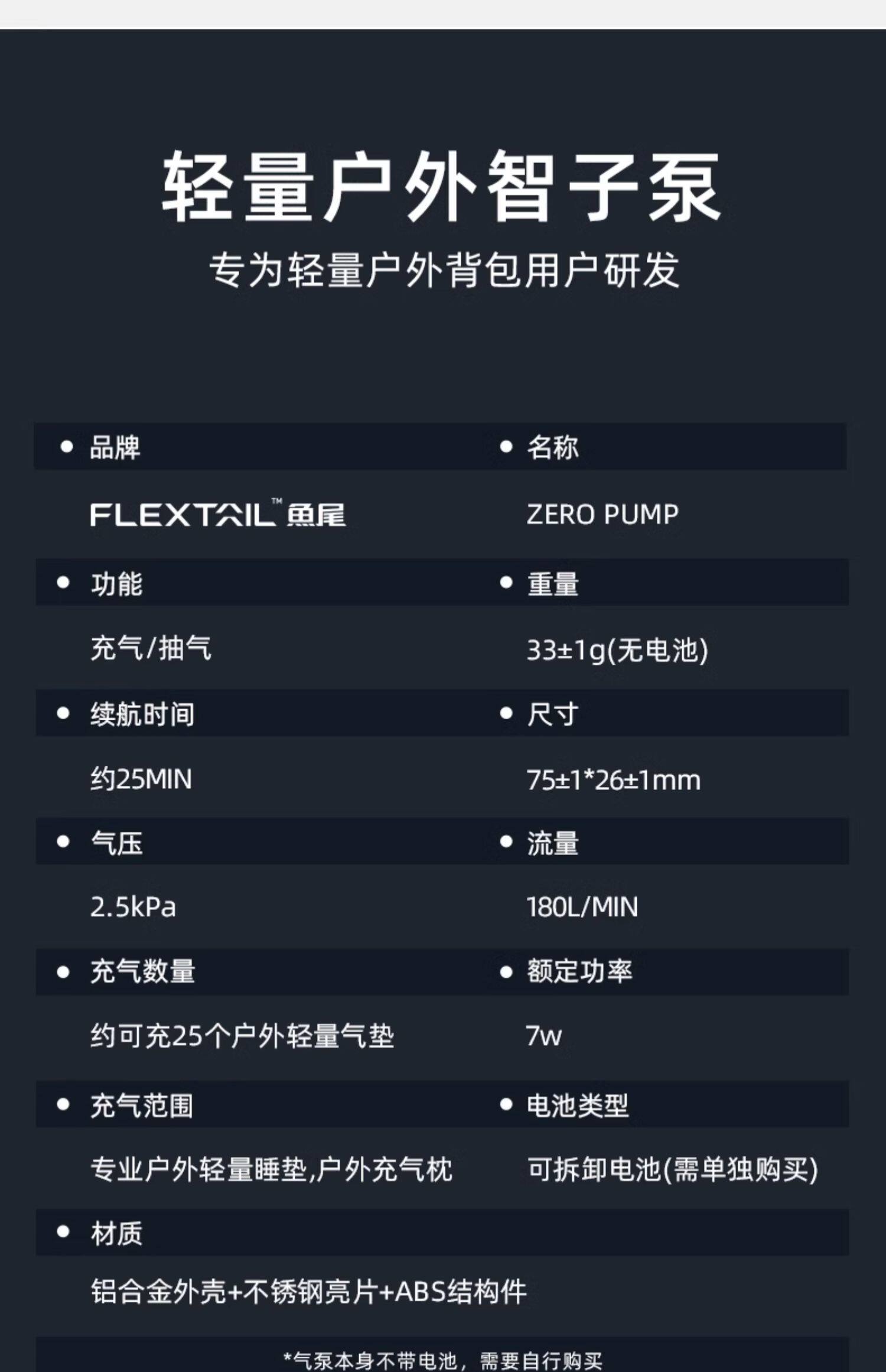 FLEXTAIL魚尾ZERO系列戶外超輕量氣泵徒步可攜式充抽氣墊迷你充氣泵