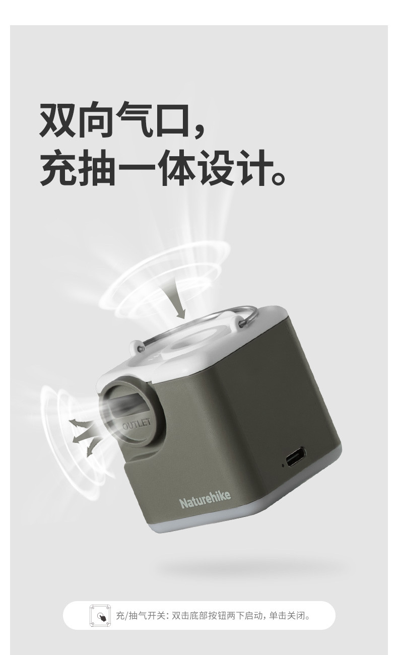 挪客氣墊床充氣泵充氣床車用床墊多功能照明戶外抽充兩用電動氣泵