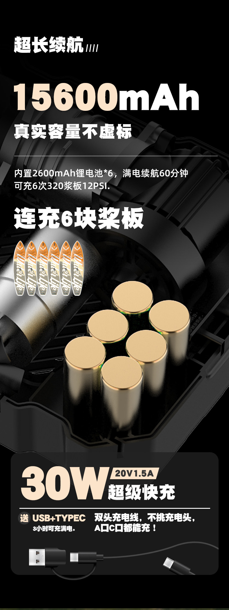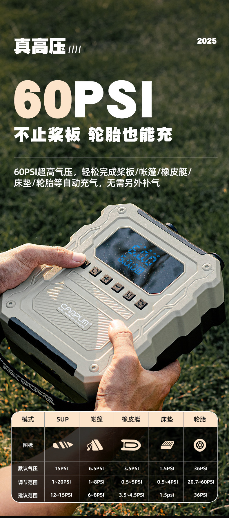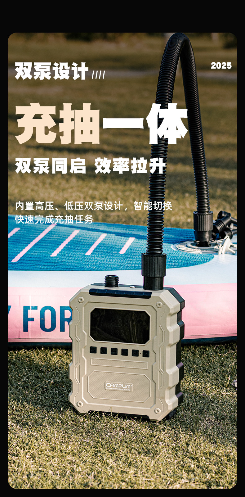 CAMPUM槳板電動充氣泵帳篷沖鋒舟高壓戶外無線抽充兩用輪胎打氣泵