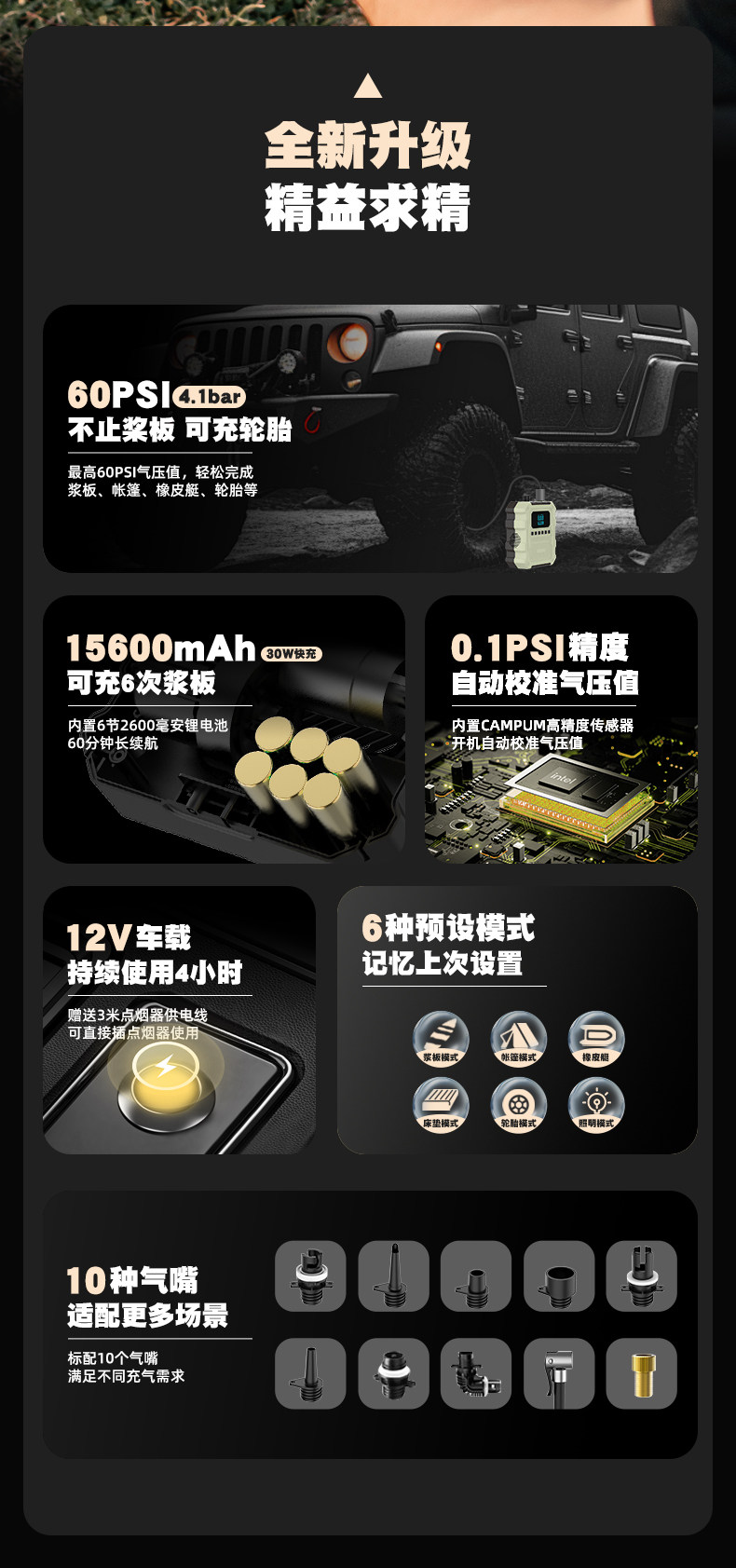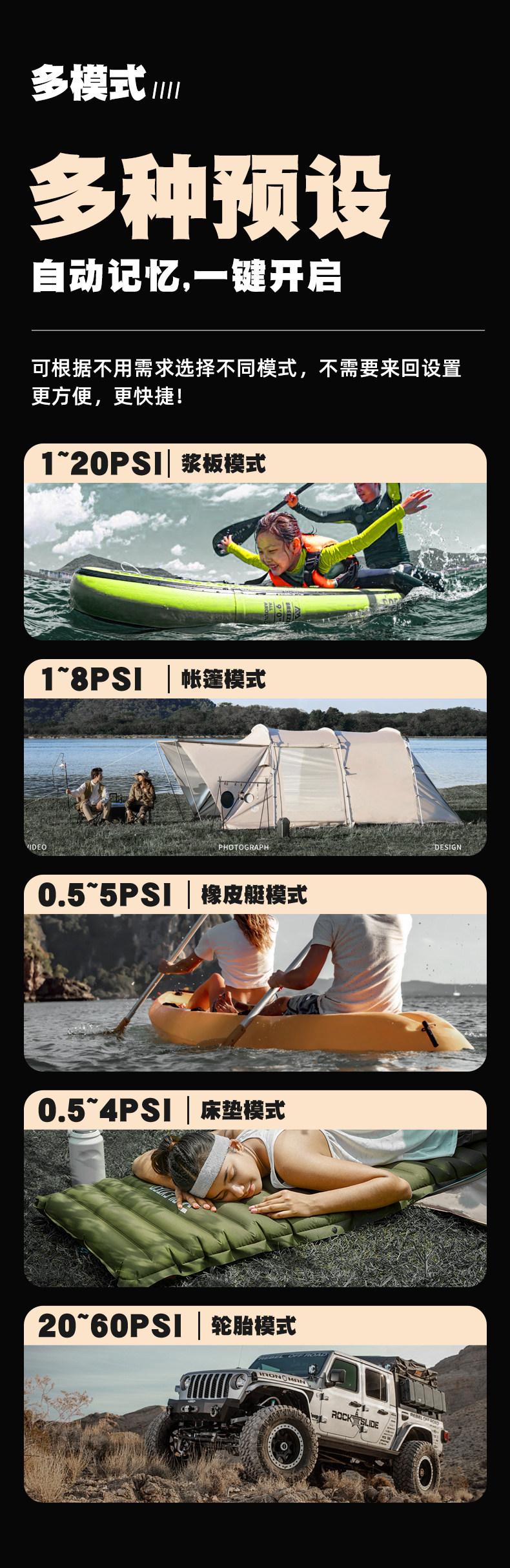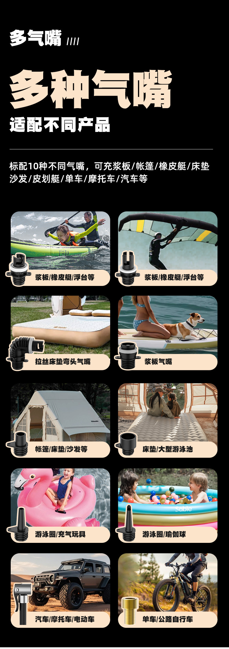 CAMPUM槳板電動充氣泵帳篷沖鋒舟高壓戶外無線抽充兩用輪胎打氣泵