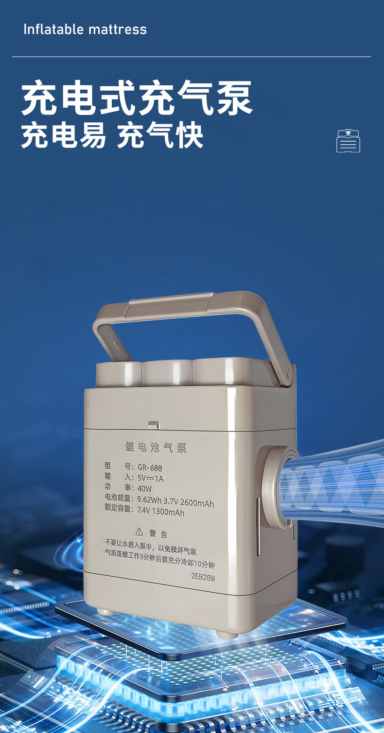 充抽兩用無線自動充氣泵電動戶外可攜式2600安培氣墊床充氣工具充電