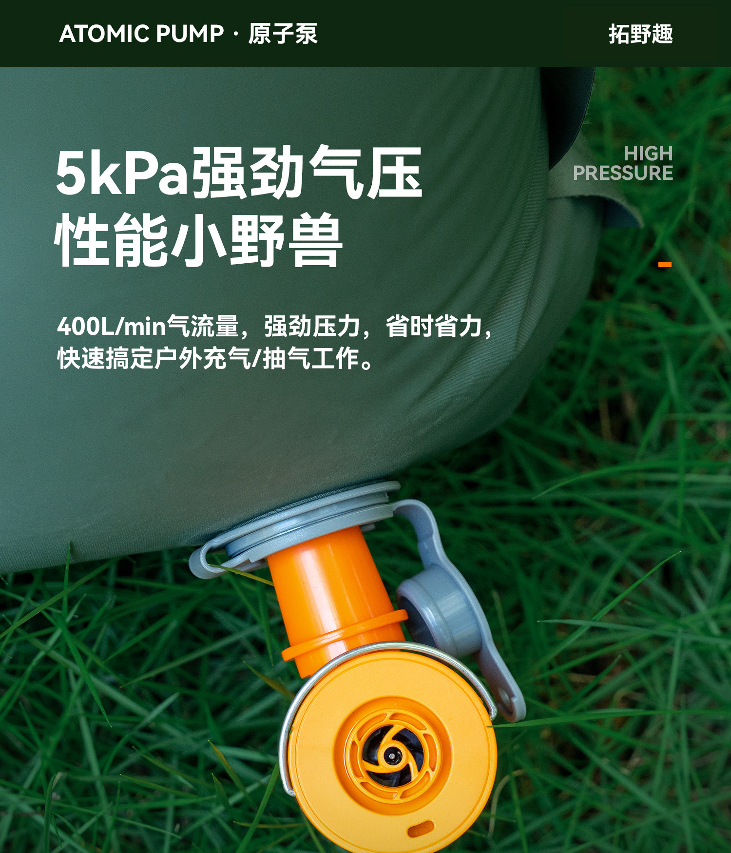 拓野趣戶外迷你電動充氣泵可攜式露營充氣床墊泳圈充抽氣筒磁吸帶燈