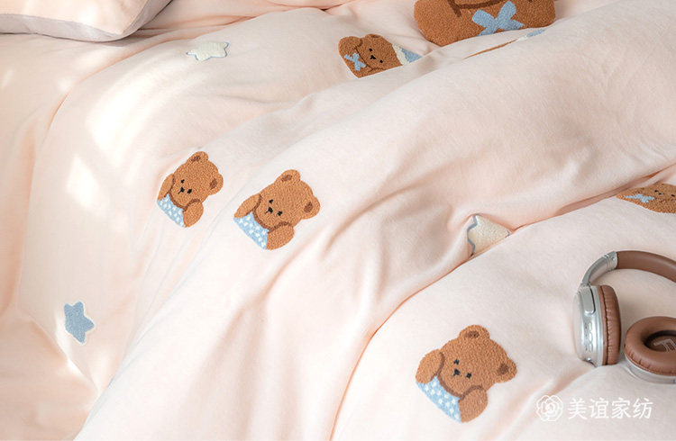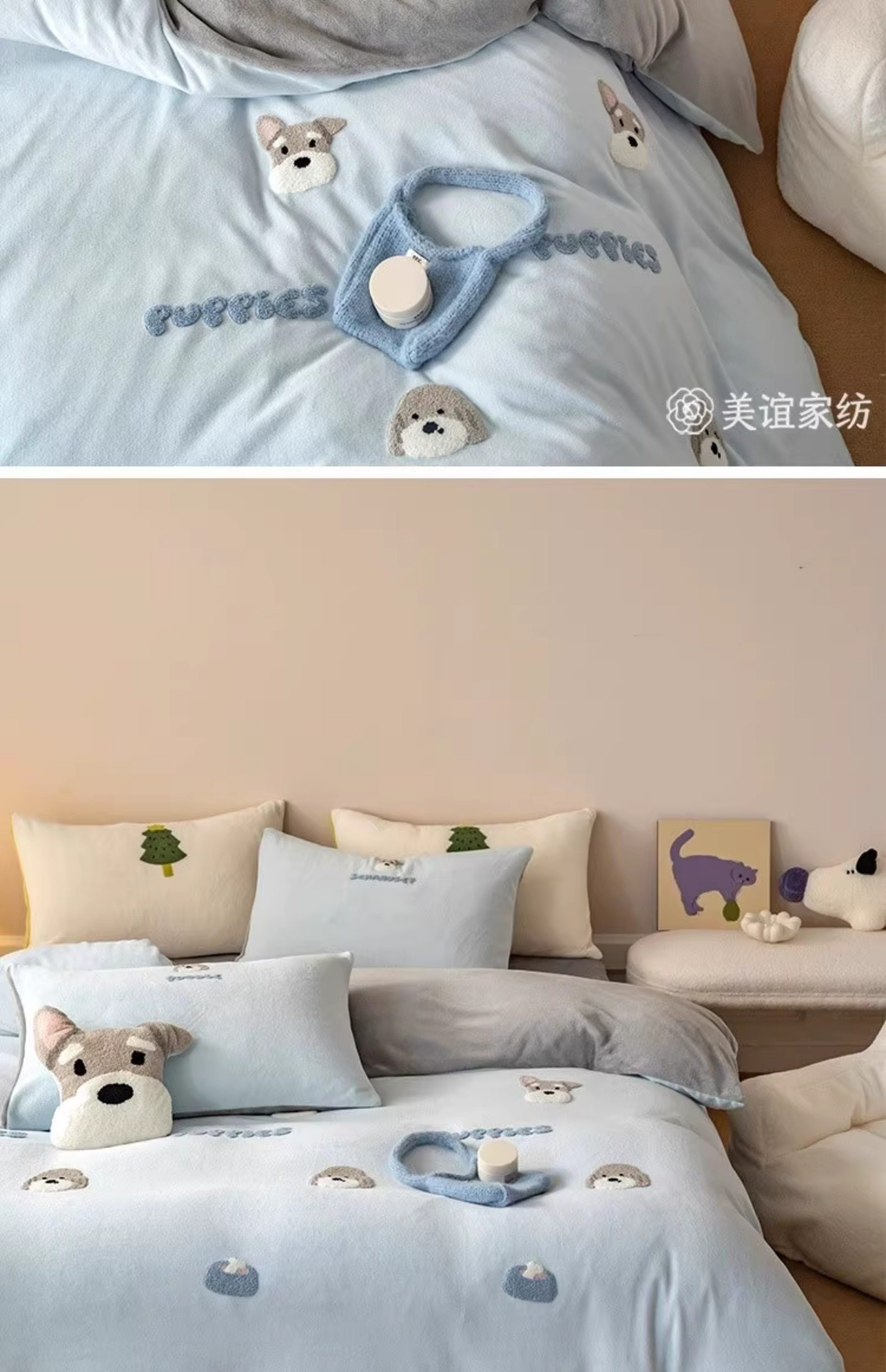 卡通冬季小清新牛奶絨四件套可愛小狗毛巾綉被套加厚1.8m床上用品