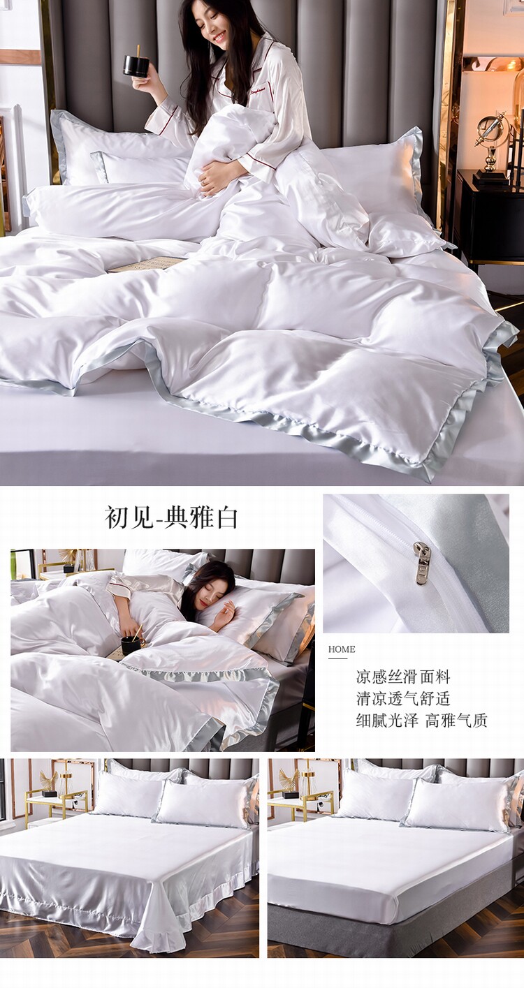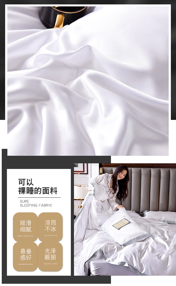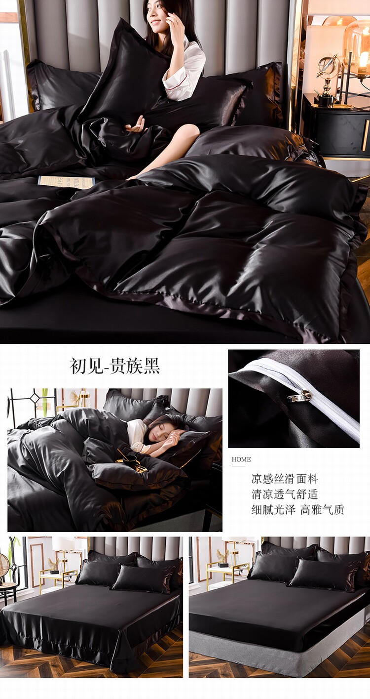 夏季涼感男士真絲床上四件套絲滑裸睡純黑色被套床單床包冰絲床品