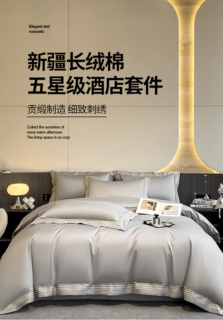 高級酒店180支長絨棉純棉四件套輕奢高級感全棉被套床單床上用品4