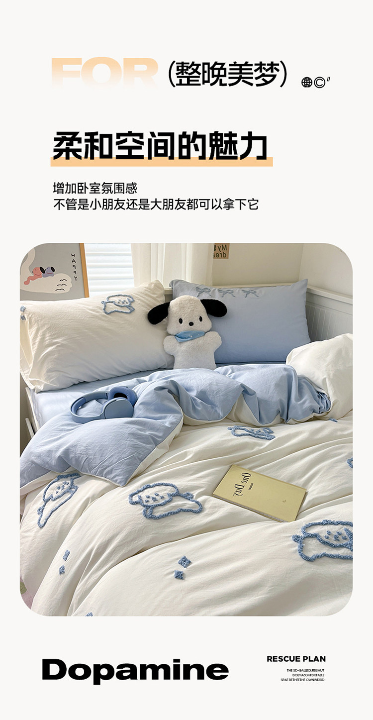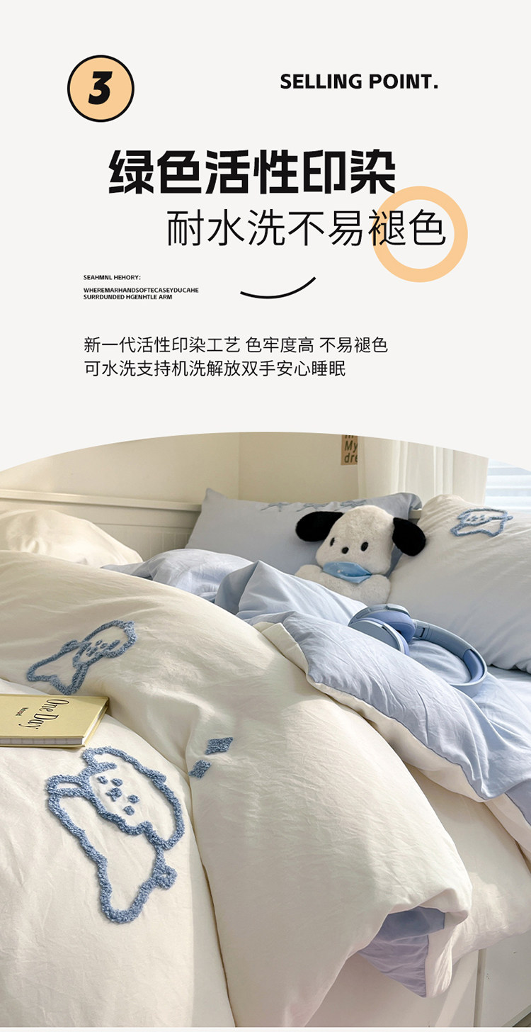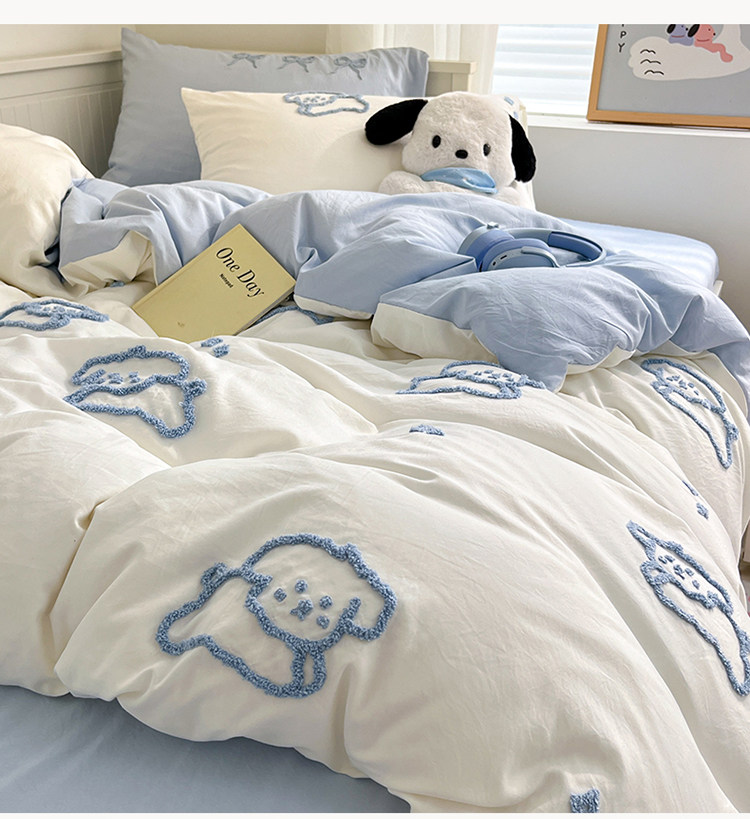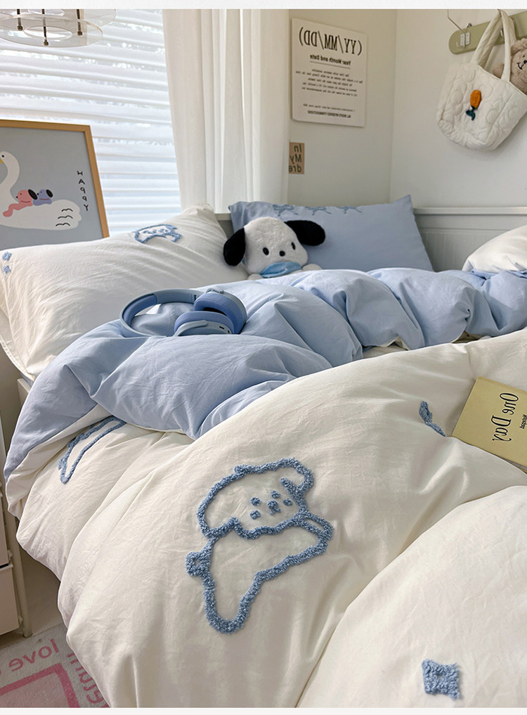 ins線條小狗四件套卡通被套床單人宿捨三件套全棉純棉床上用品4