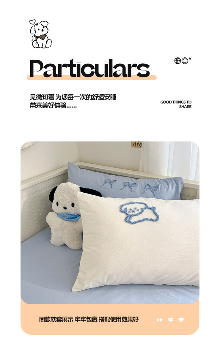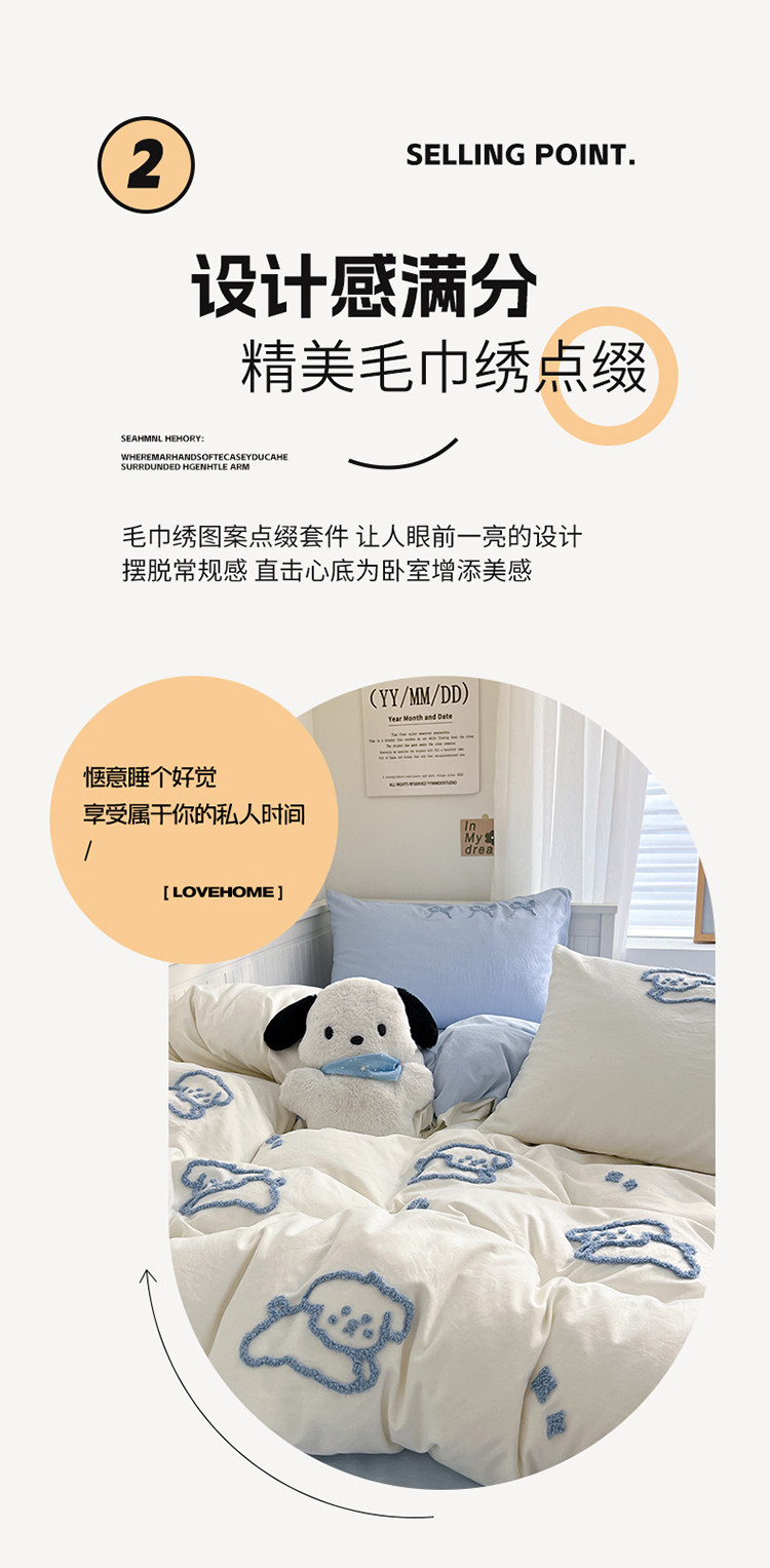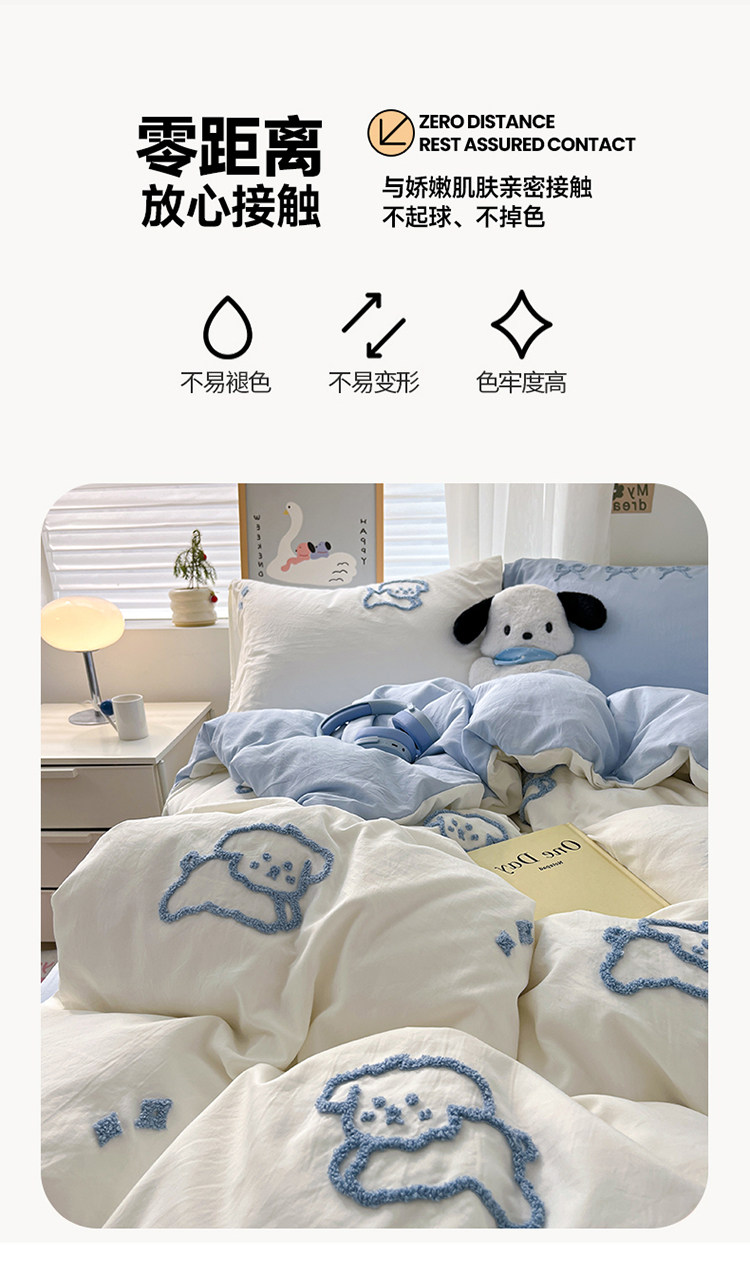 ins線條小狗四件套卡通被套床單人宿捨三件套全棉純棉床上用品4