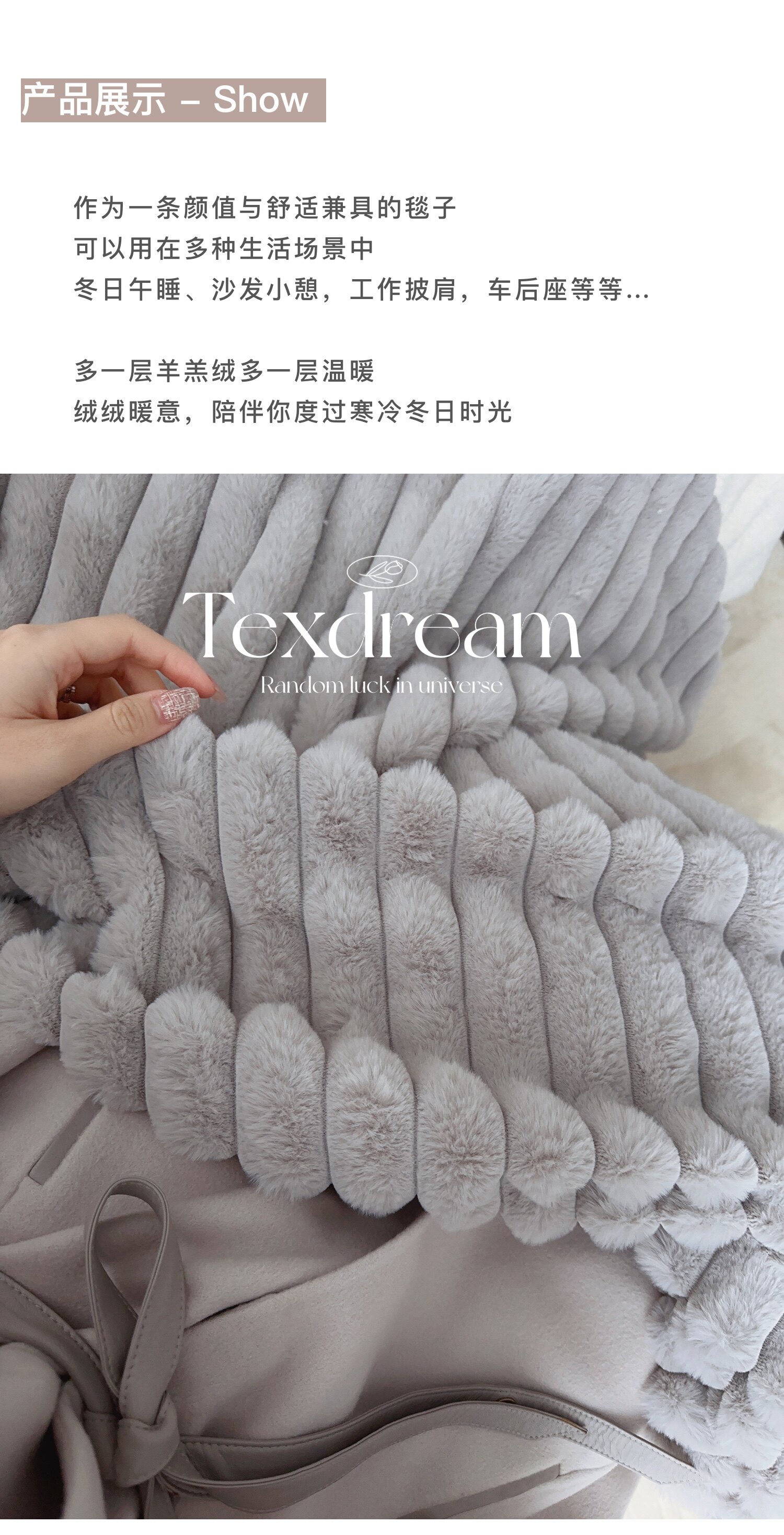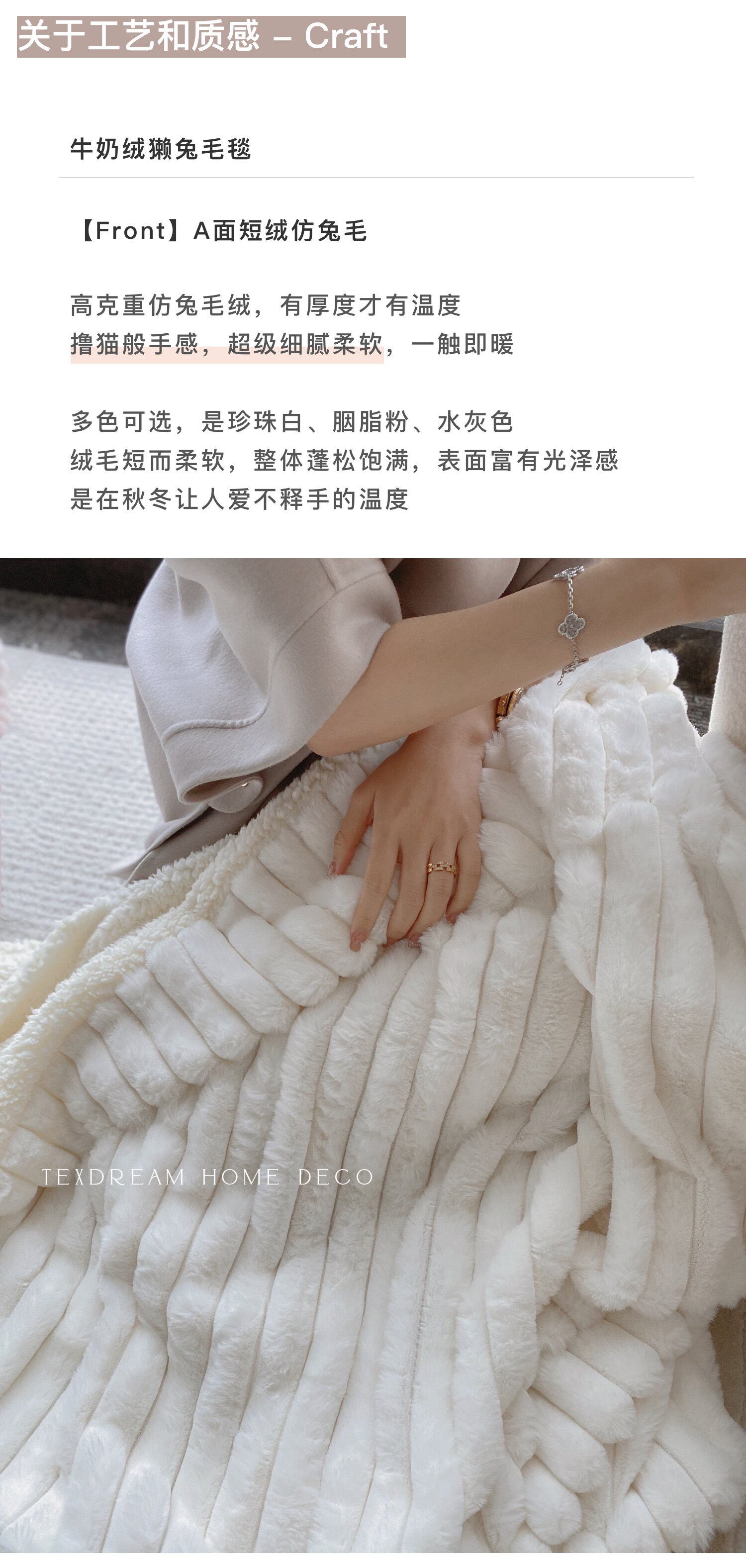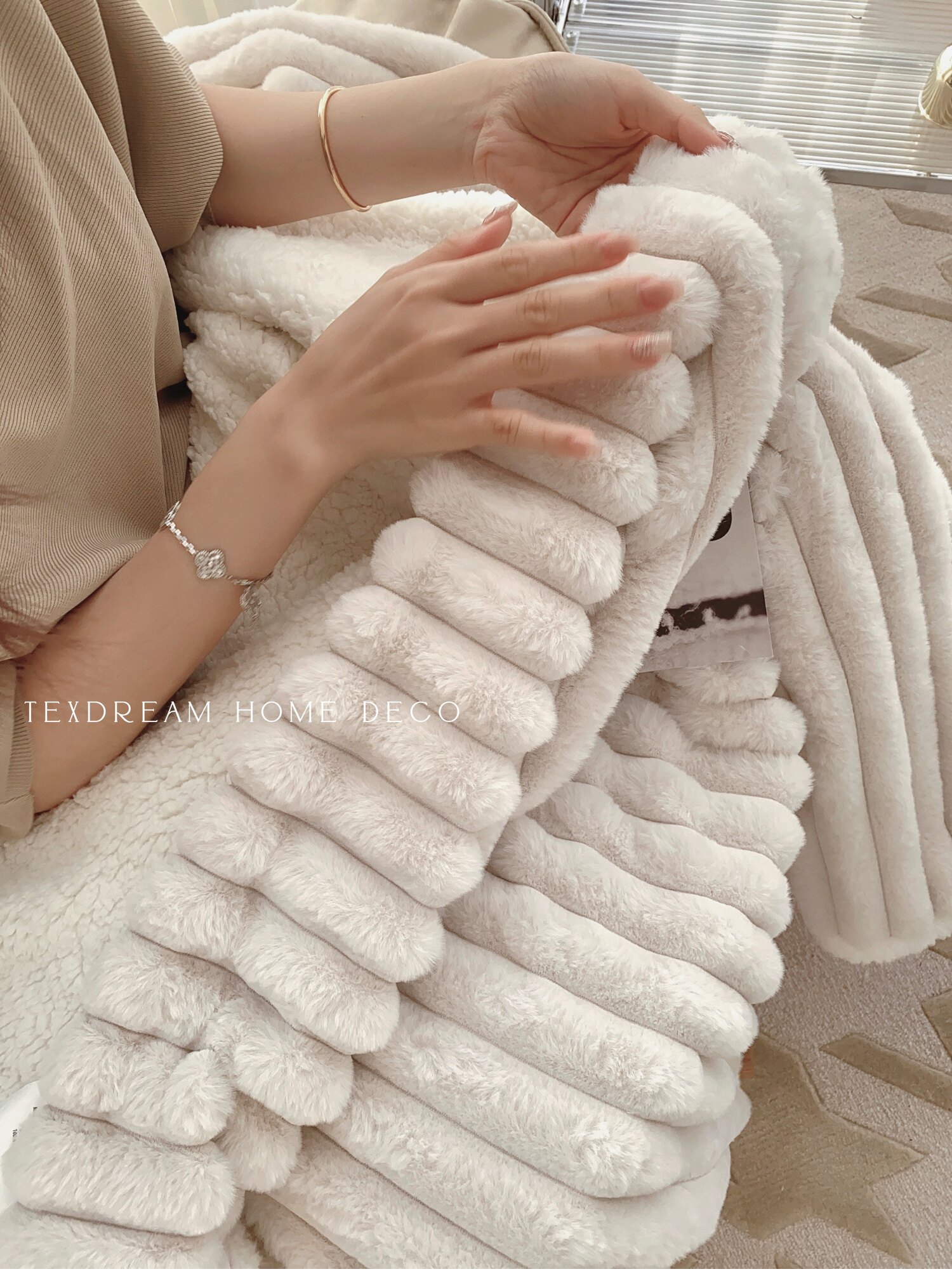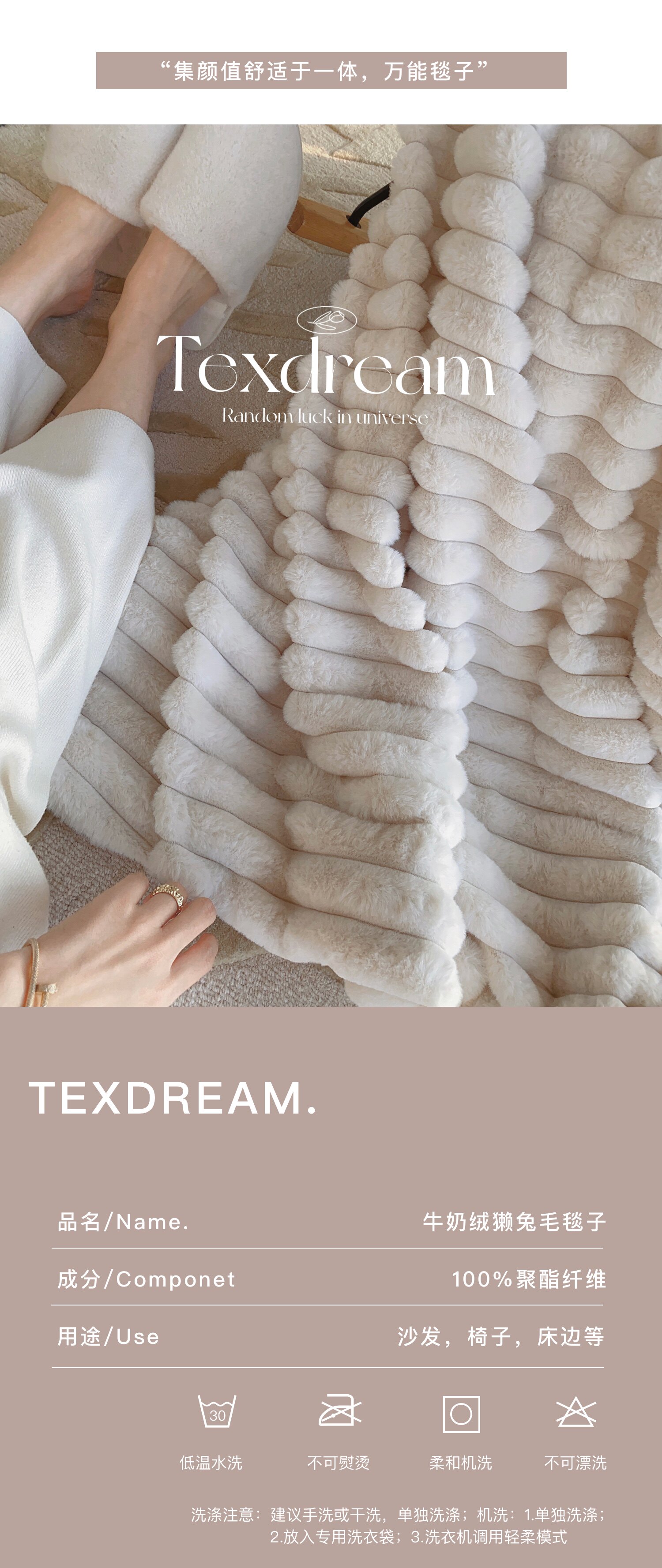 Texdream態度超軟牛奶絨蓋毯仿獺兔毛毯四季毛茸床上蓋毯簡約高級