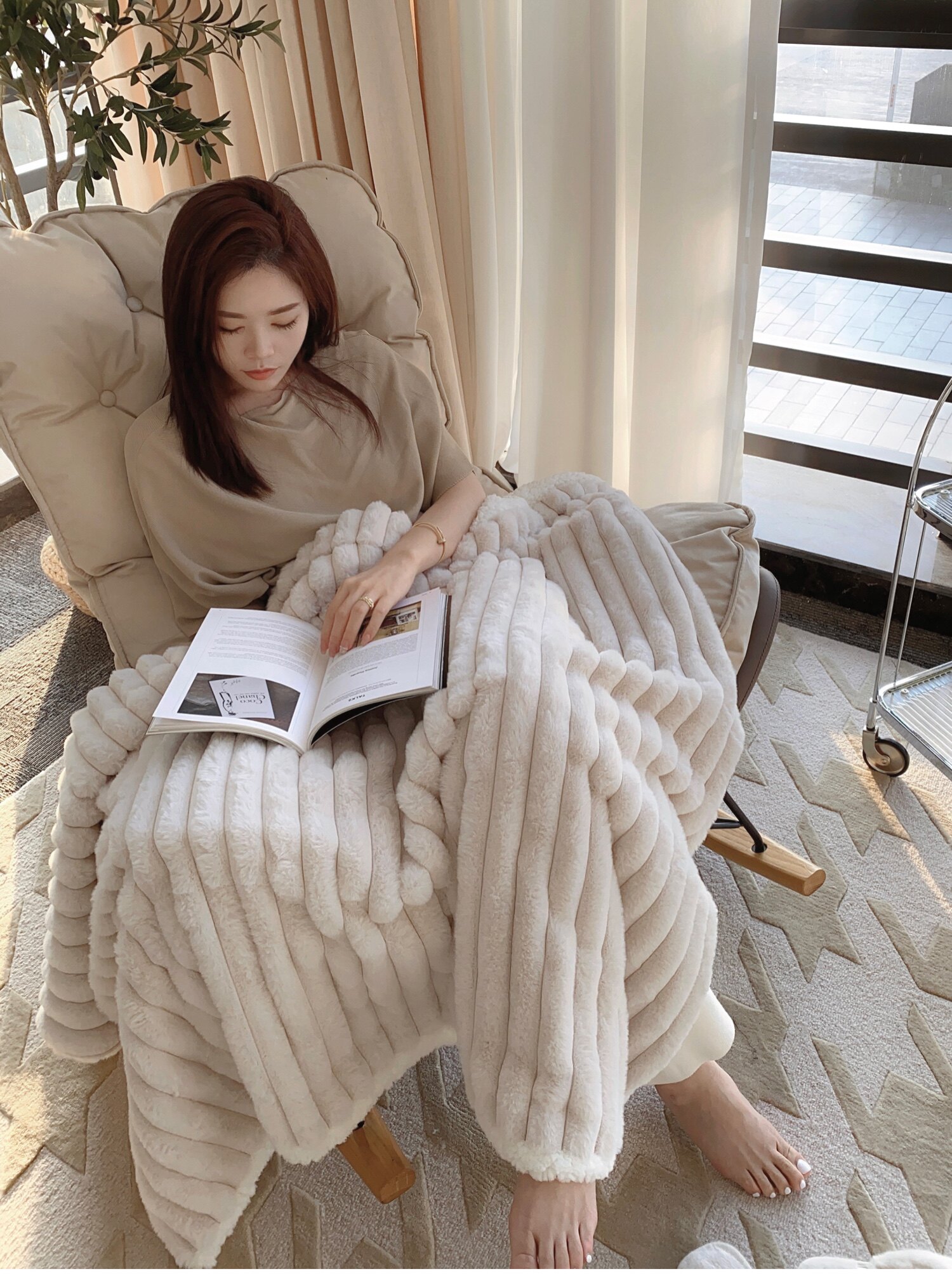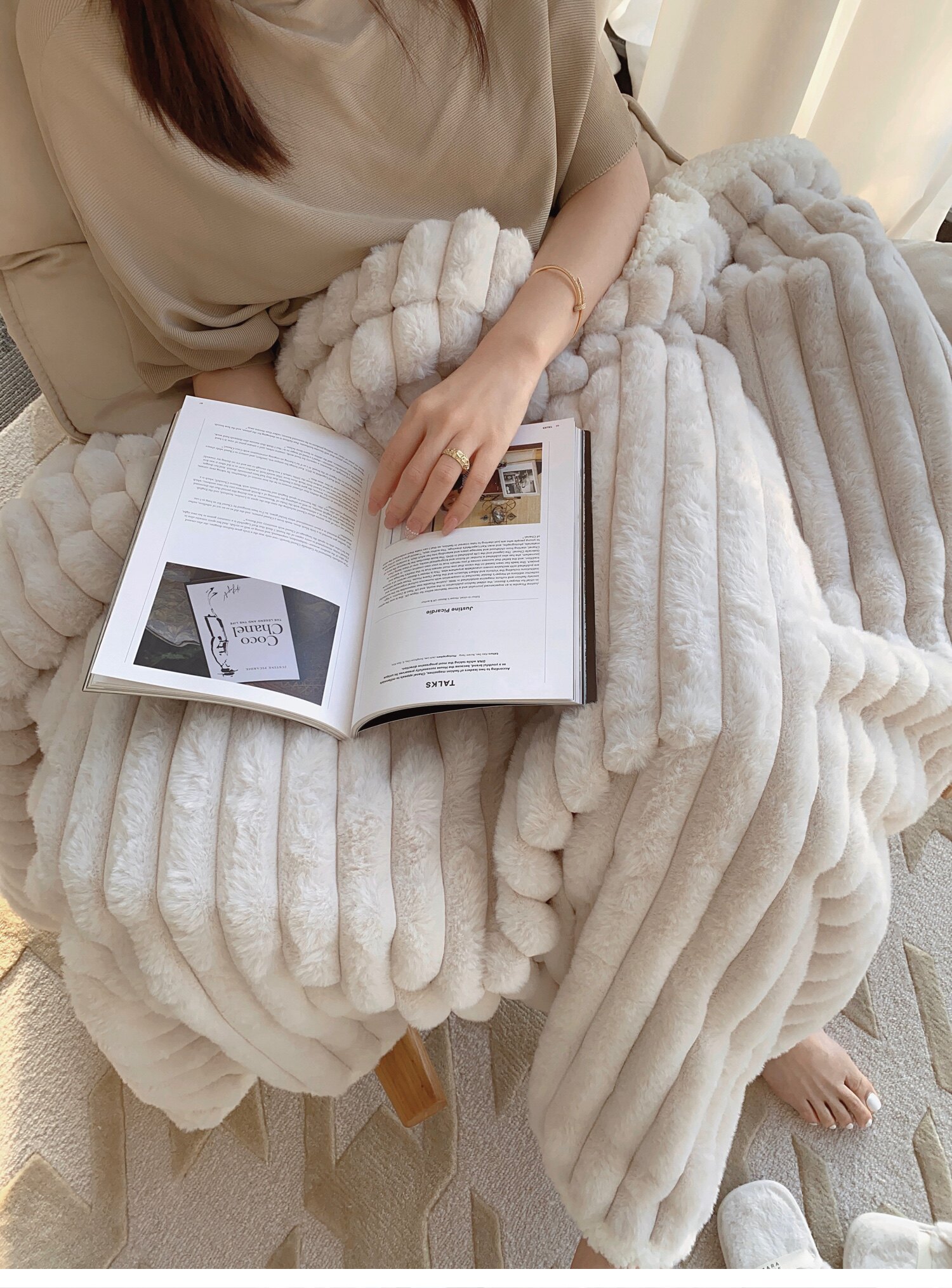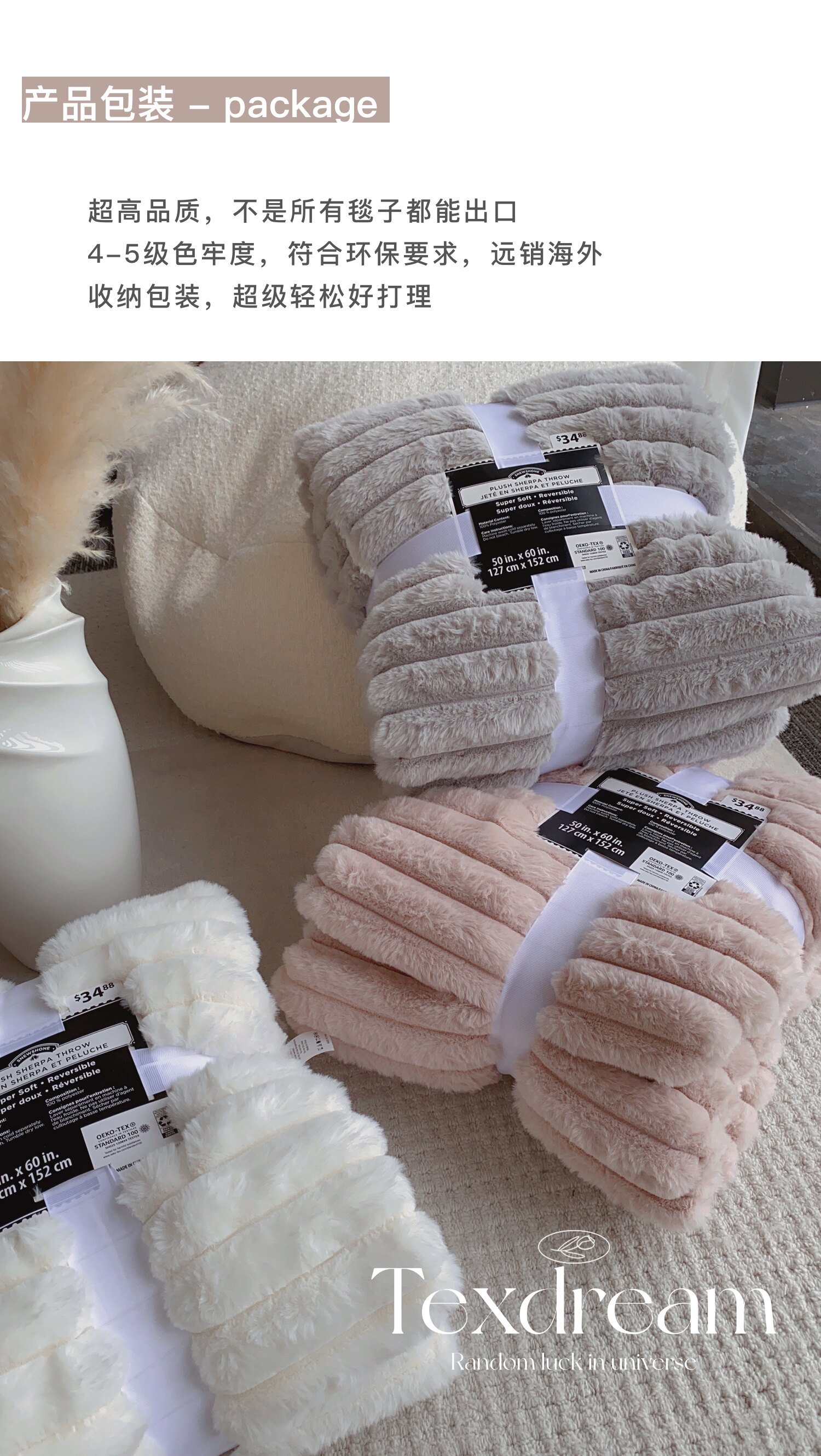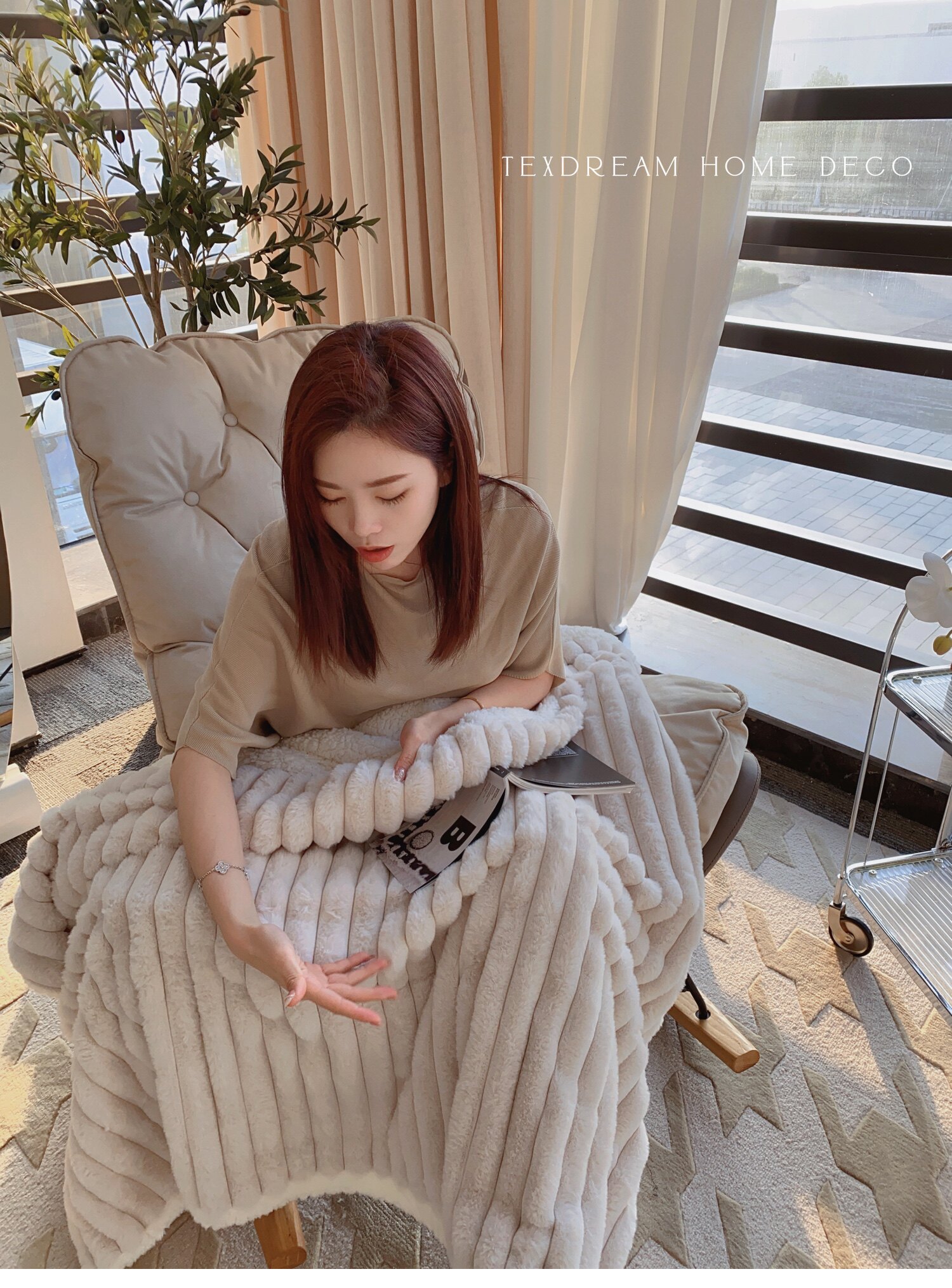 Texdream態度超軟牛奶絨蓋毯仿獺兔毛毯四季毛茸床上蓋毯簡約高級