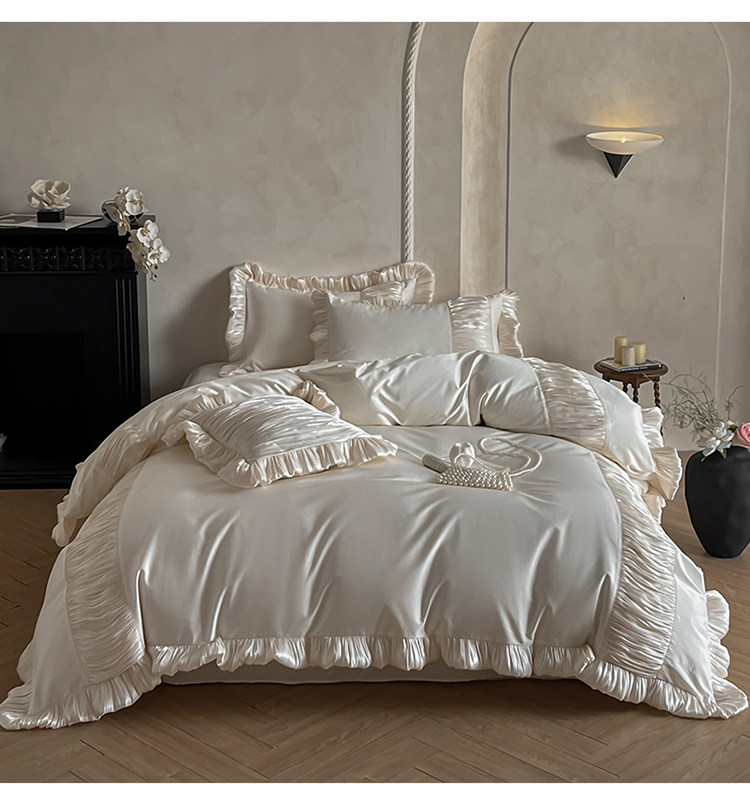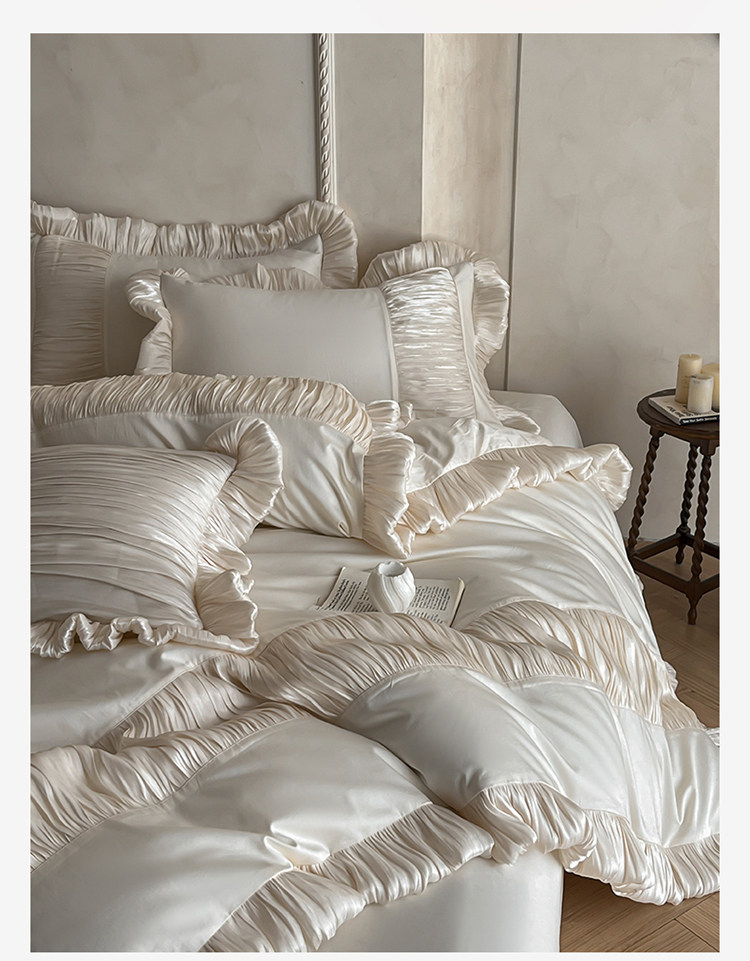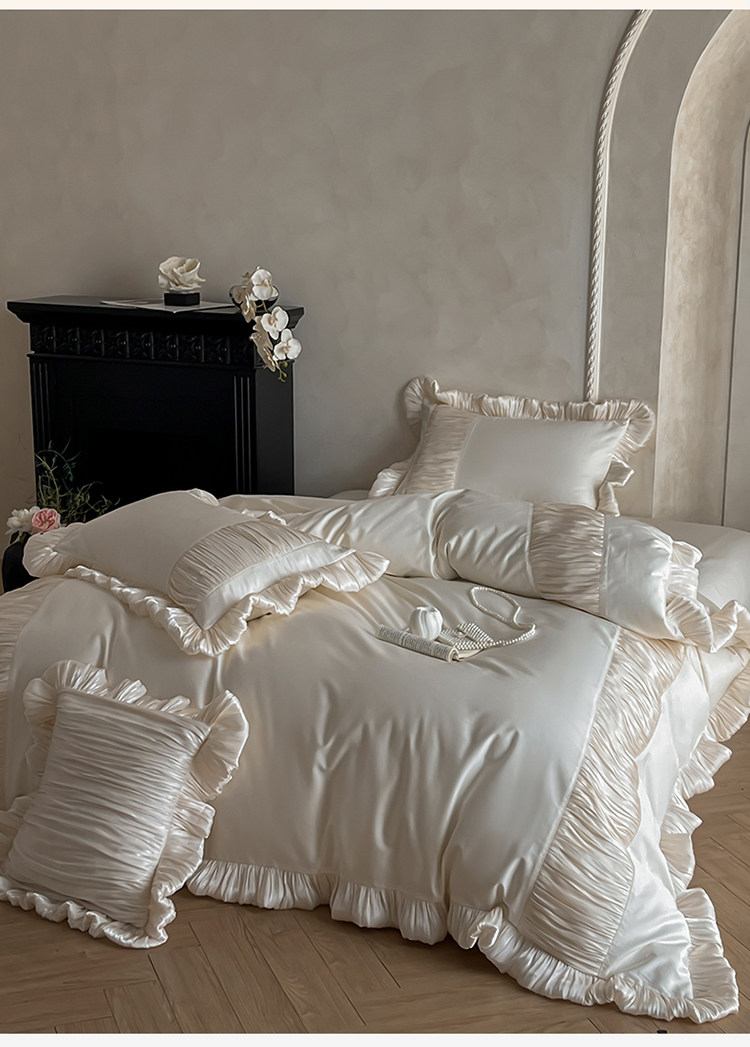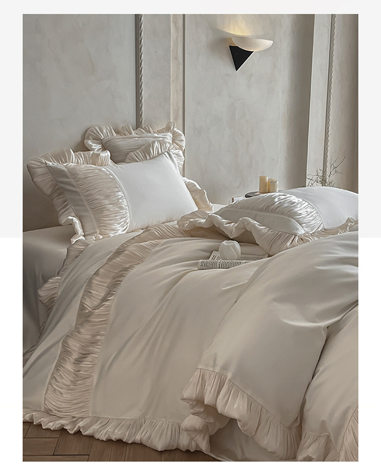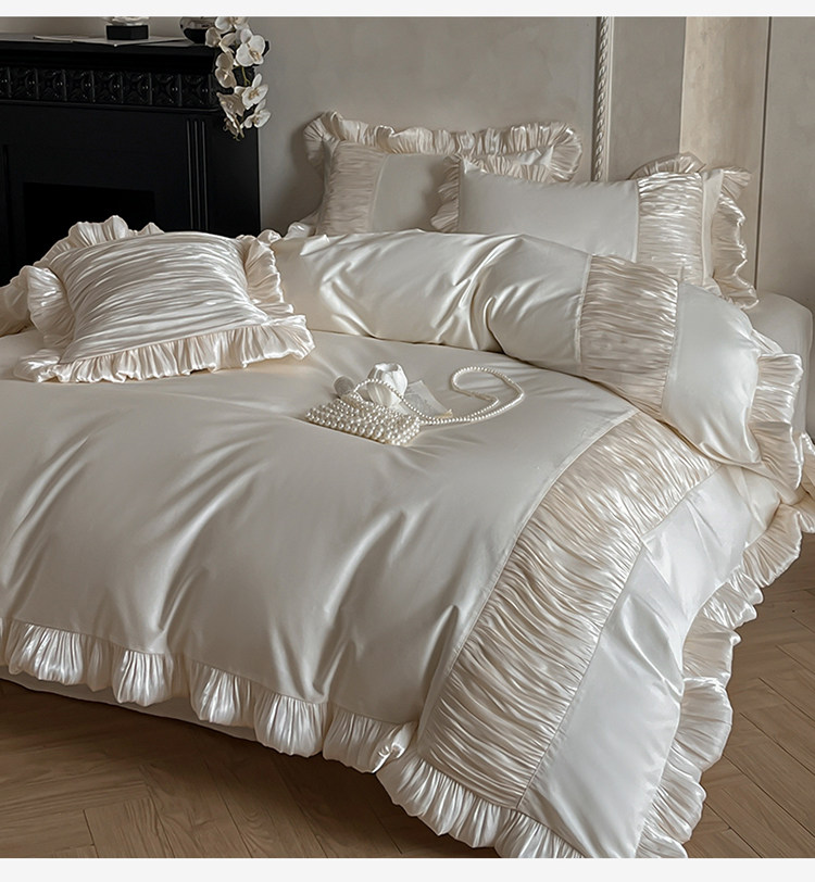 法式奶油風全棉水洗棉四件套純棉蕾絲花邊拼接被套少女心床上用品