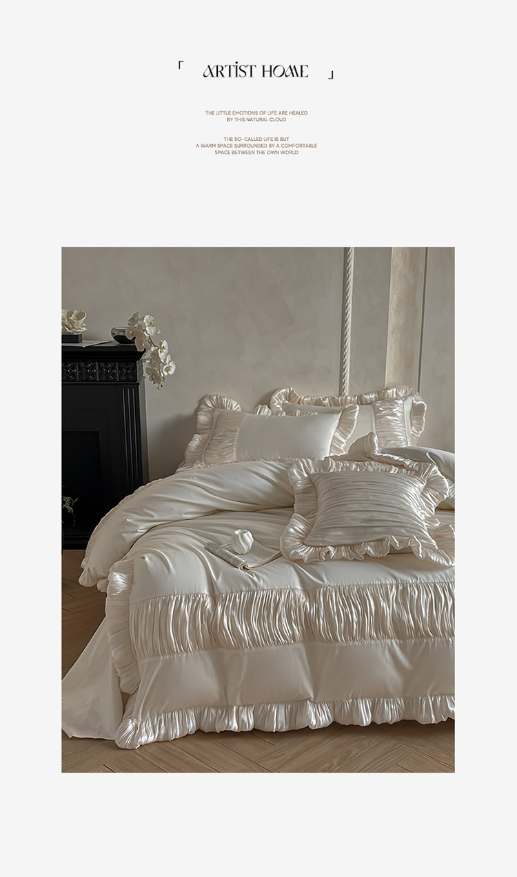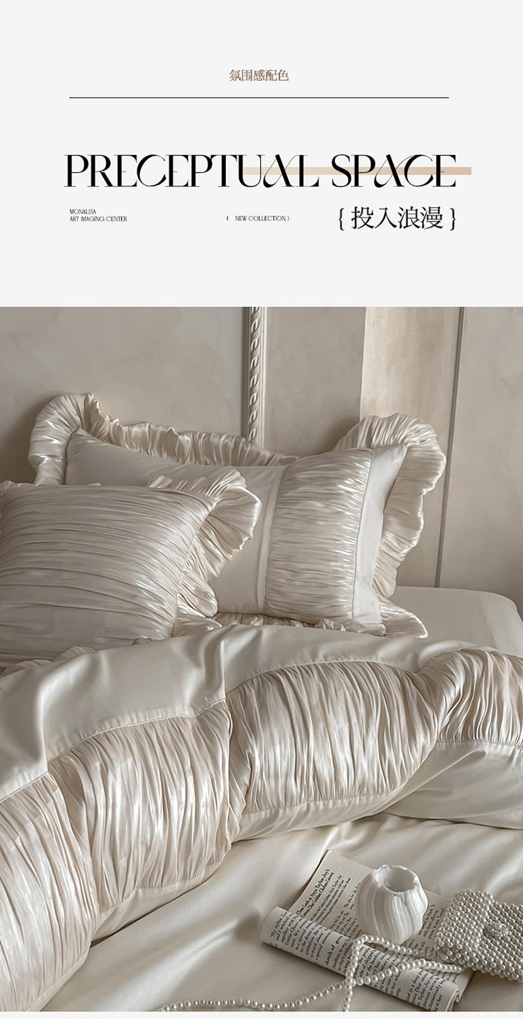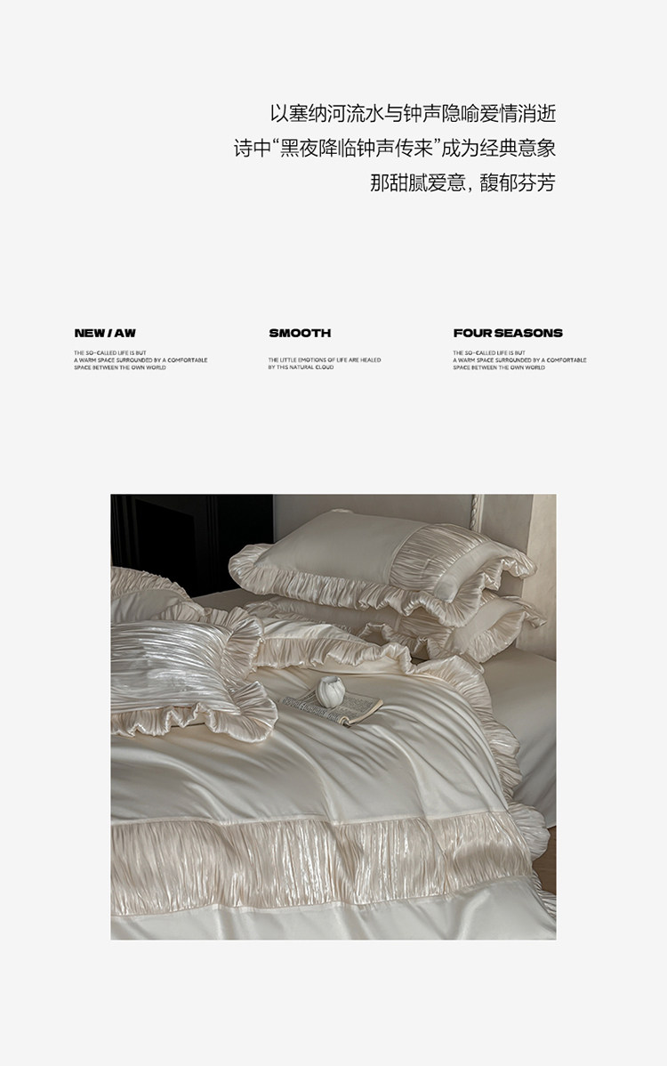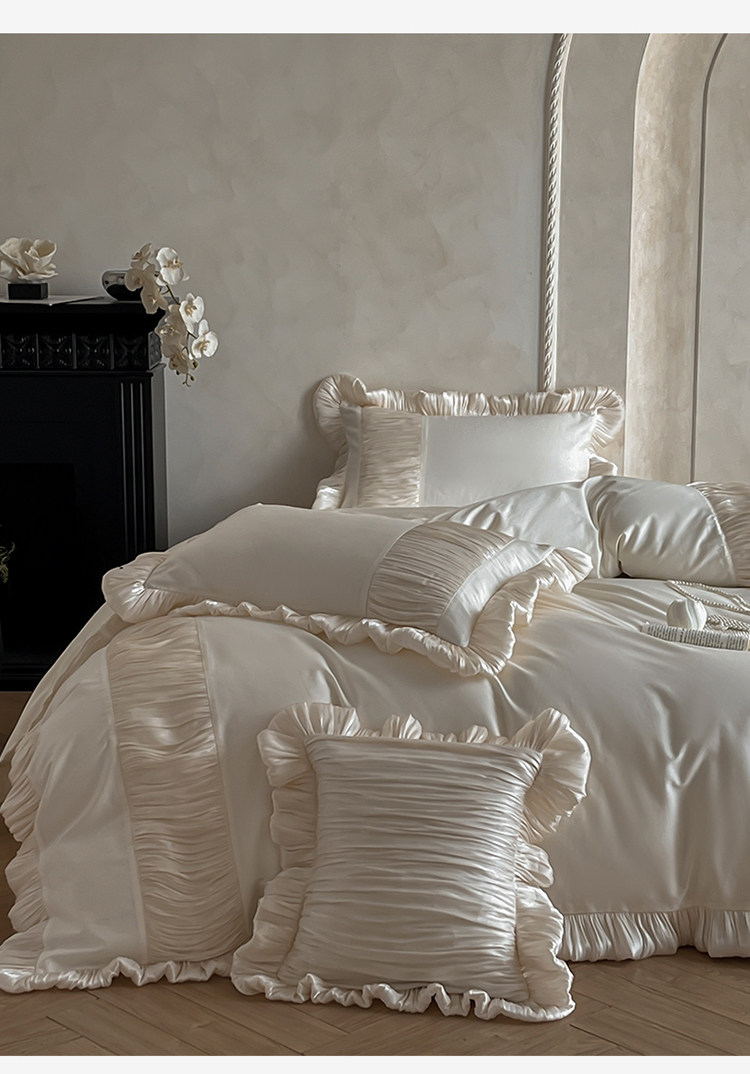 法式奶油風全棉水洗棉四件套純棉蕾絲花邊拼接被套少女心床上用品
